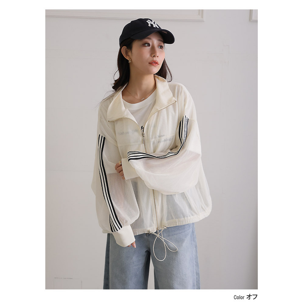 お洒落に涼しく! 夏の体型隠し メッシュ ライン ブルゾン