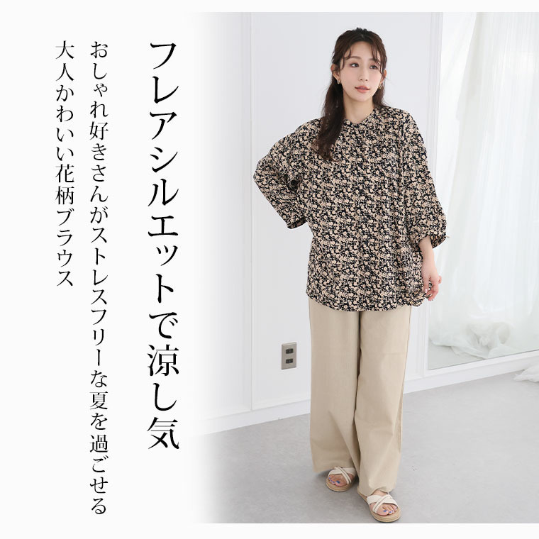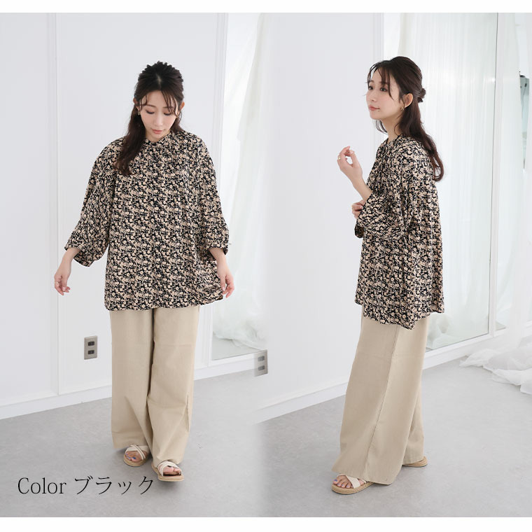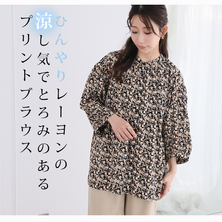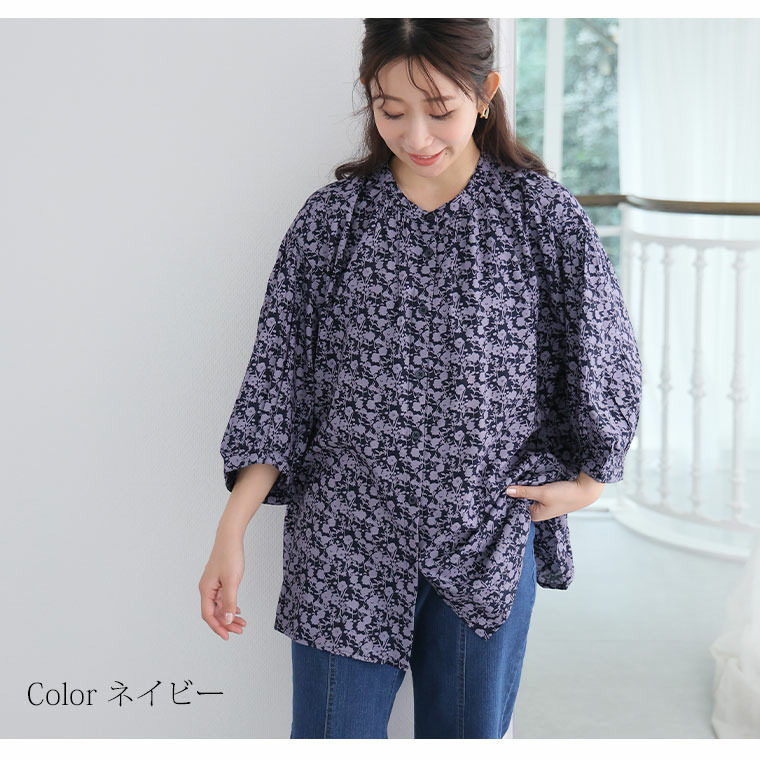 • さらりと心地良い 楊柳 ギャザー チェック 七分袖 ブラウス13