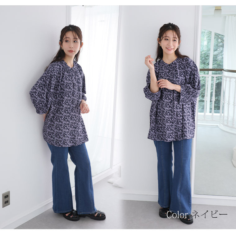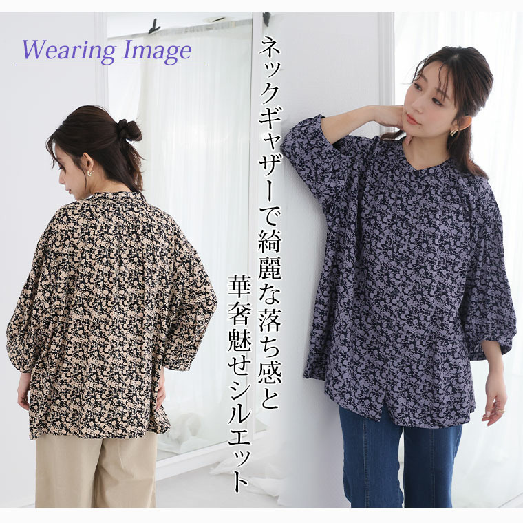 • さらりと心地良い 楊柳 ギャザー チェック 七分袖 ブラウス7