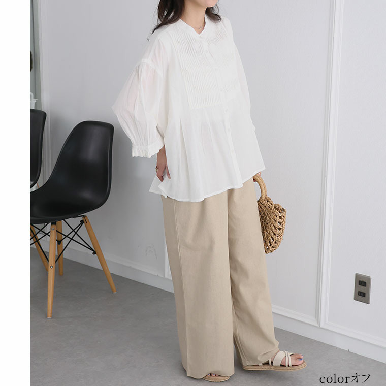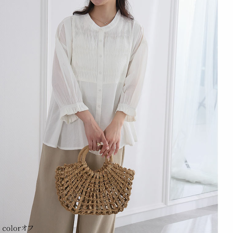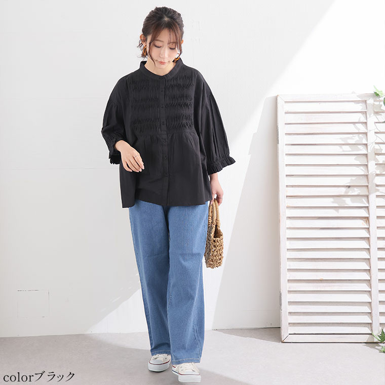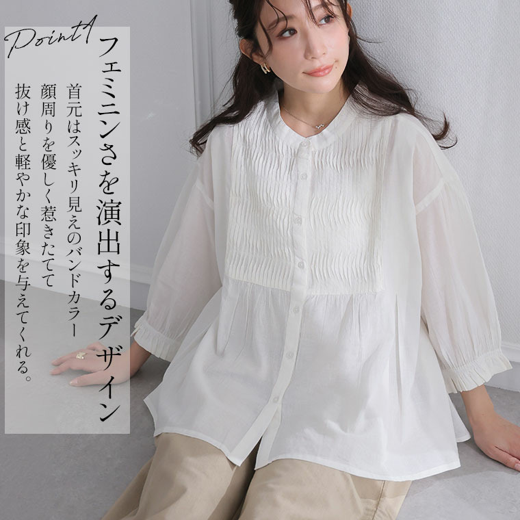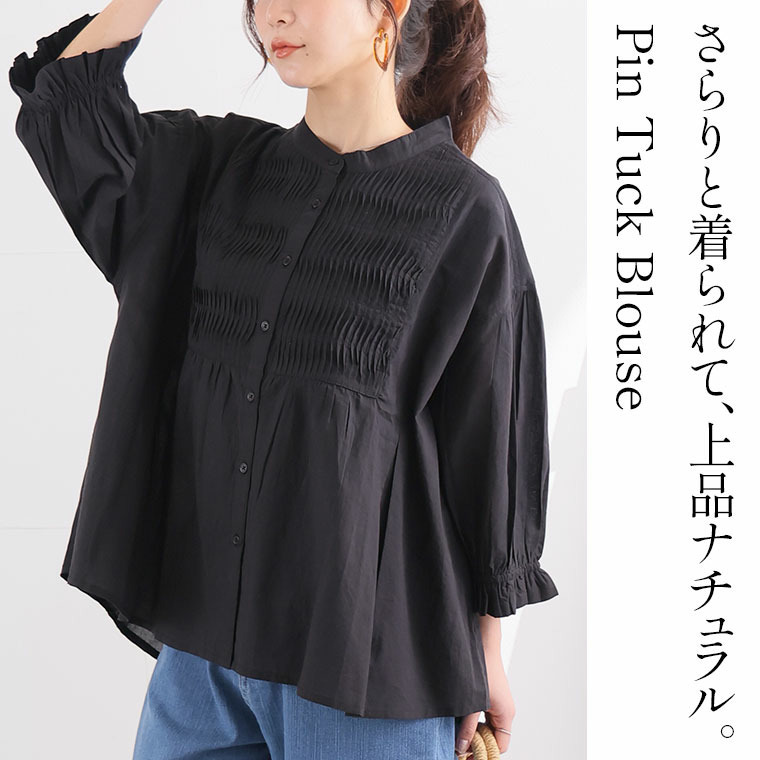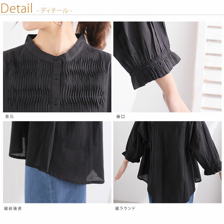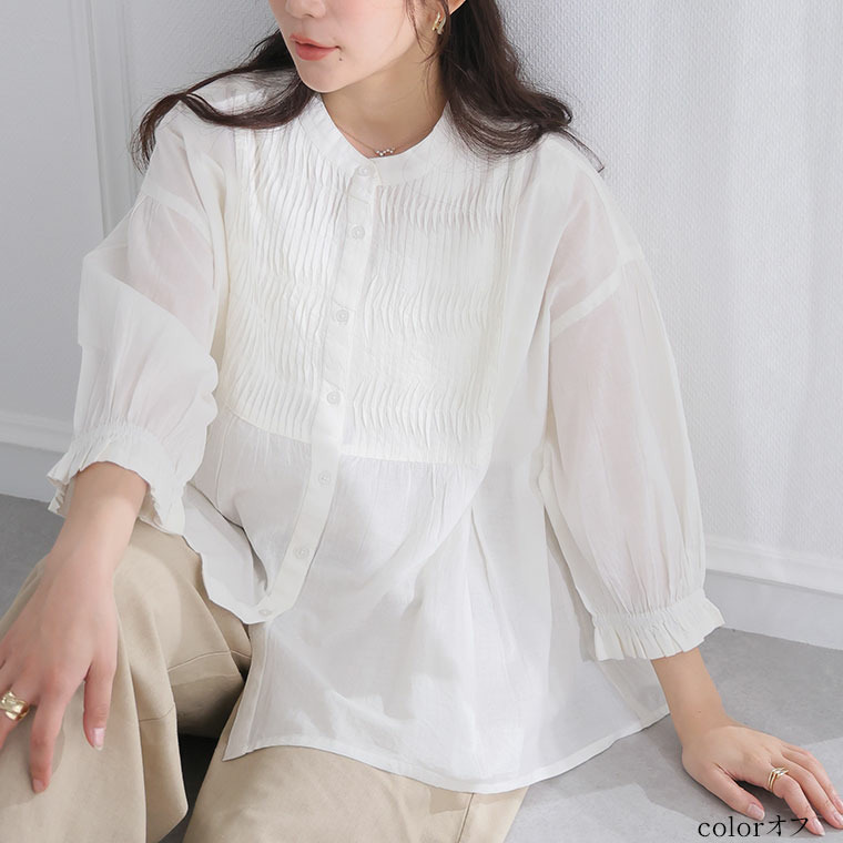 七分袖 ピンタック ブラウス