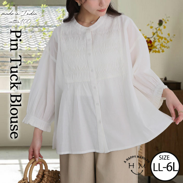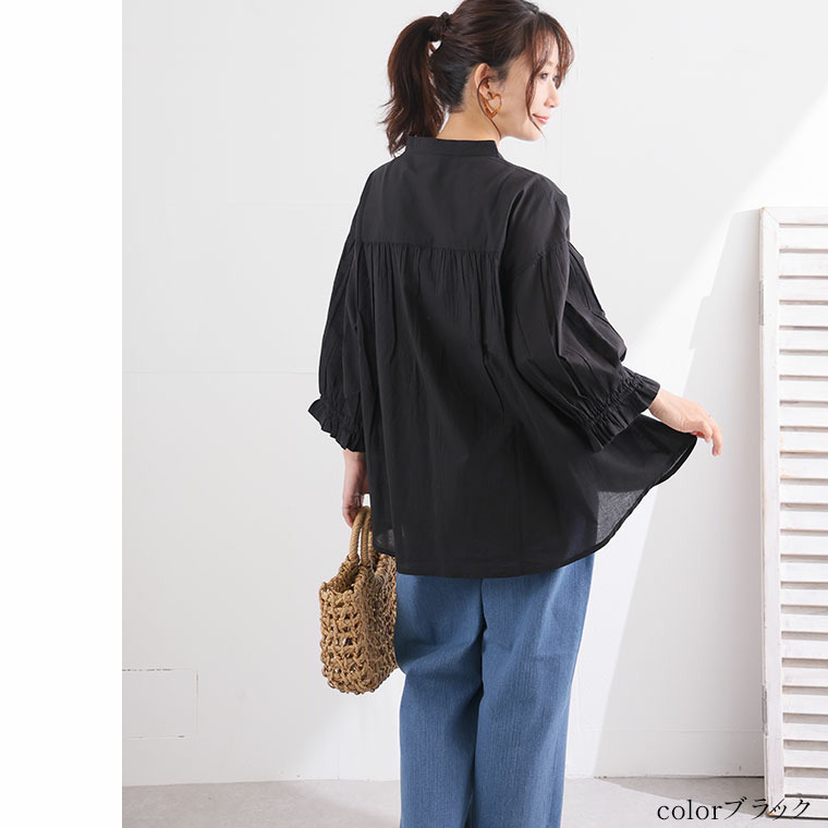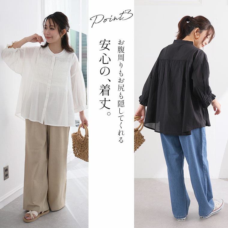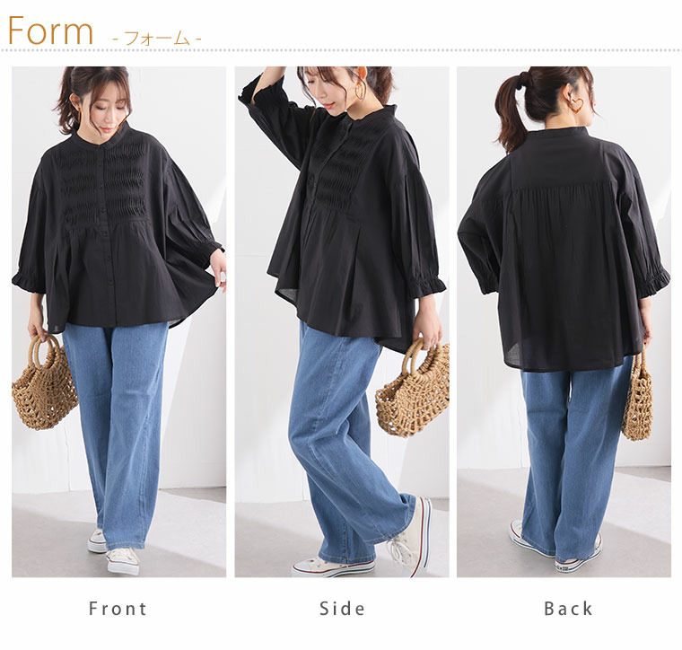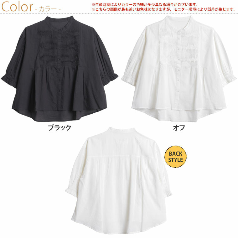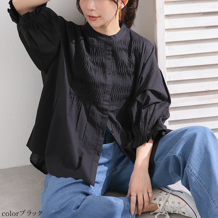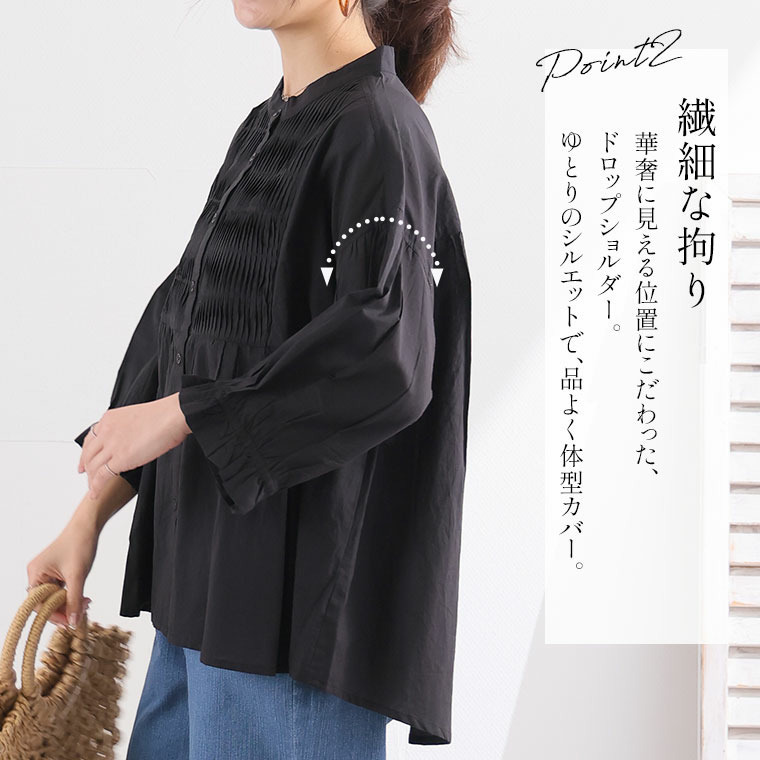 七分袖 ピンタック ブラウス