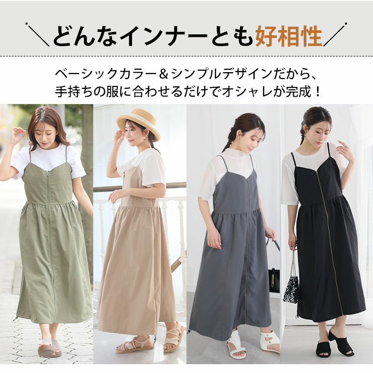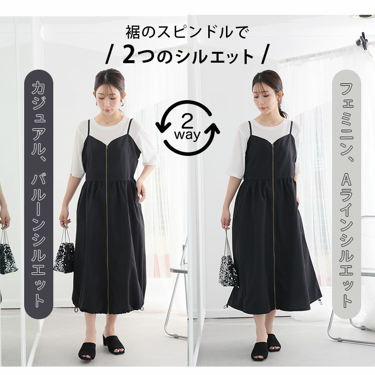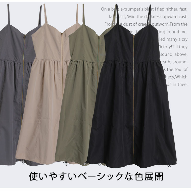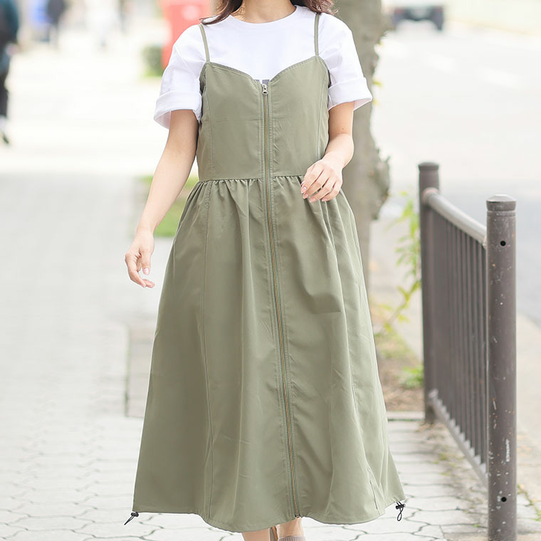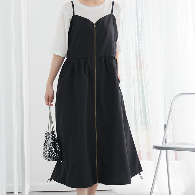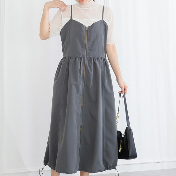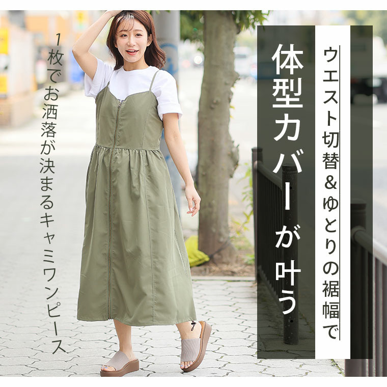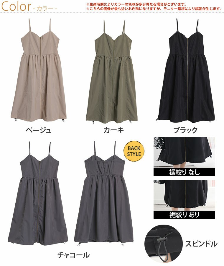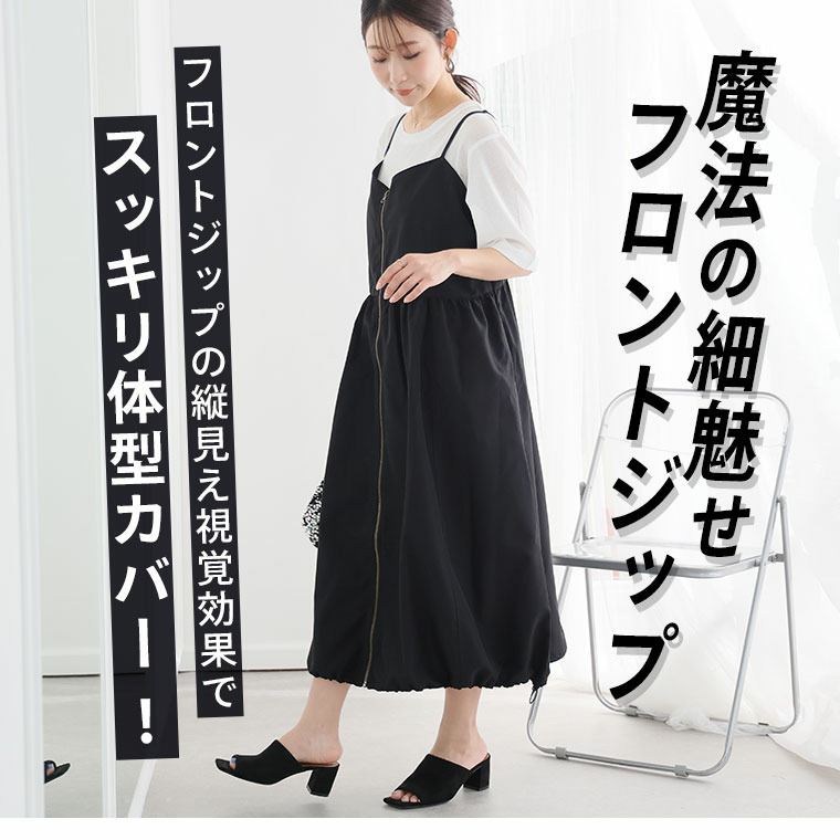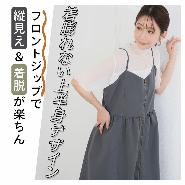 切り替えで着痩せ フロントジップ Aライン ワンピース
