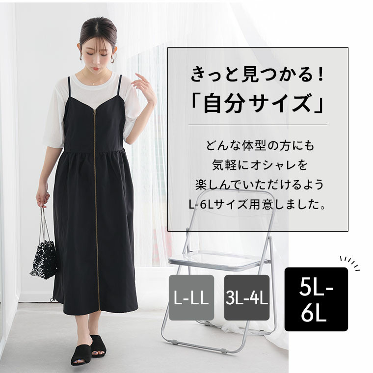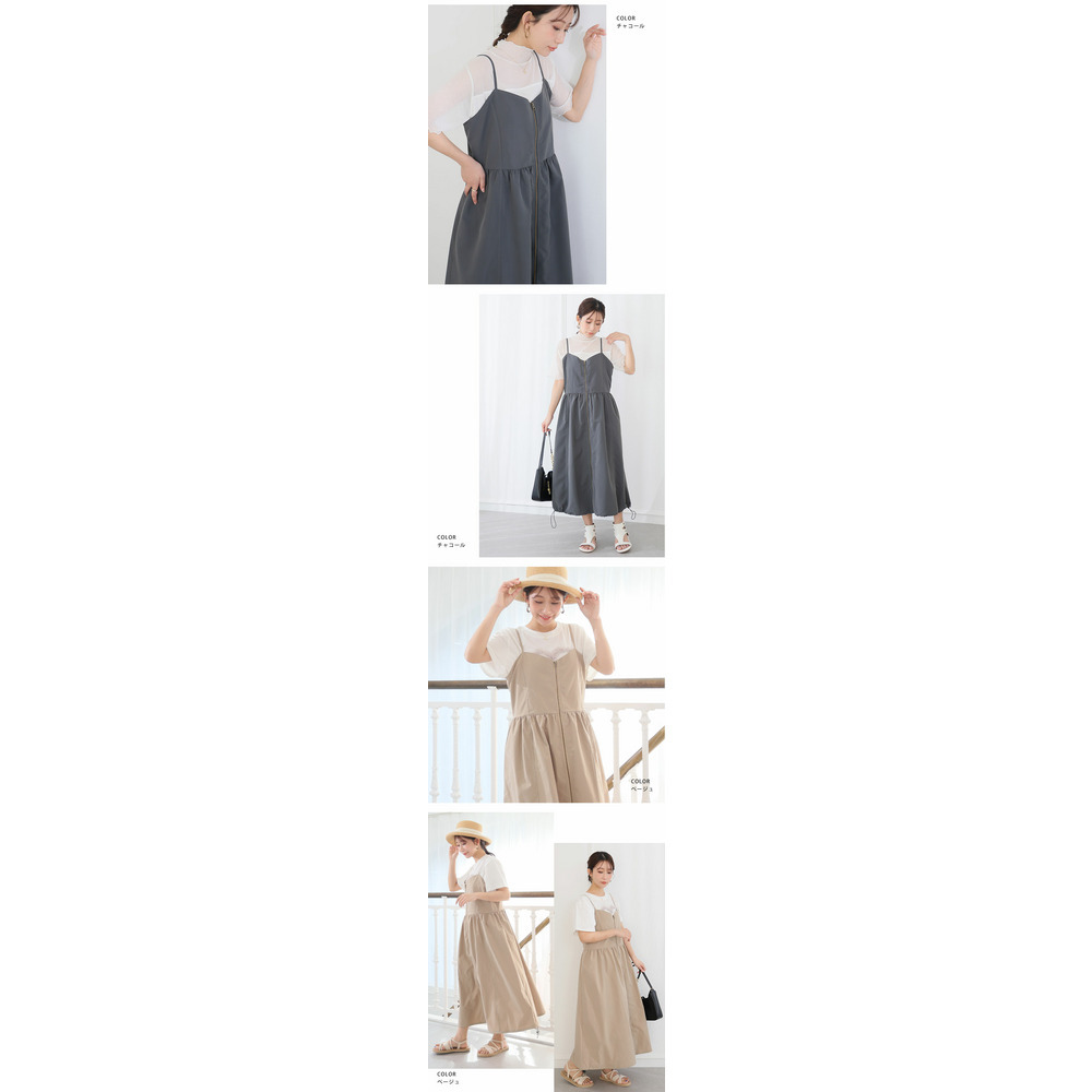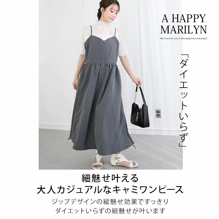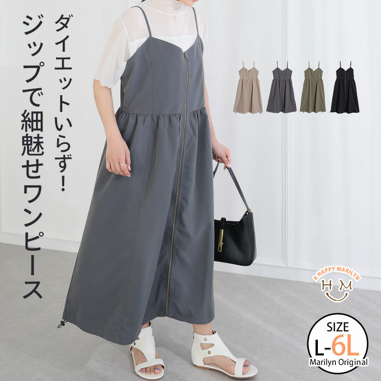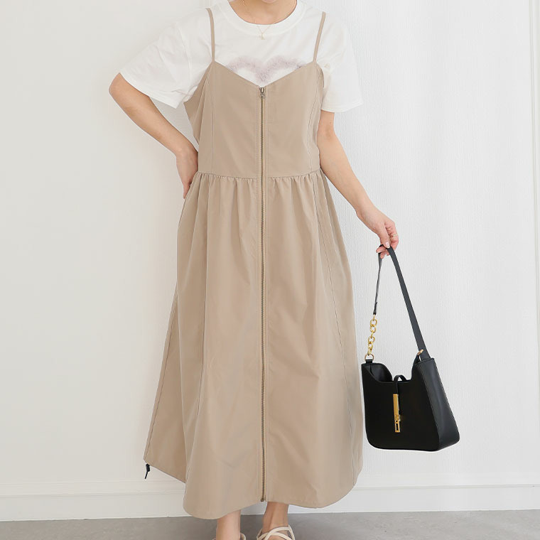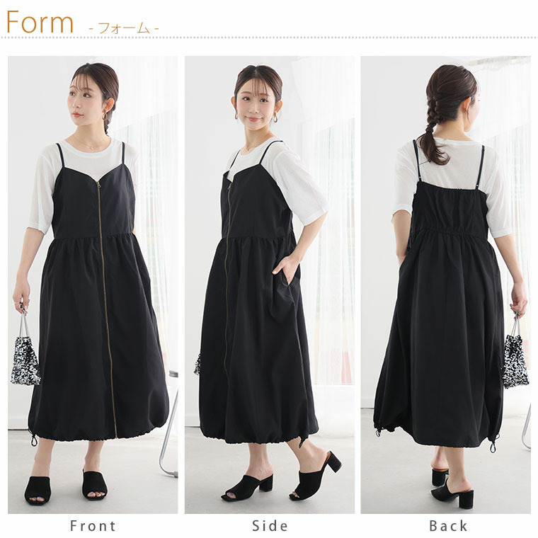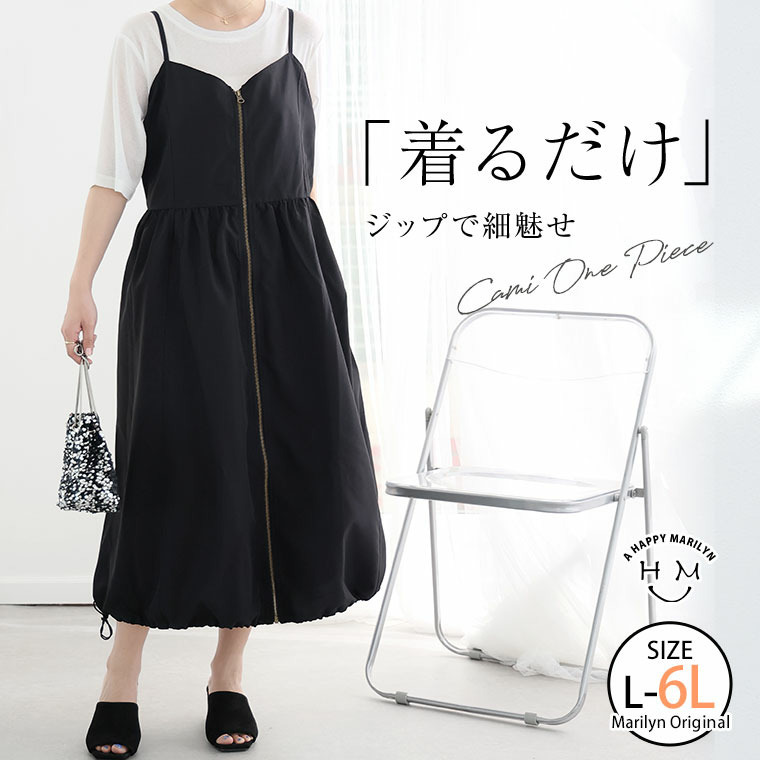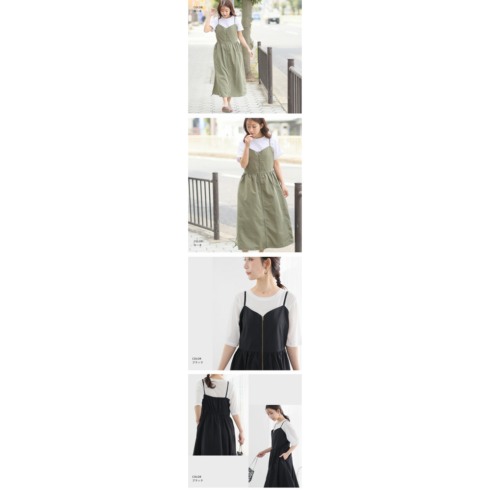切り替えで着痩せ フロントジップ Aライン ワンピース