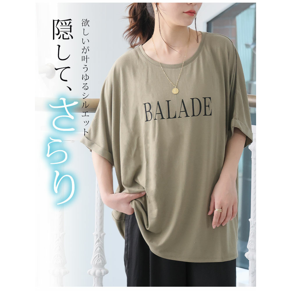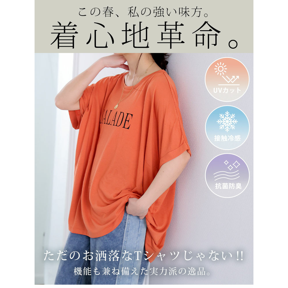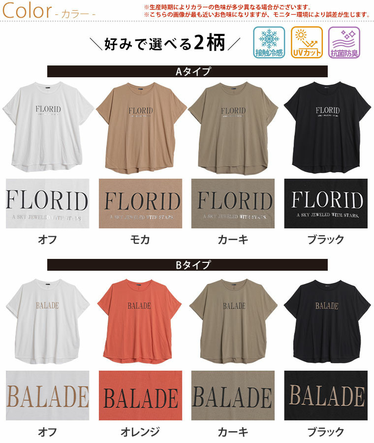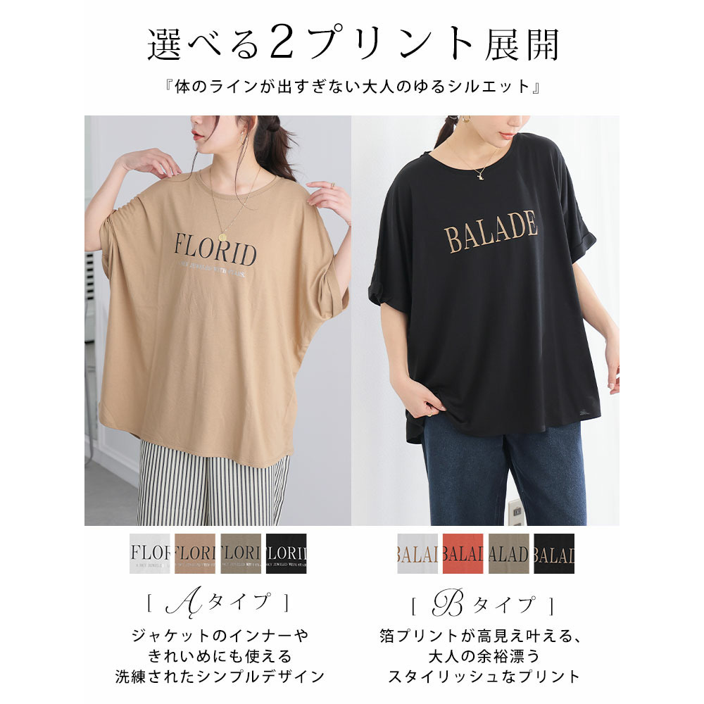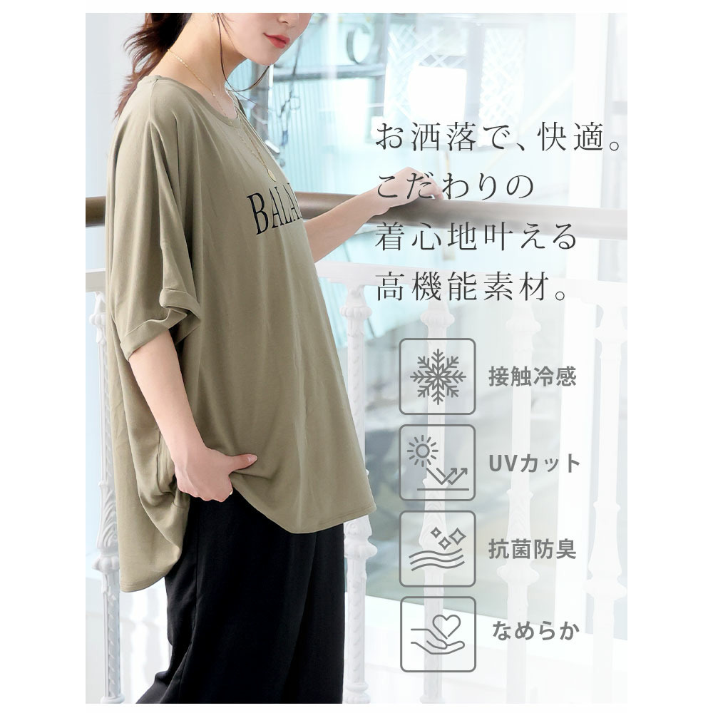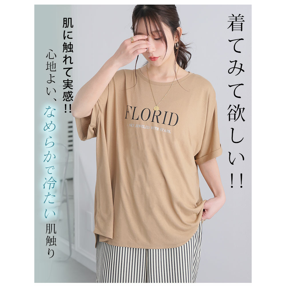 さらりとひんやりなめらか 選べるプリント セミシルケット天竺 ドルマンシルエット Tシャツ