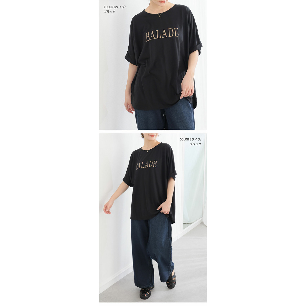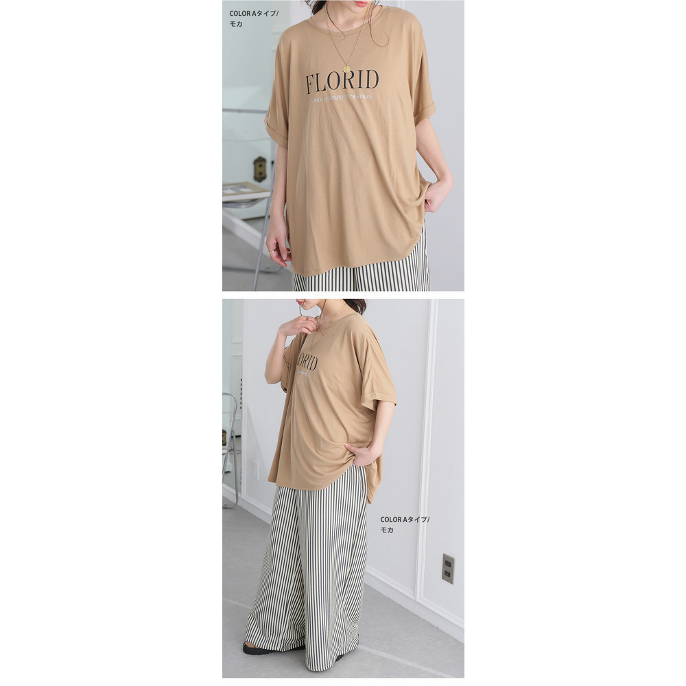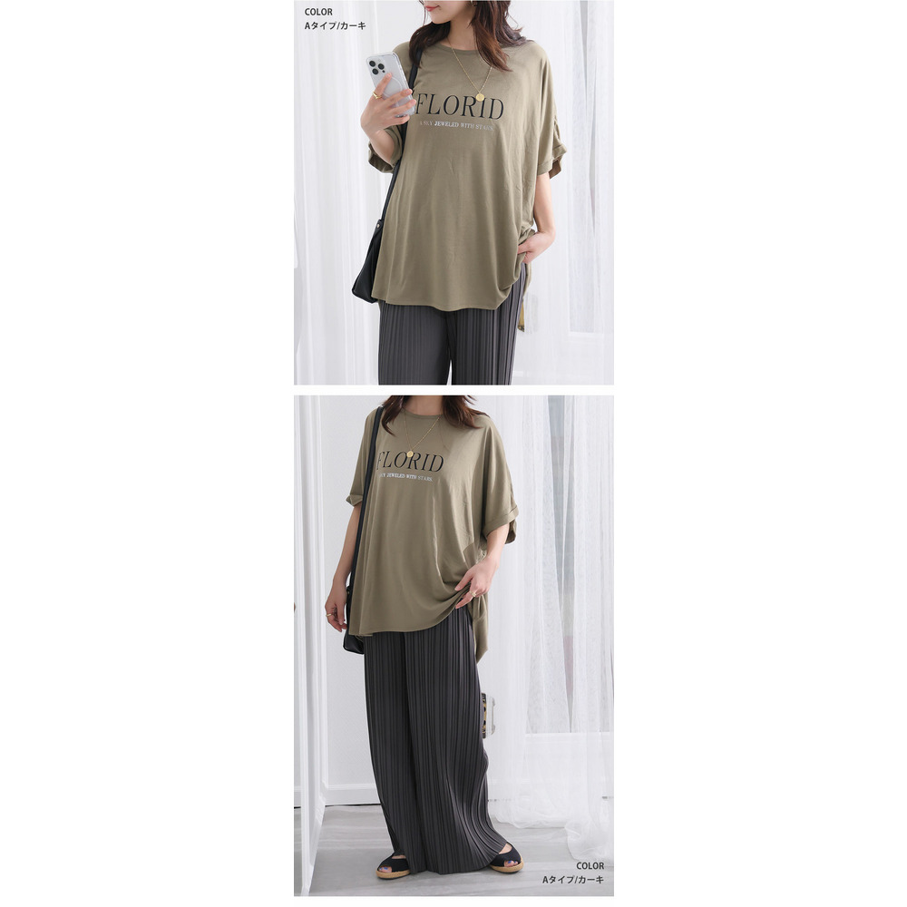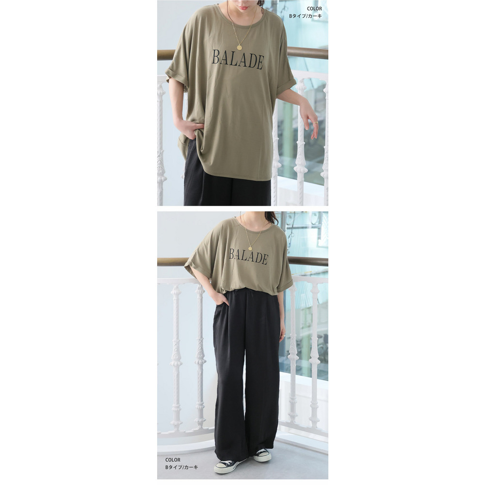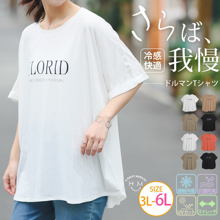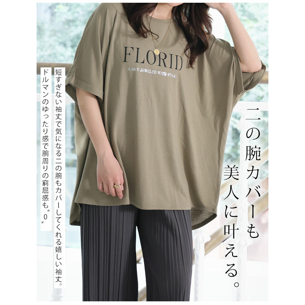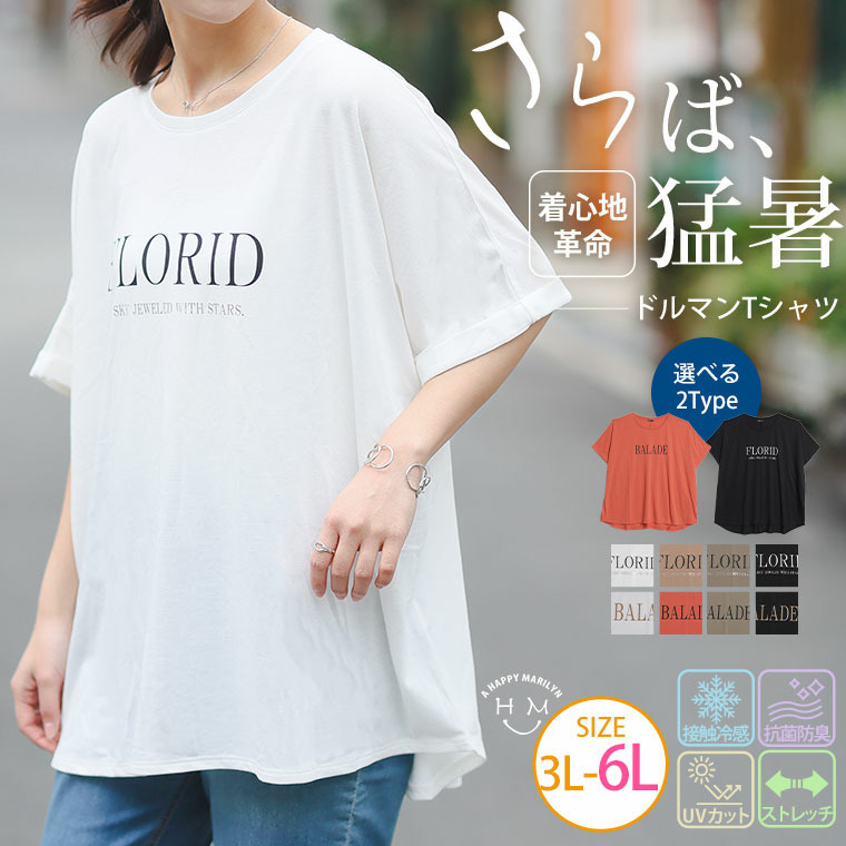 さらりとひんやりなめらか 選べるプリント セミシルケット天竺 ドルマンシルエット Tシャツ