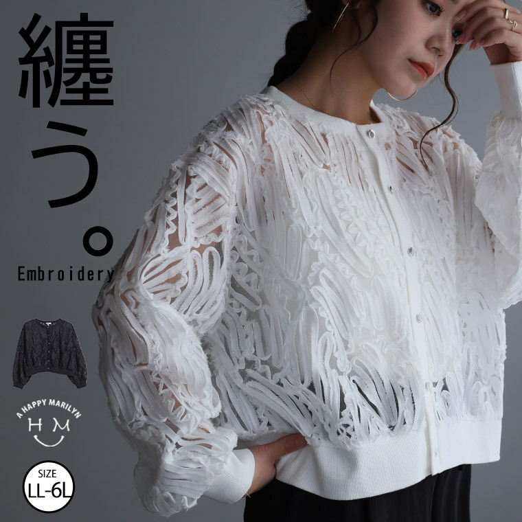涼しげに華やぐ コードシアー 刺繍 カーデ ストレッチ入り