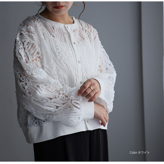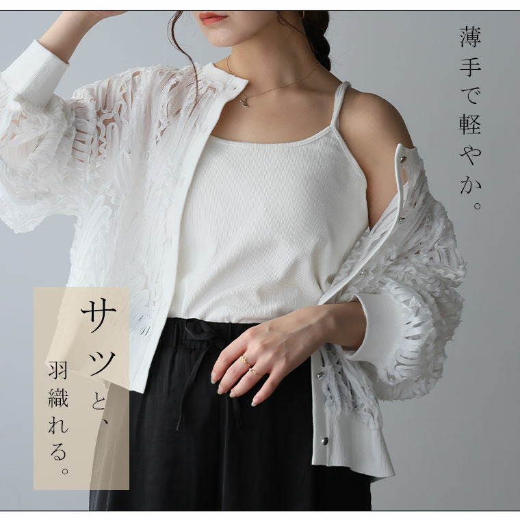 • 涼しげに華やぐ コードシアー 刺繍 カーデ ストレッチ入り18