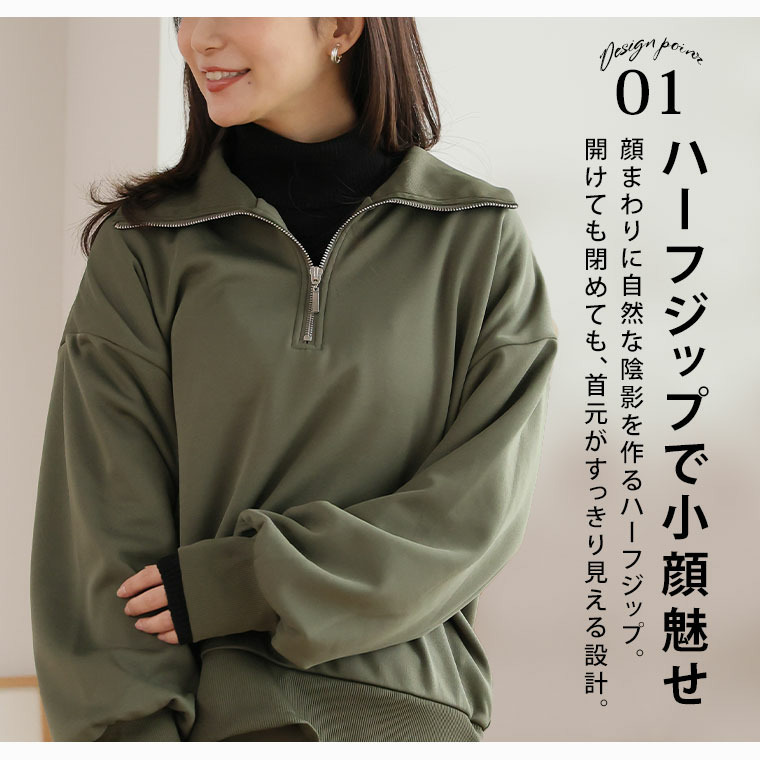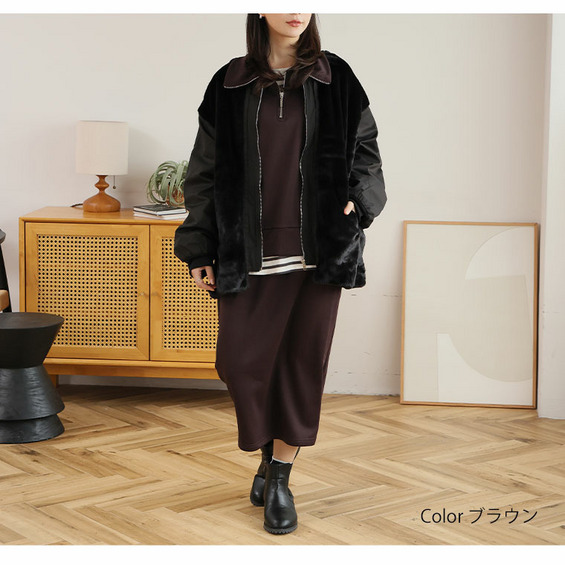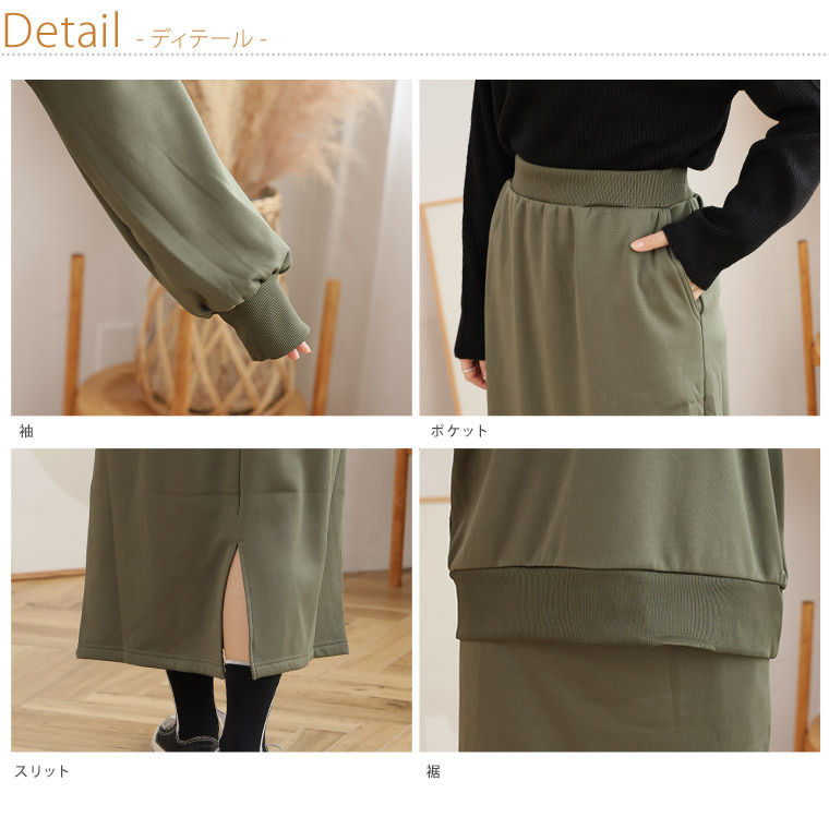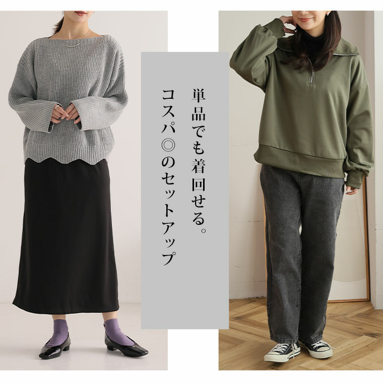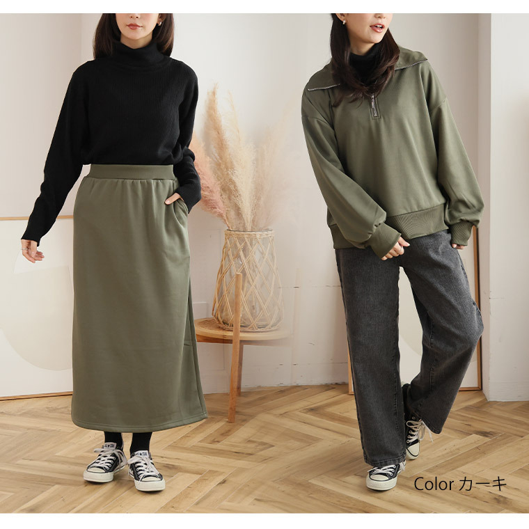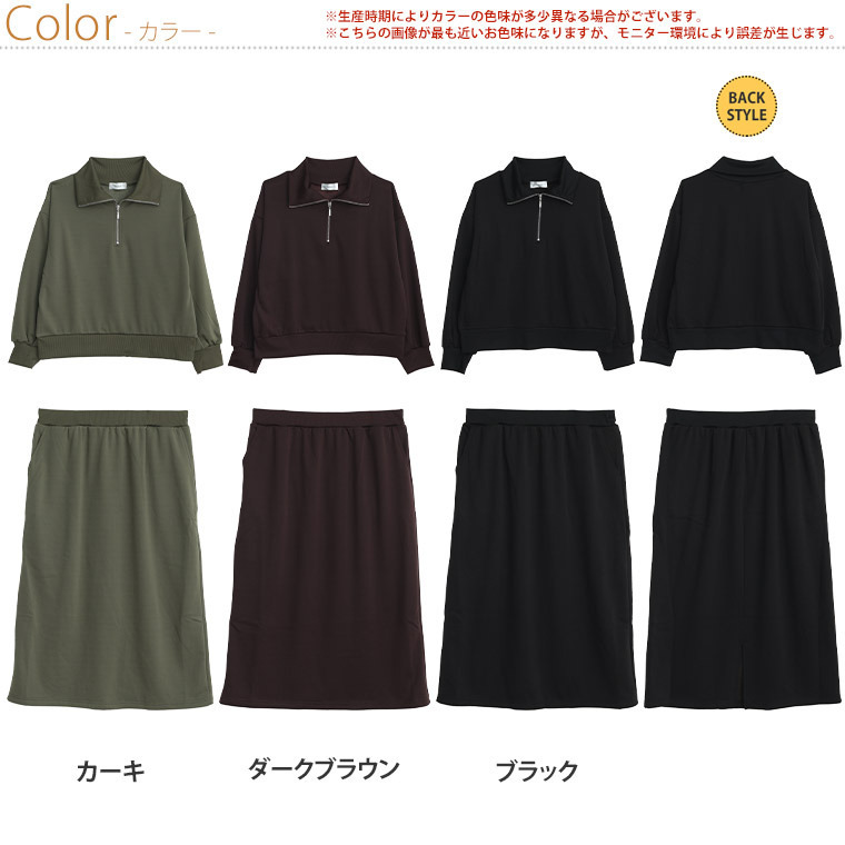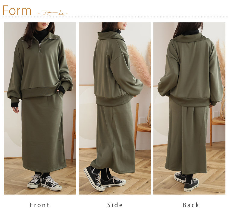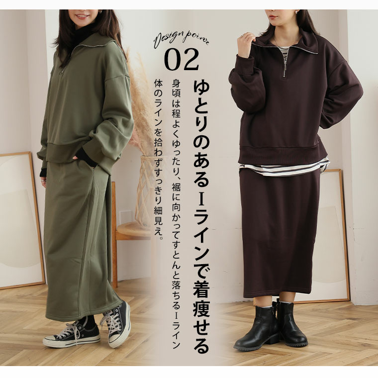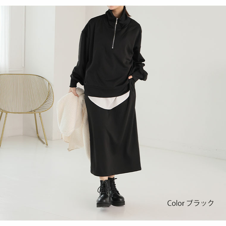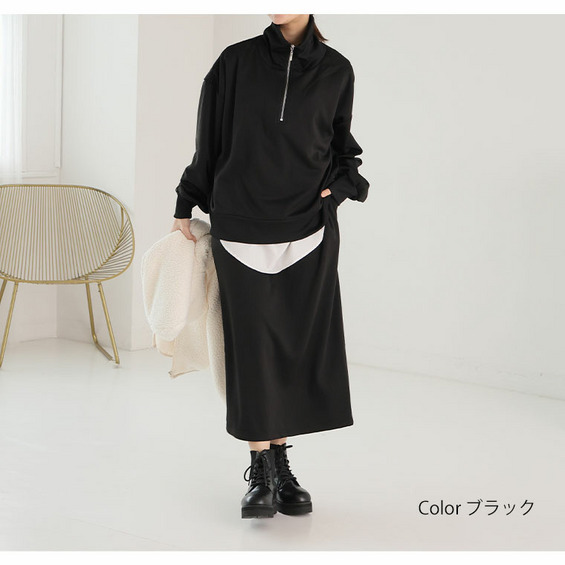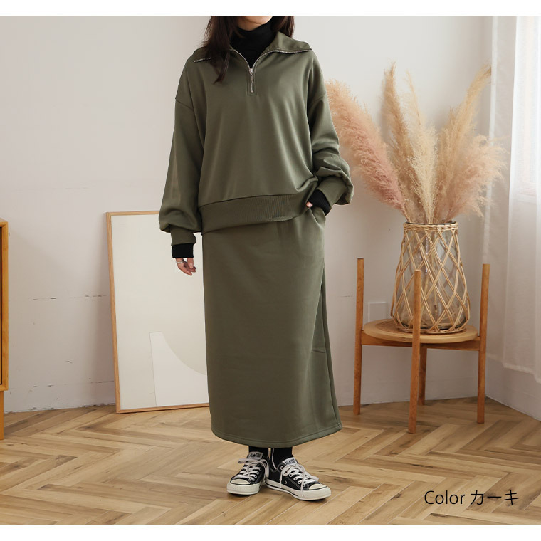 ハーフZIP トップス + タイト ナロースカート セットアップ 裏シャギー