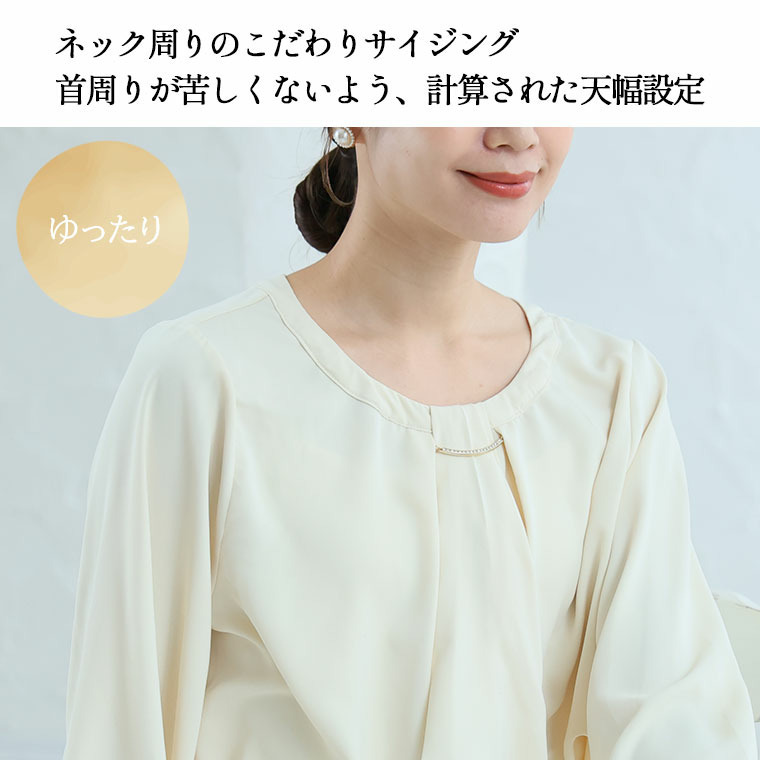 ■L-LL■ 身丈62cm バスト114cm 天幅22cm 肩幅39cm アームホール54cm 二の腕周り41cm 袖丈57cm 袖口周り25cm 裾周り126cm ■3L-4L■ 身丈64cm バスト124cm 天幅23cm 肩幅41cm アームホール57cm 二の腕周り43cm 袖丈58cm 袖口周り26cm 裾周り136cm ■5L-6L■ 身丈66cm バスト134cm 天幅24cm 肩幅43cm アームホール61cm 二の腕周り45cm 袖丈59cm 袖口周り27cm 裾周り146cm