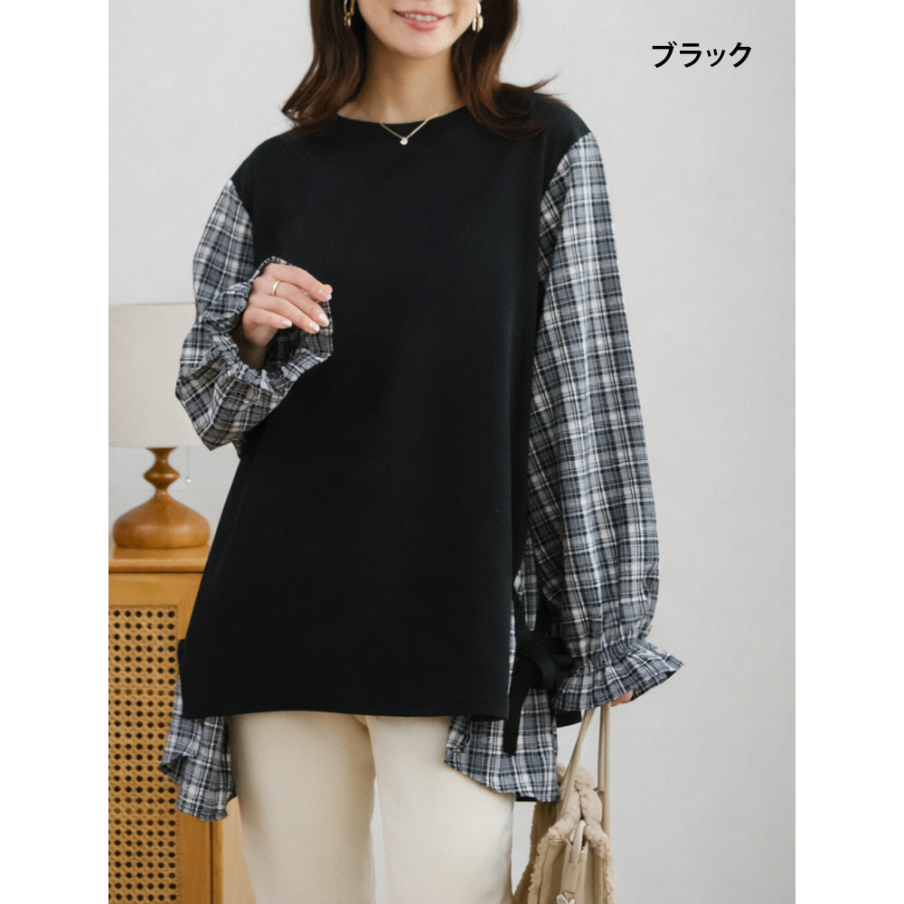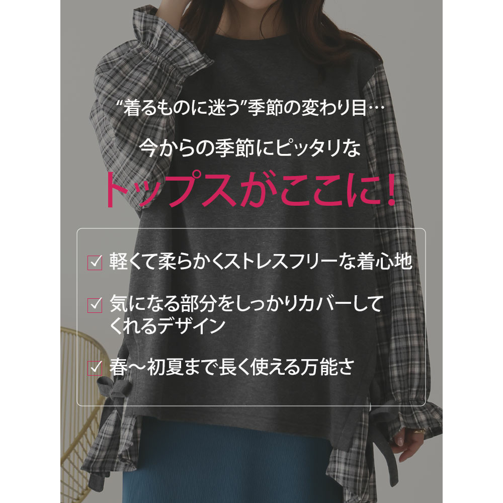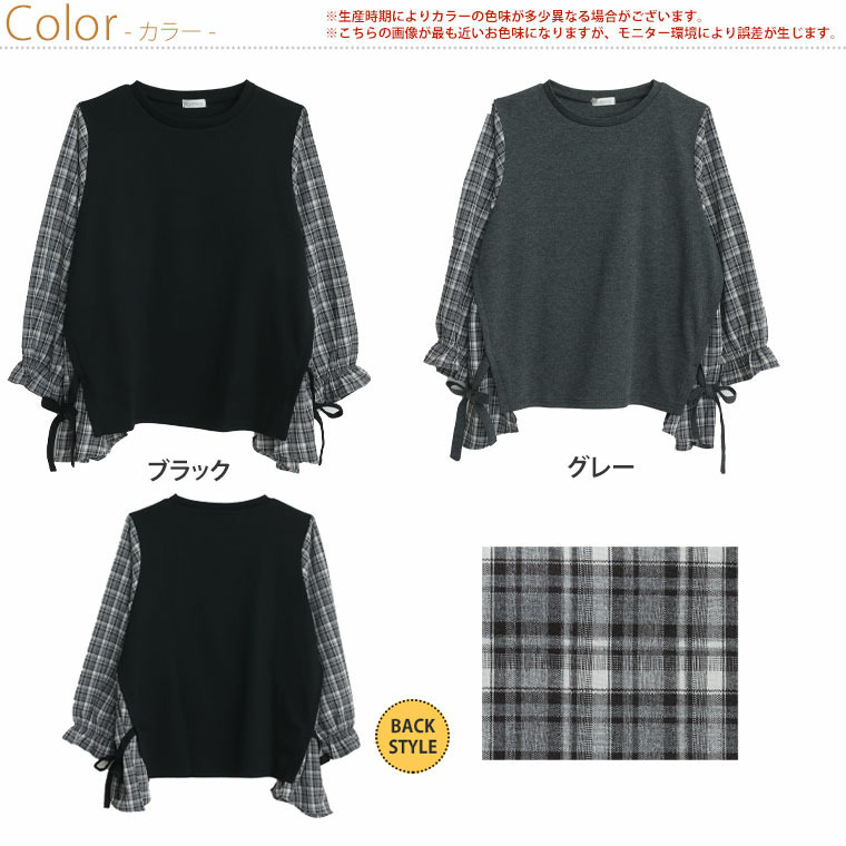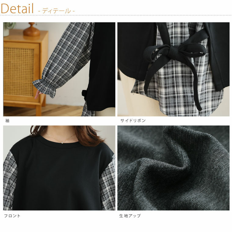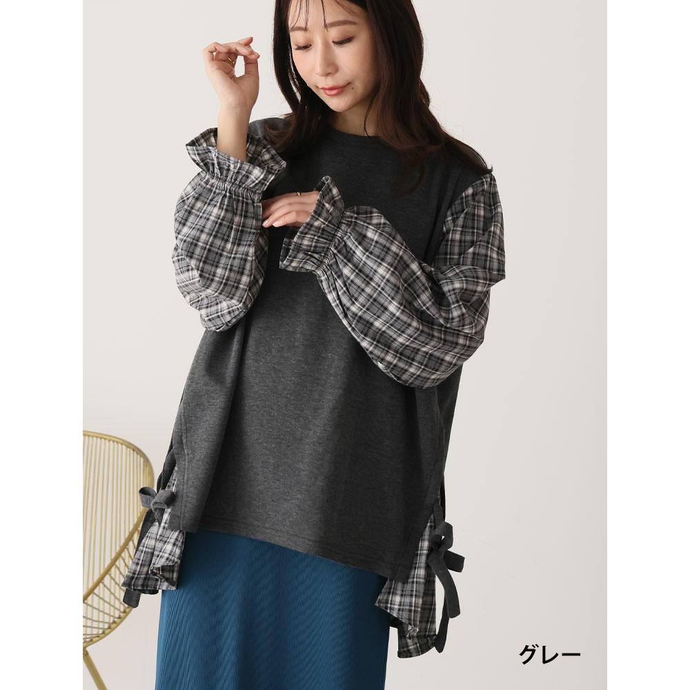 サイドリボン 布帛使い キャンディスリーブ プルオーバー