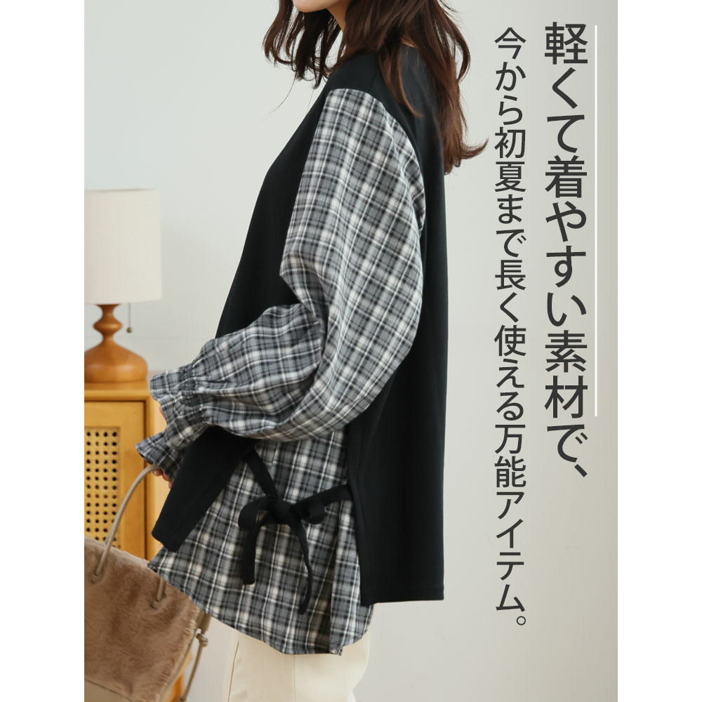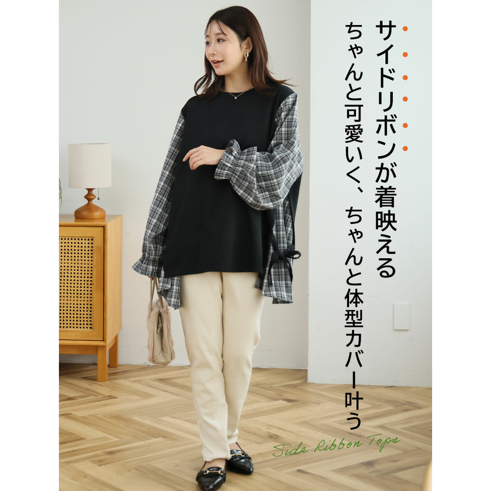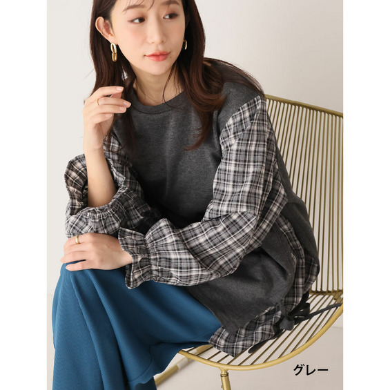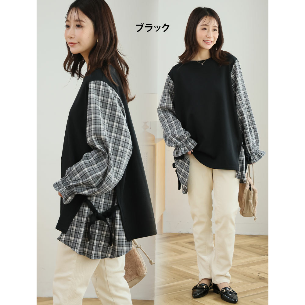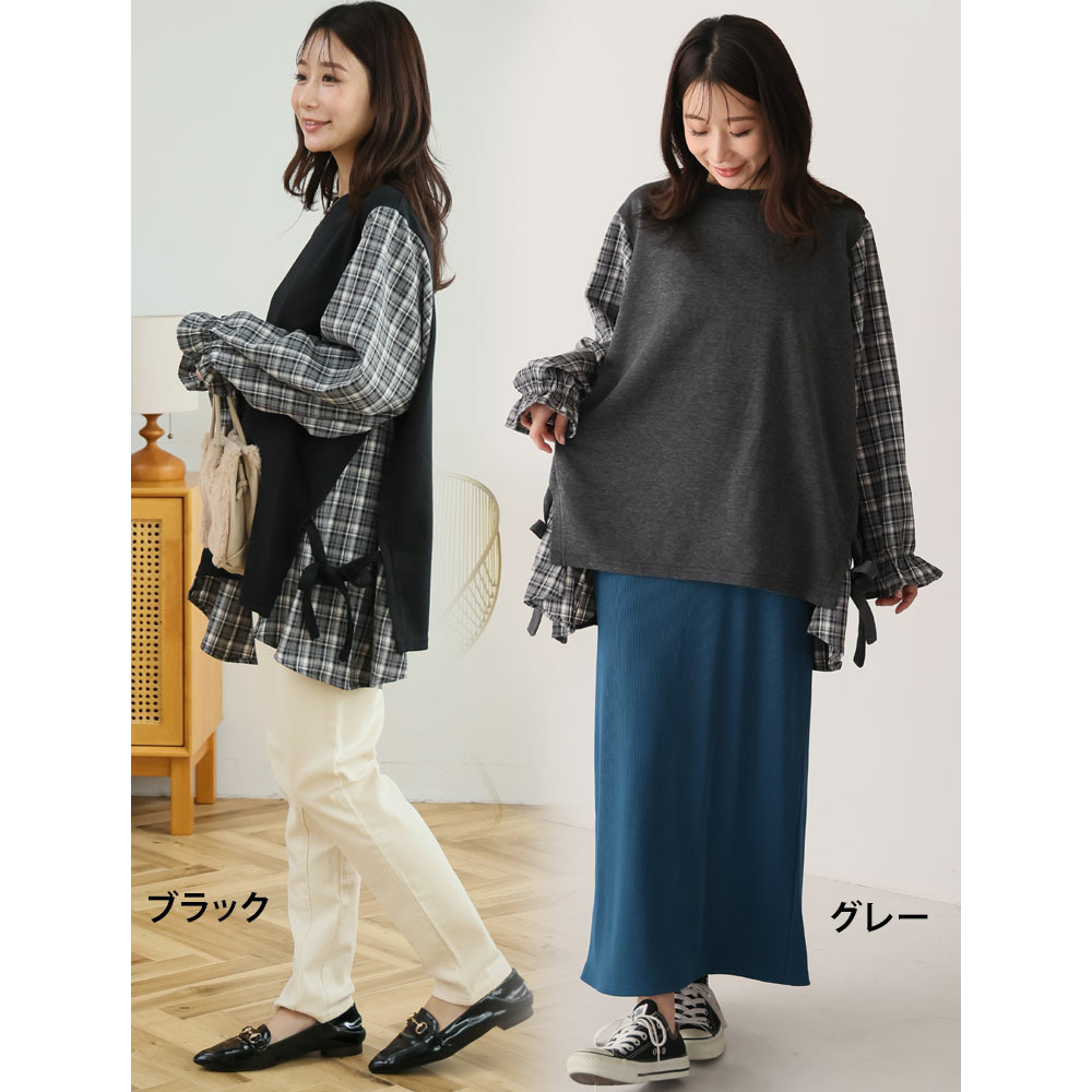 サイドリボン 布帛使い キャンディスリーブ プルオーバー