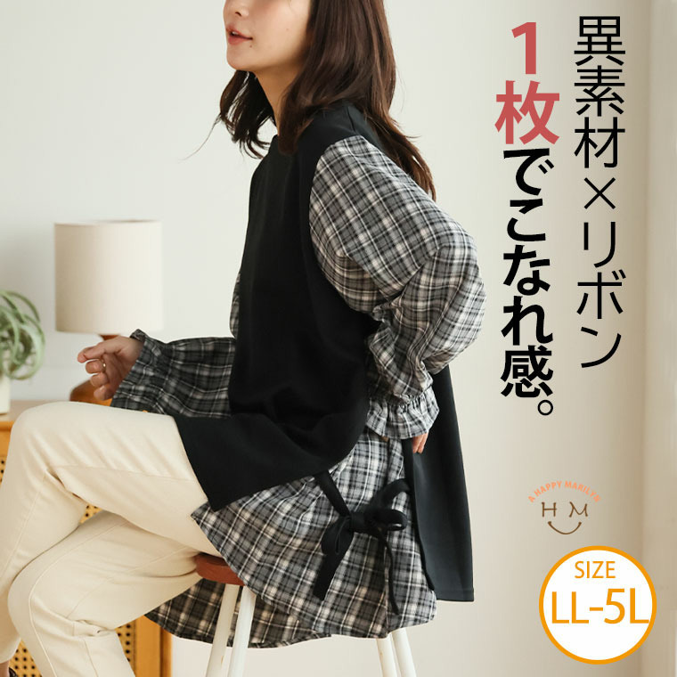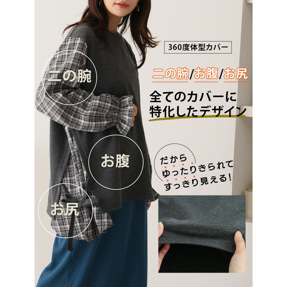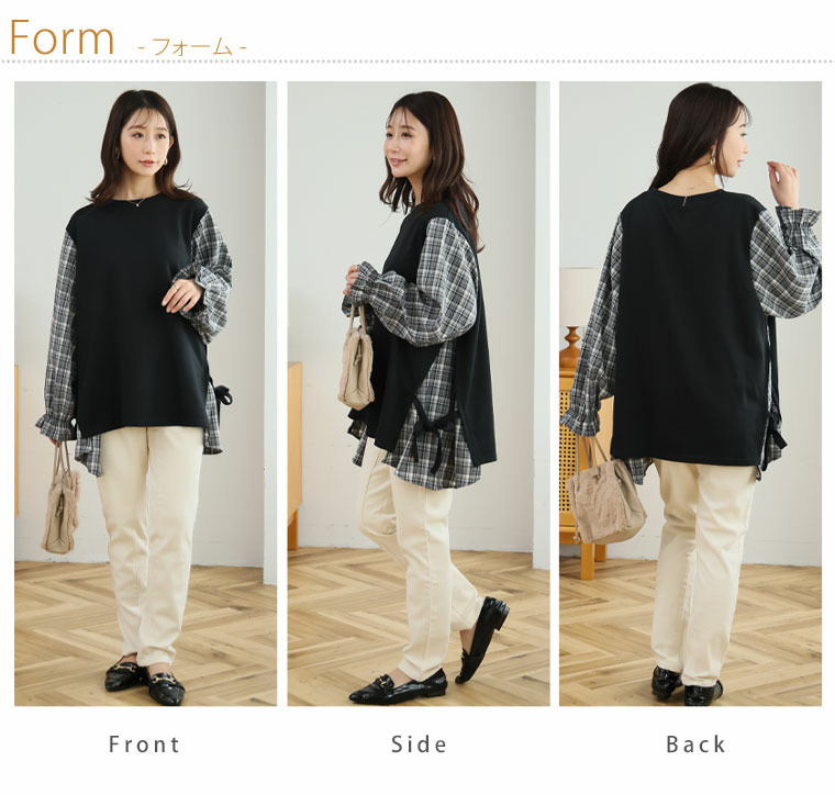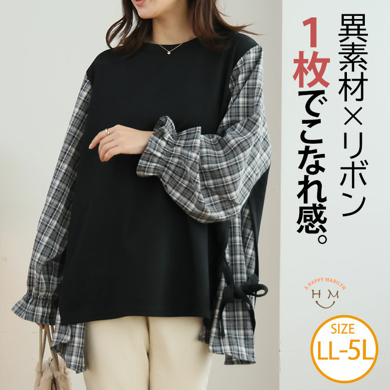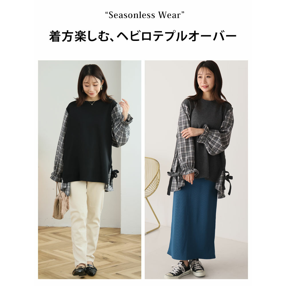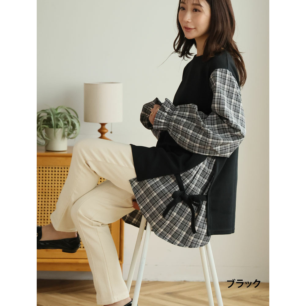 サイドリボン 布帛使い キャンディスリーブ プルオーバー