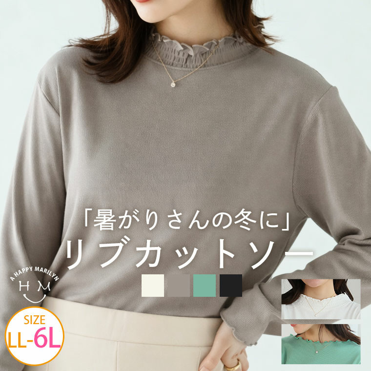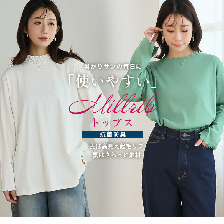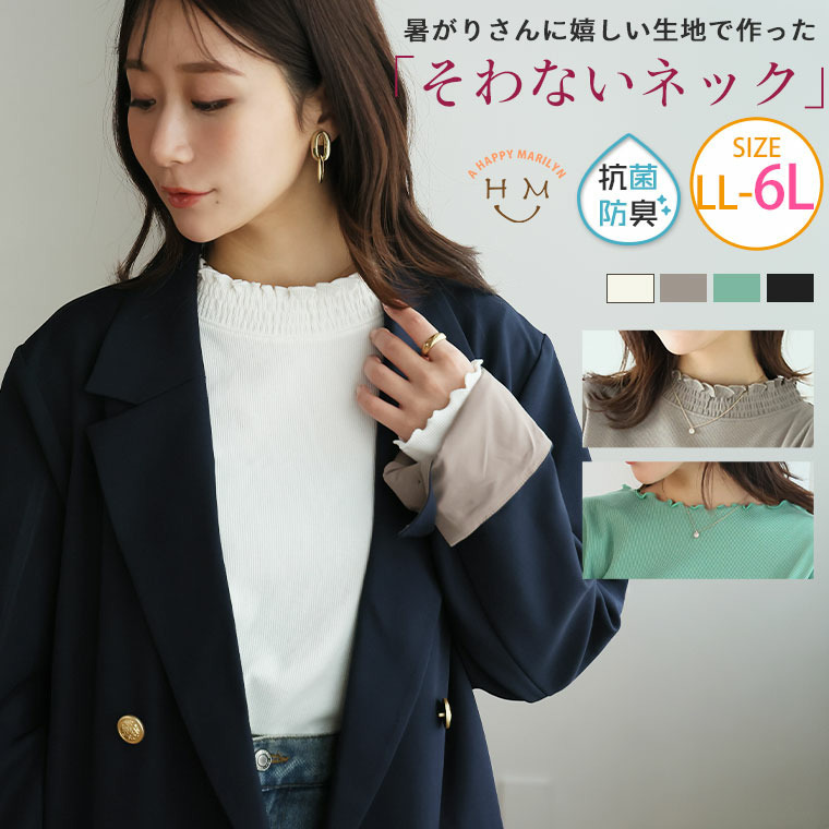 スゴっ! 裏技 首元苦しくない! 選べるネック リブ トップス 抗菌防臭