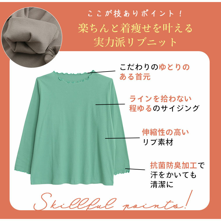 • スゴっ! 裏技 首元苦しくない! 選べるネック リブ トップス 抗菌防臭9