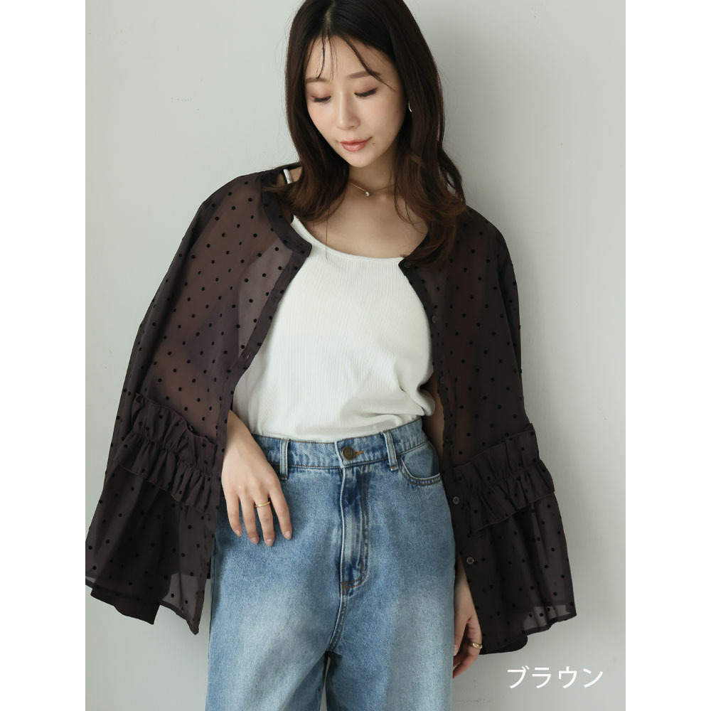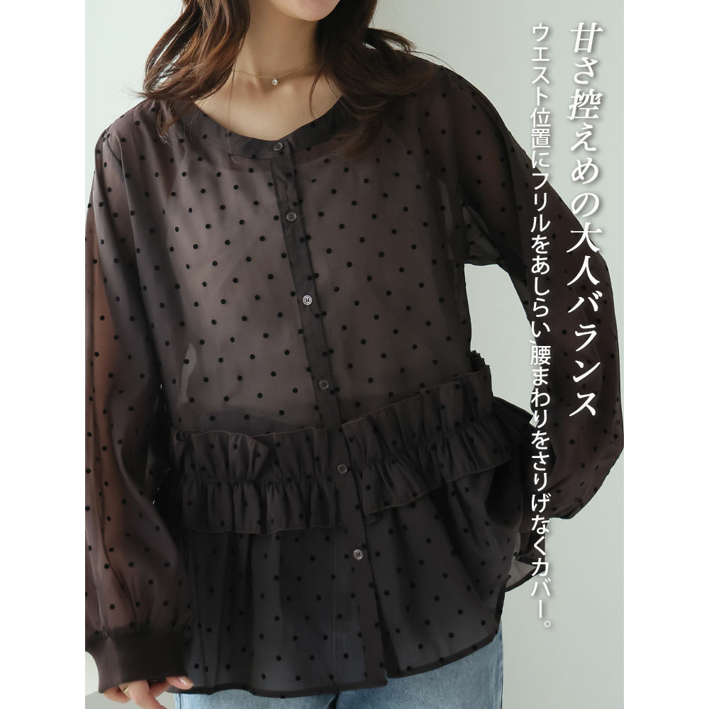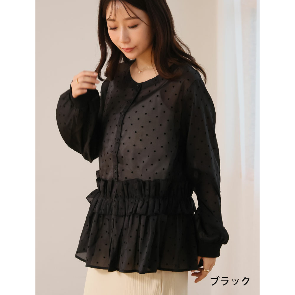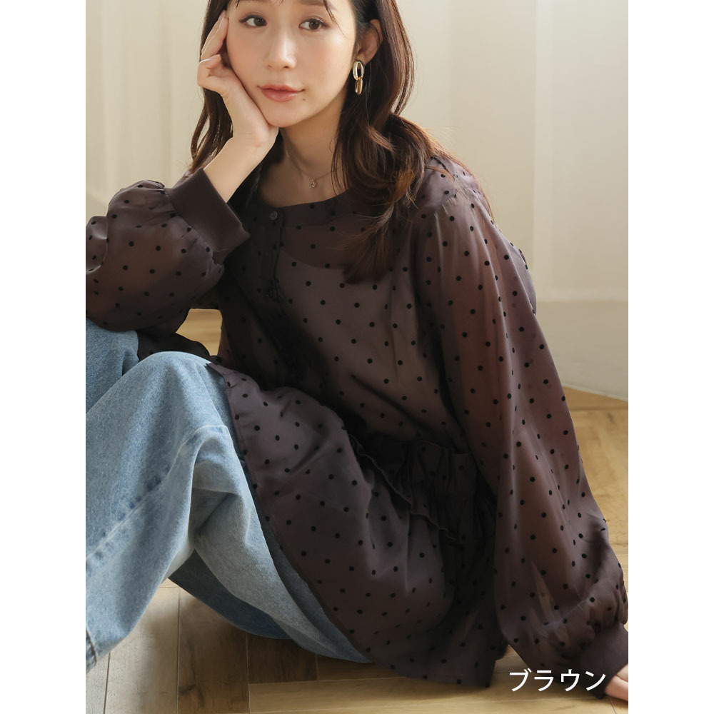 シアー ドットフロッキー ブラウス