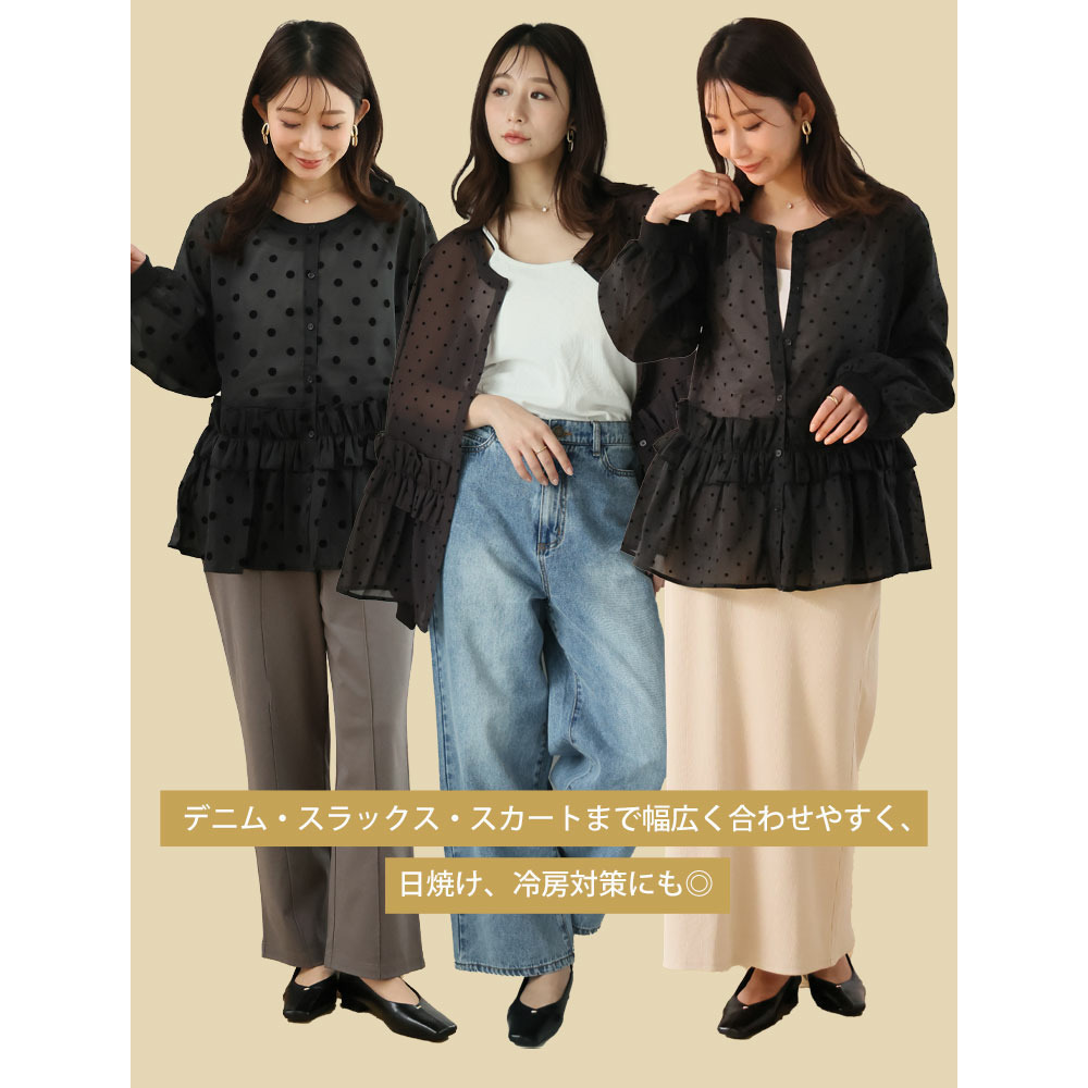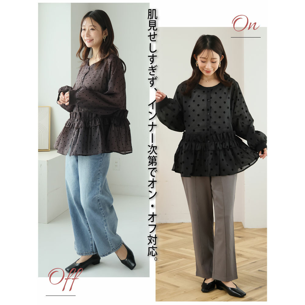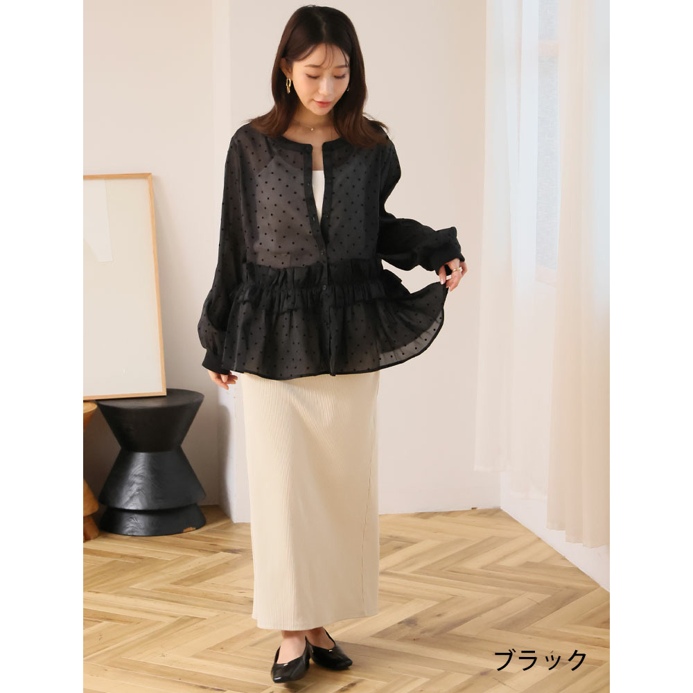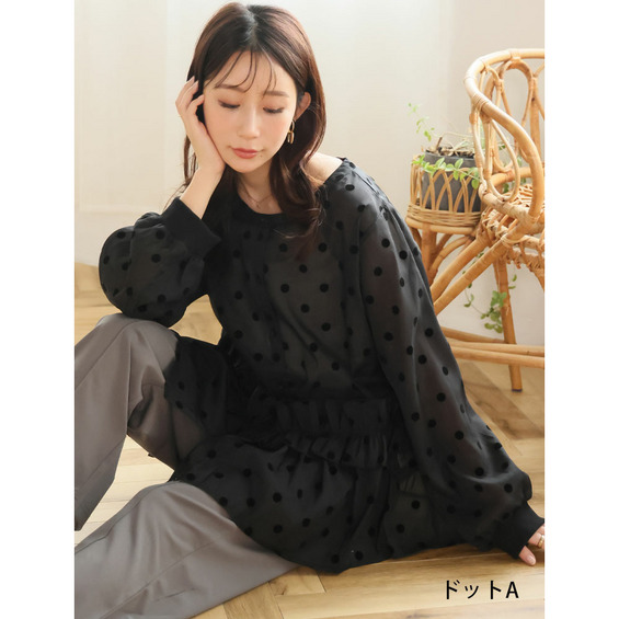 シアー ドットフロッキー ブラウス