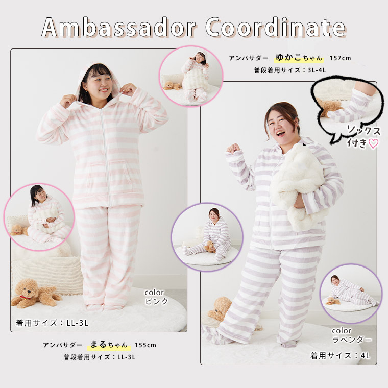ふわふわボーダールームウェア / 大きいサイズ ハッピーマリリン