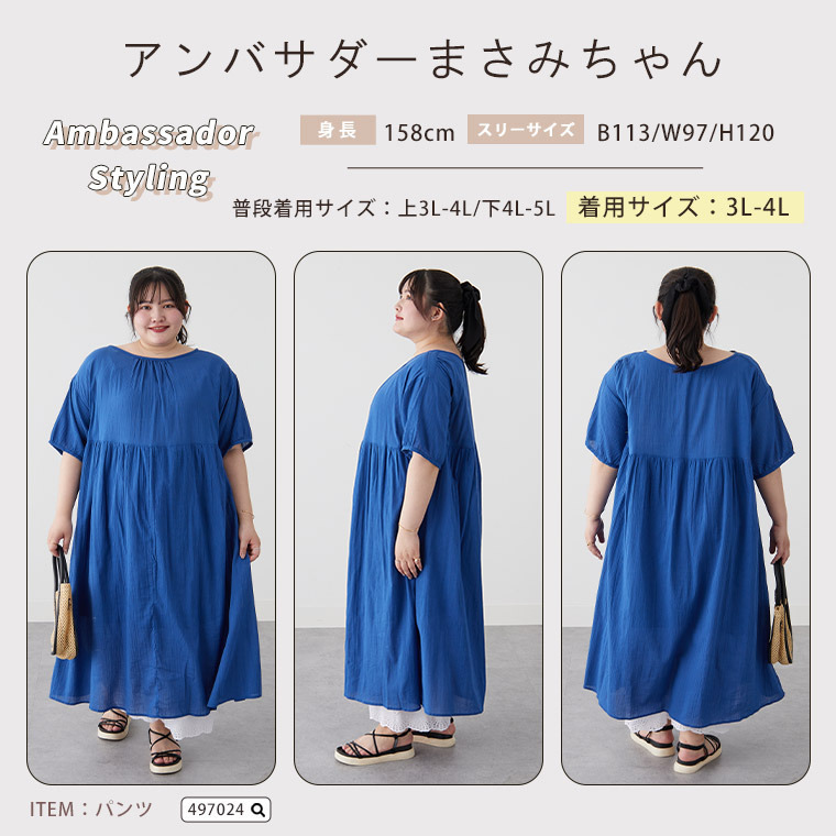 【風通るプレミアム】 綿 楊柳 五分袖 ウエスト切替 ワンピース