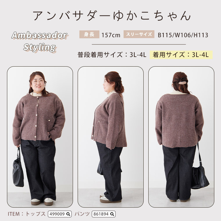 ■L-LL(タグ1)■ 身丈(前/後)63/65cm バスト123cm 天幅24cm 肩幅46cm アームホール51cm 二の腕周り47cm 袖丈56cm 袖口周り26cm 裾周り118cm ■3L-4L(タグ2)■ 身丈(前/後)65/67cm バスト133cm 天幅25cm 肩幅48cm アームホール54cm 二の腕周り50cm 袖丈57cm 袖口周り28cm 裾周り128cm ■5L-6L(タグ3)■ 身丈(前/後)67/69cm バスト143cm 天幅26cm 肩幅50cm アームホール58cm 二の腕周り54cm 袖丈58cm 袖口周り30cm 裾周り138cm