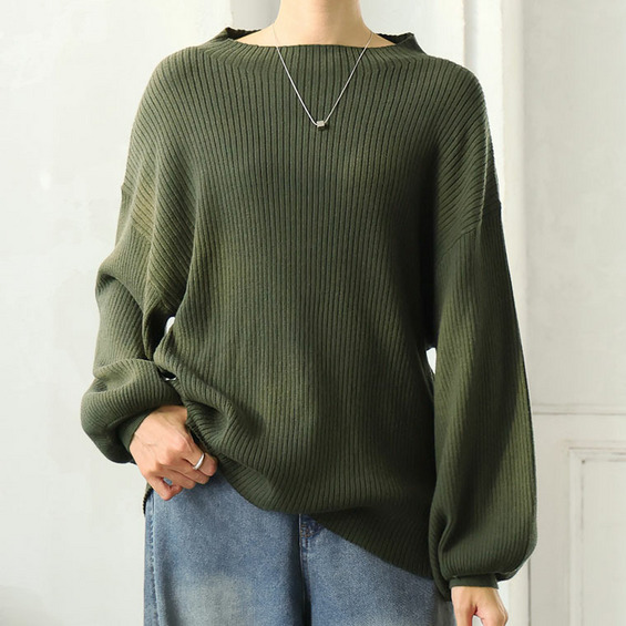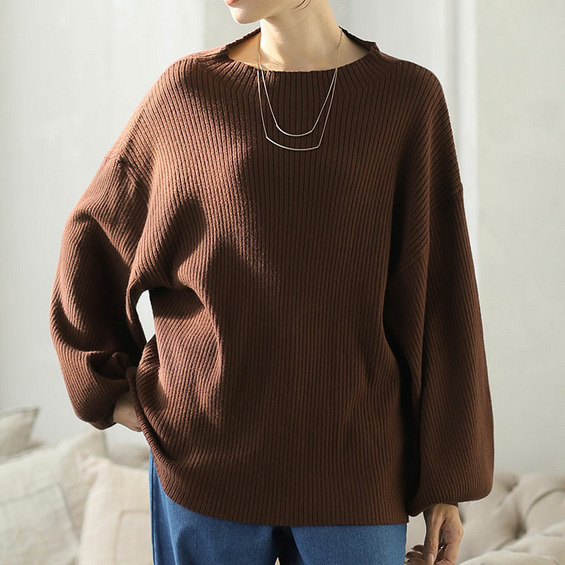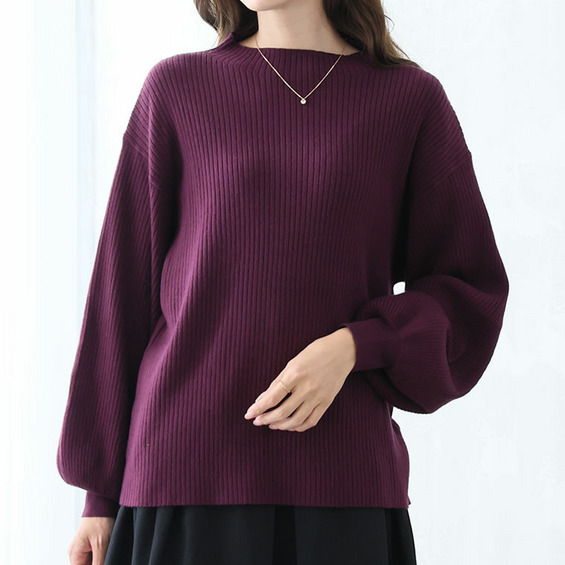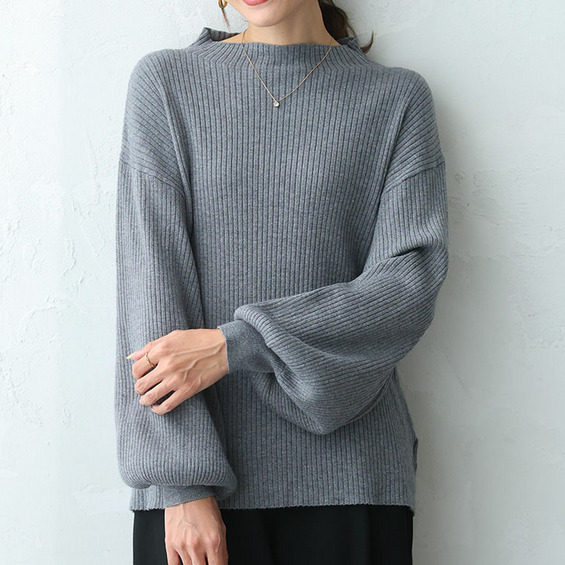 新色追加!! Rin フィットしすぎない!細魅せ叶える!華奢魅せ美人 もっちり リブ 長袖 ぽわん袖ニット
