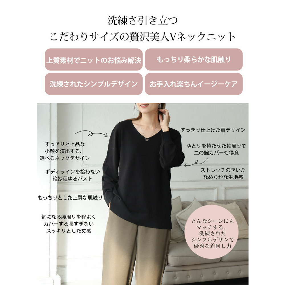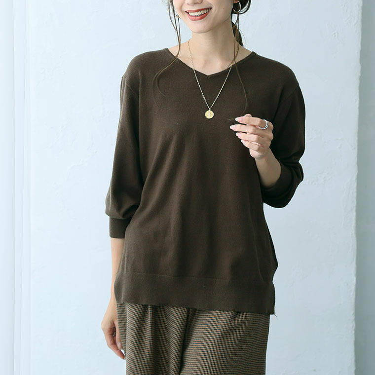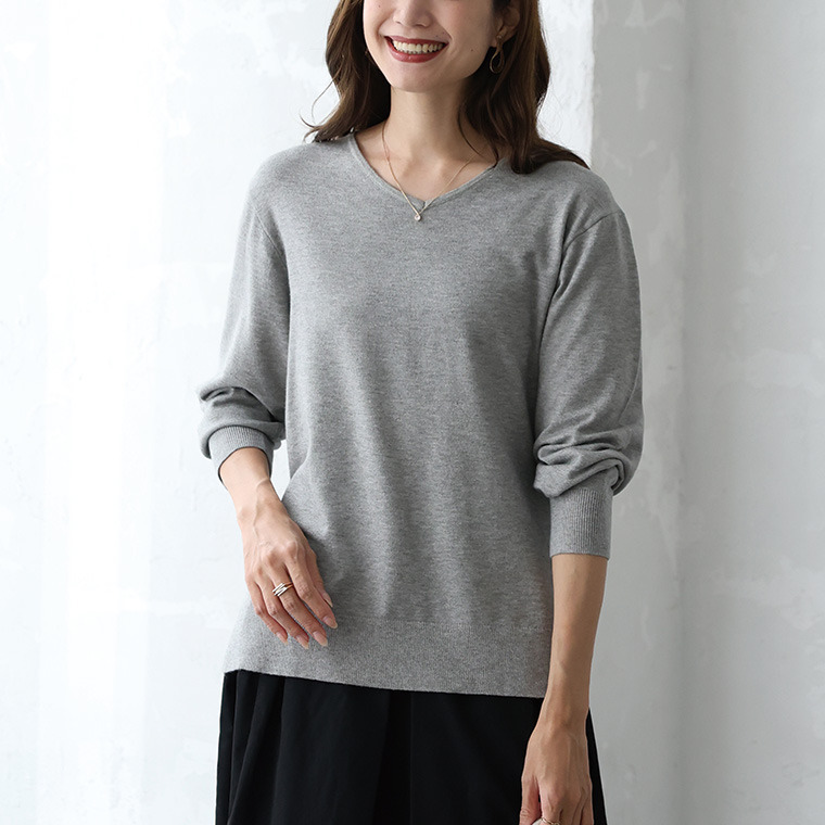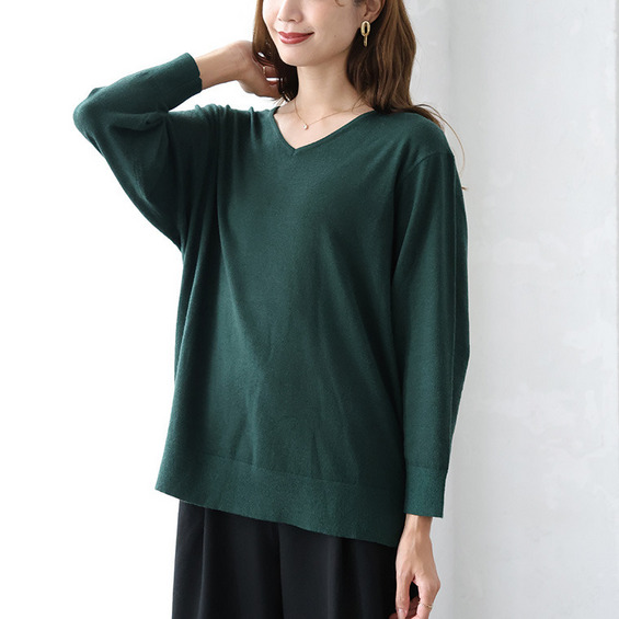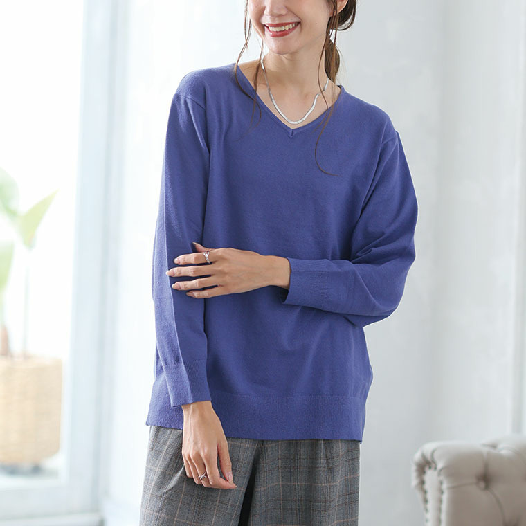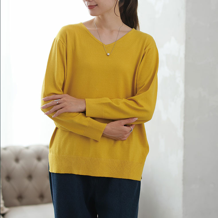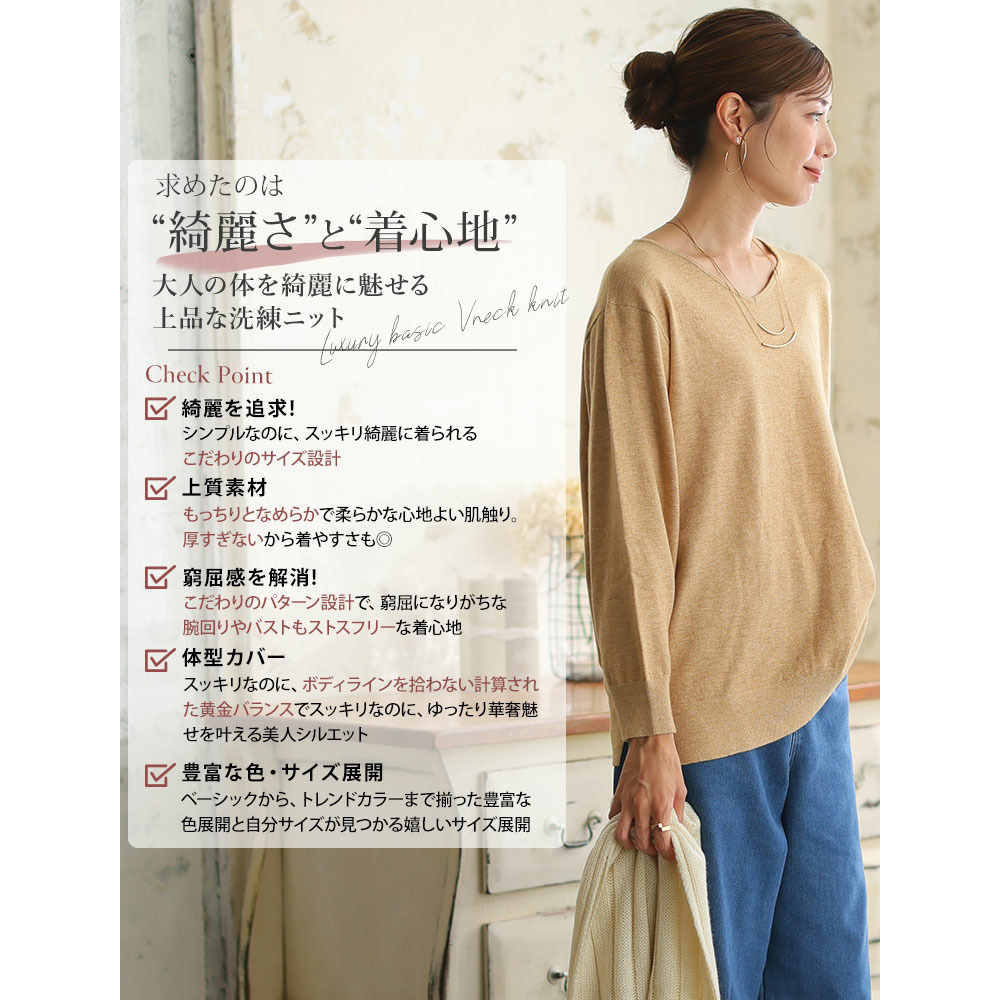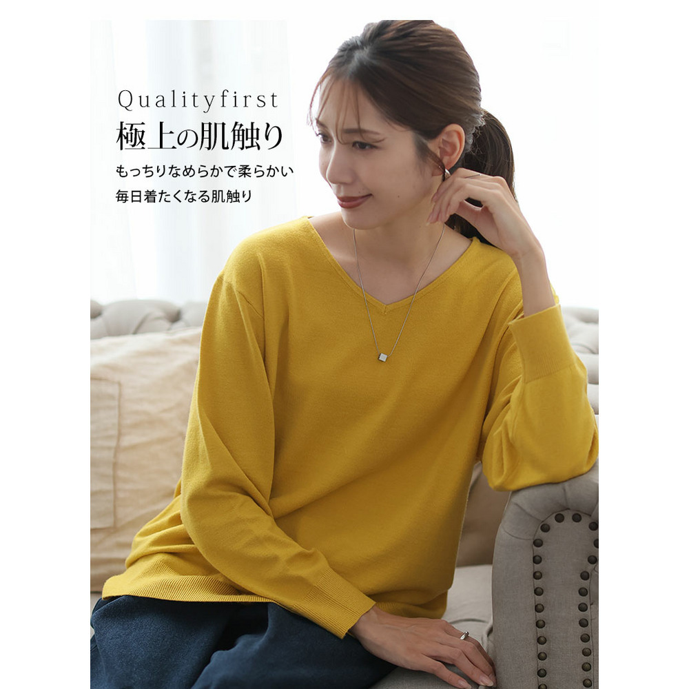 • Rin フィット感軽減! Tシャツ感覚 もっちりやわらか Vネック ニット21
