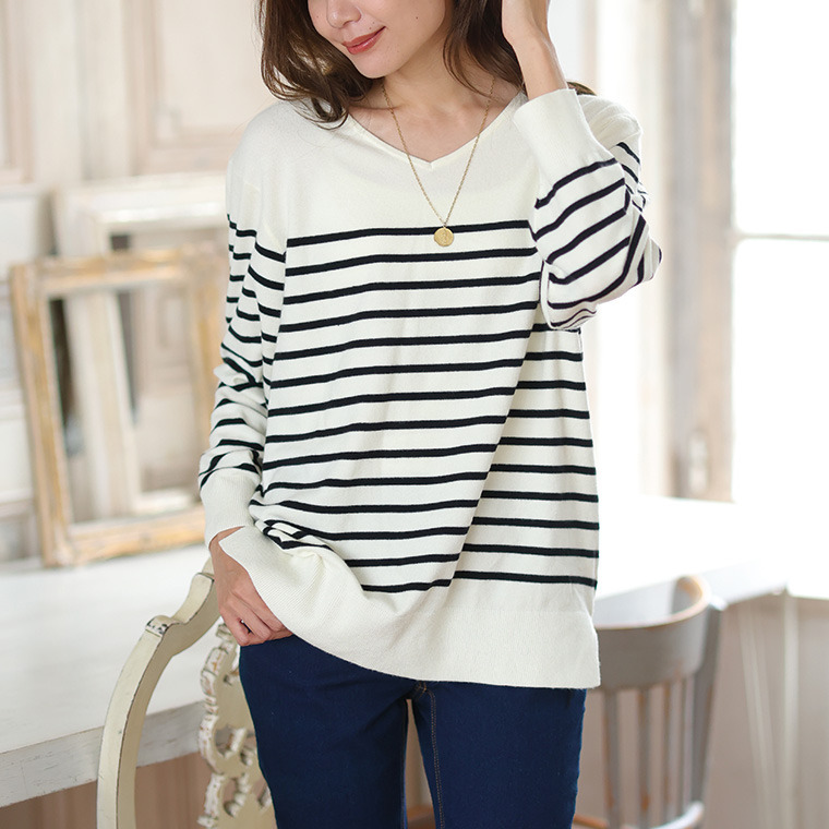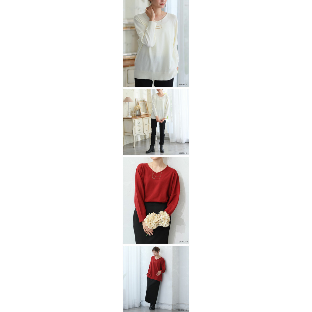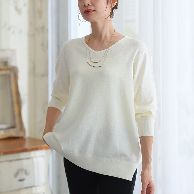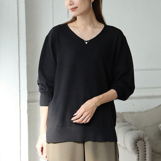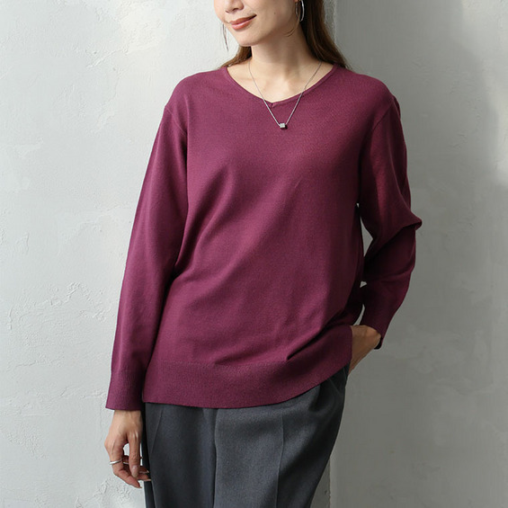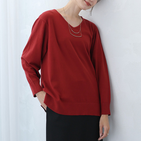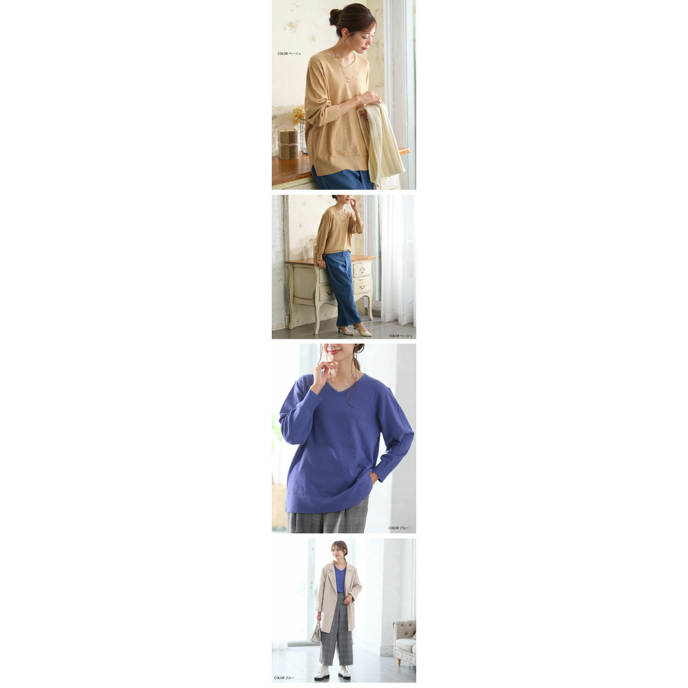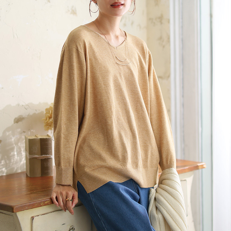 • Rin フィット感軽減! Tシャツ感覚 もっちりやわらか Vネック ニット21