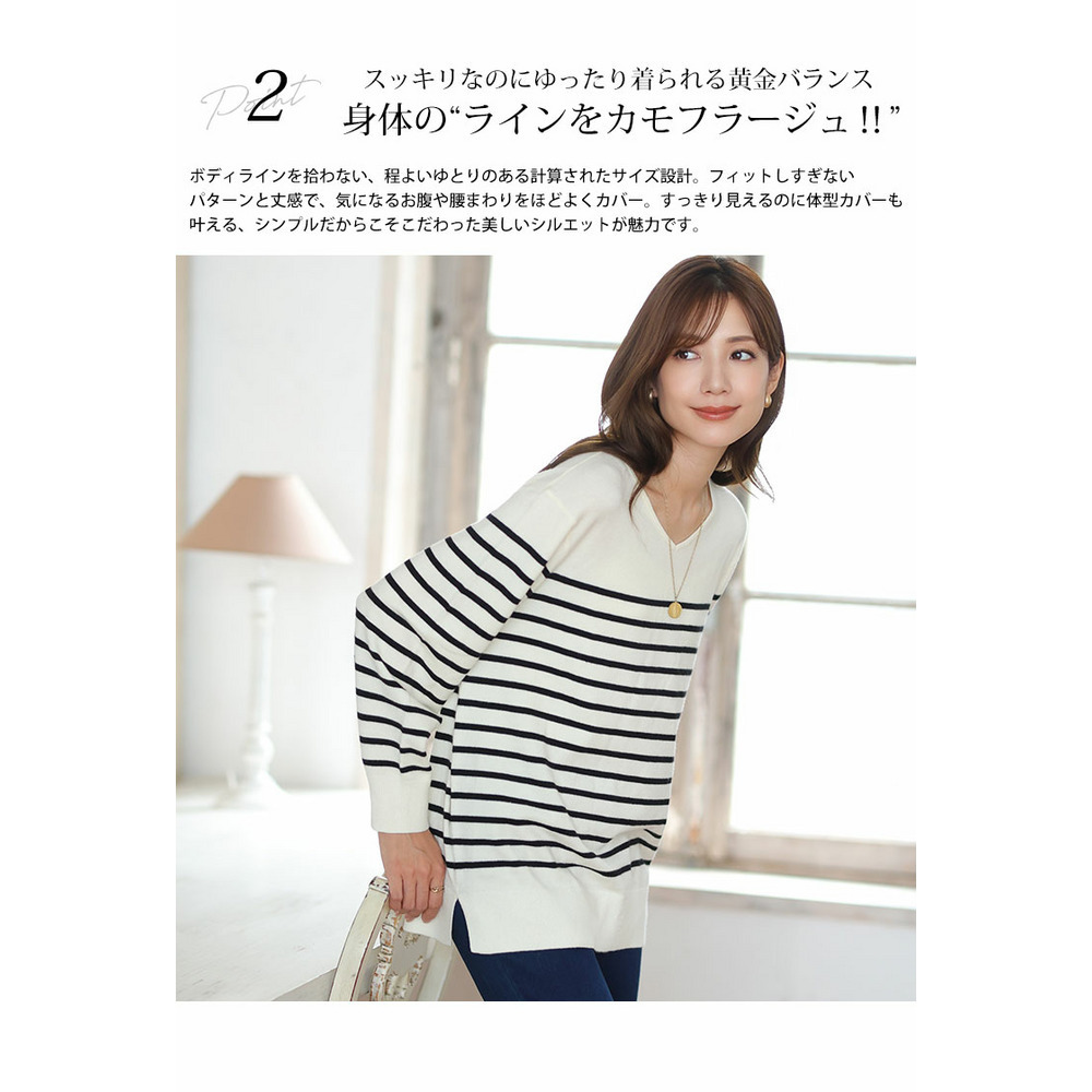 • Rin フィット感軽減! Tシャツ感覚 もっちりやわらか Vネック ニット17