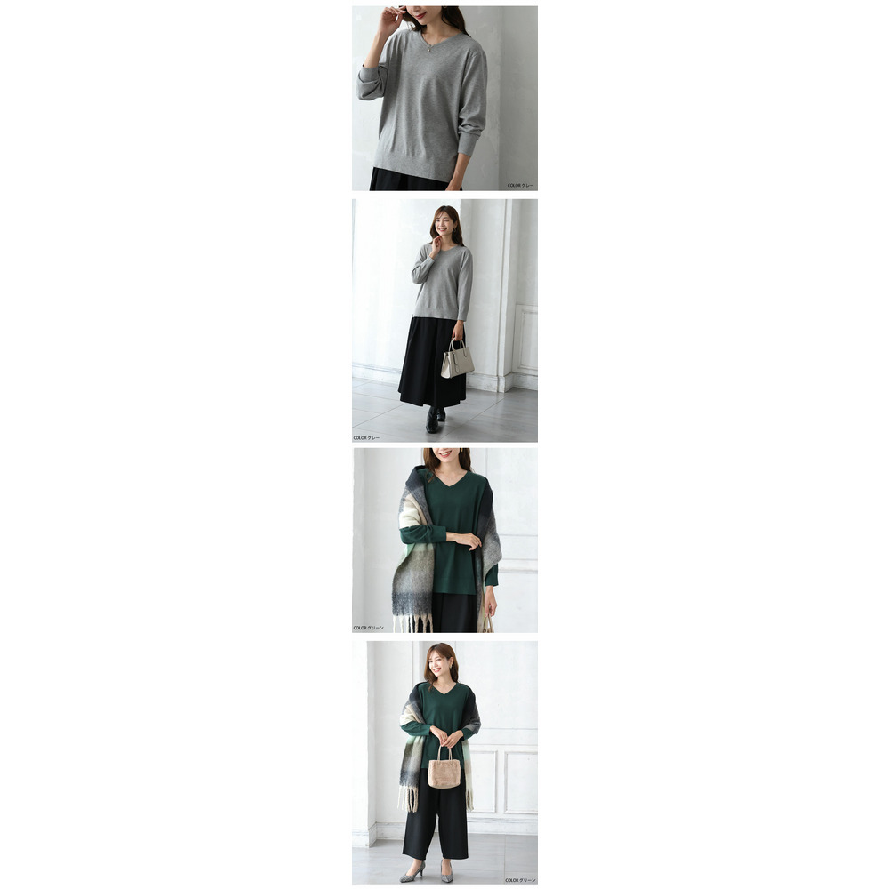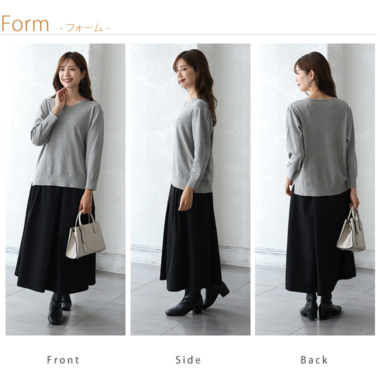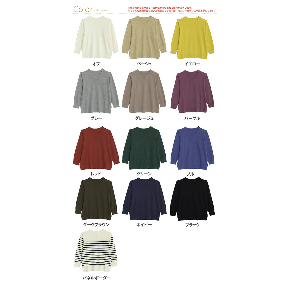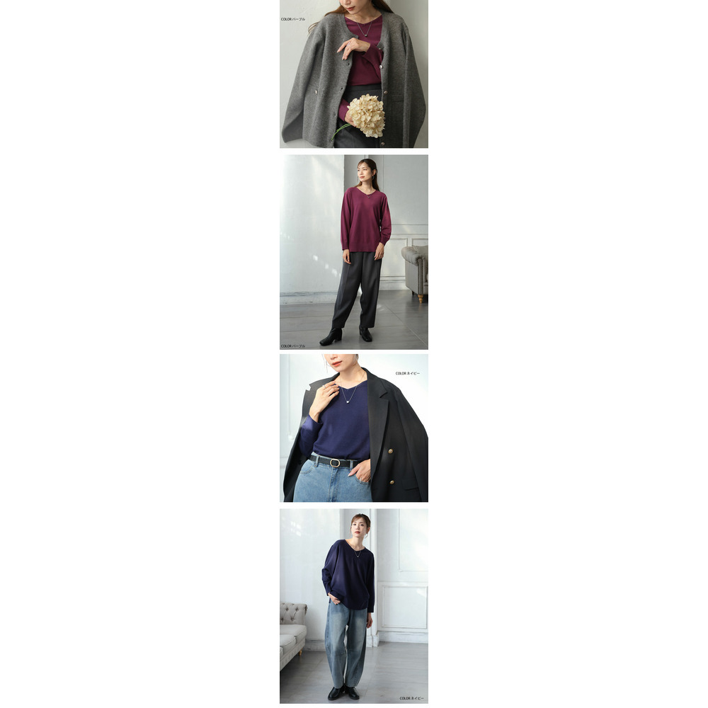 • Rin フィット感軽減! Tシャツ感覚 もっちりやわらか Vネック ニット19