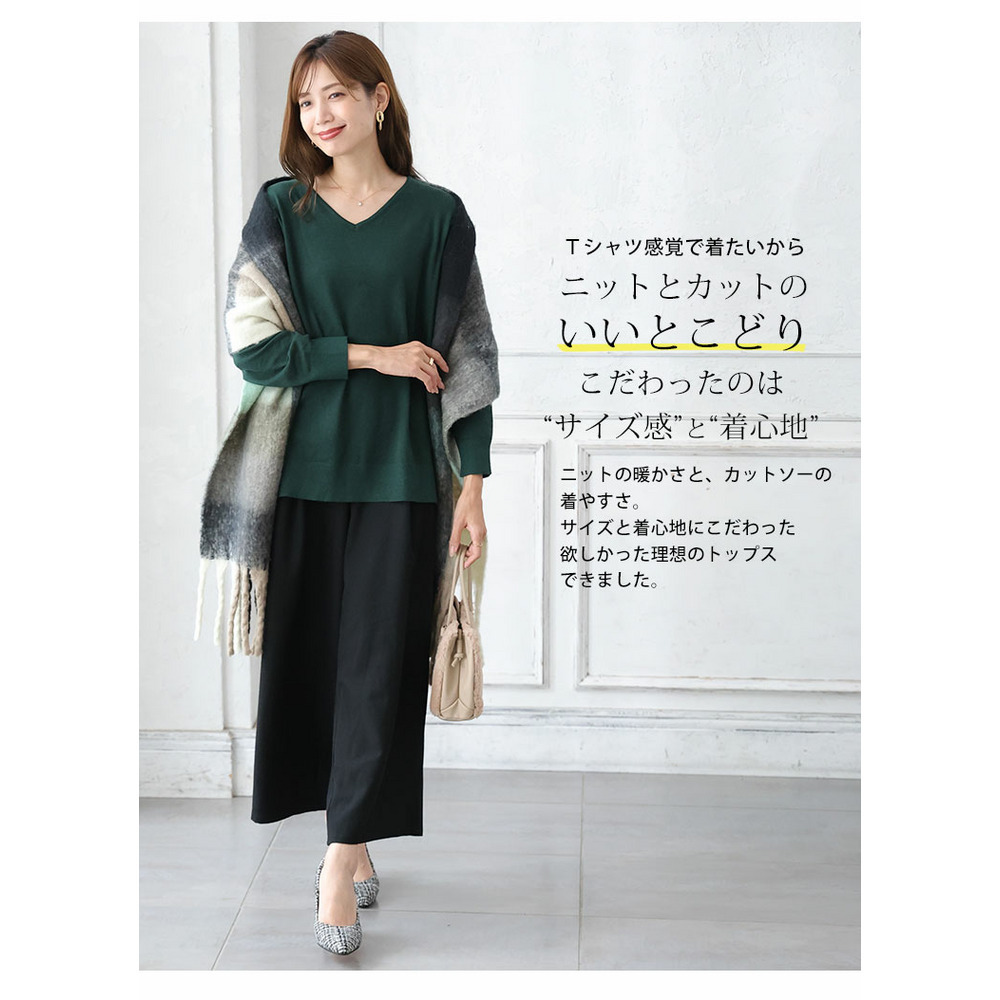 • Rin フィット感軽減! Tシャツ感覚 もっちりやわらか Vネック ニット11