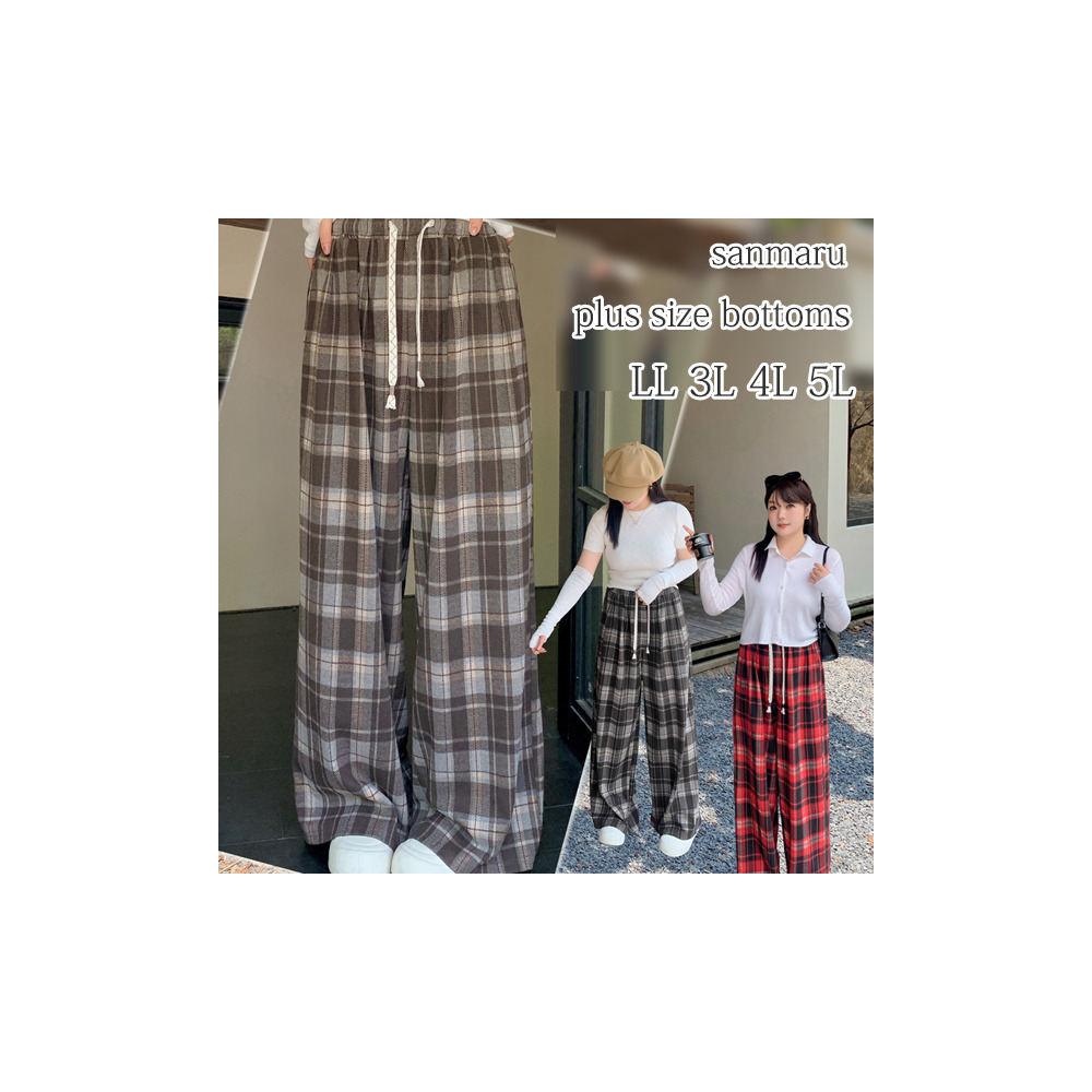 ◆大きいサイズのチェック柄ワイドパンツの紹介