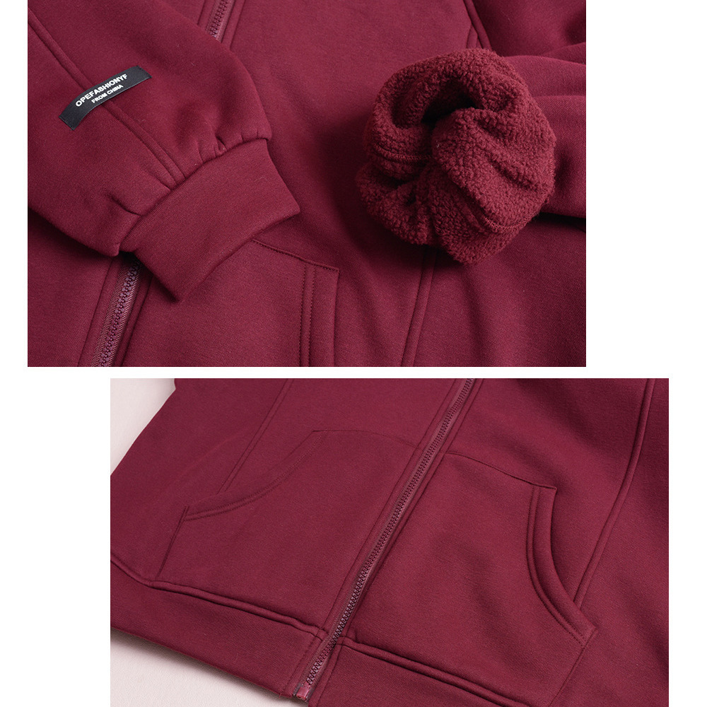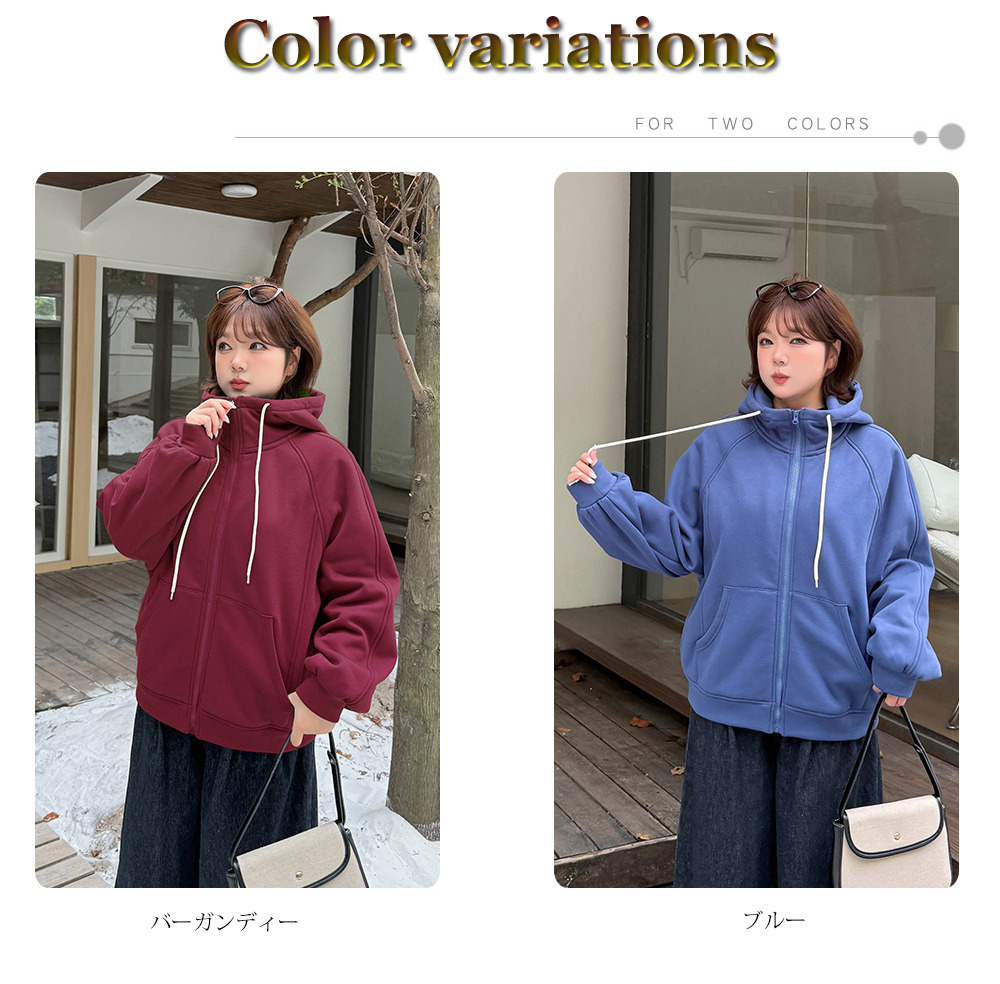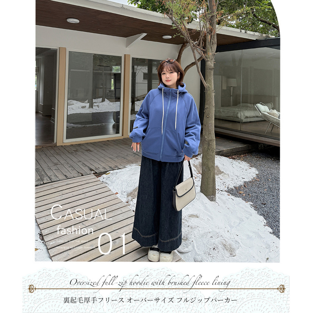 裏ボアの暖かなフルジップアップスウェットパーカー。