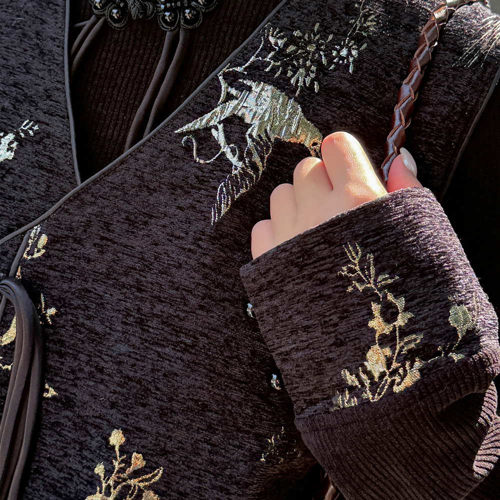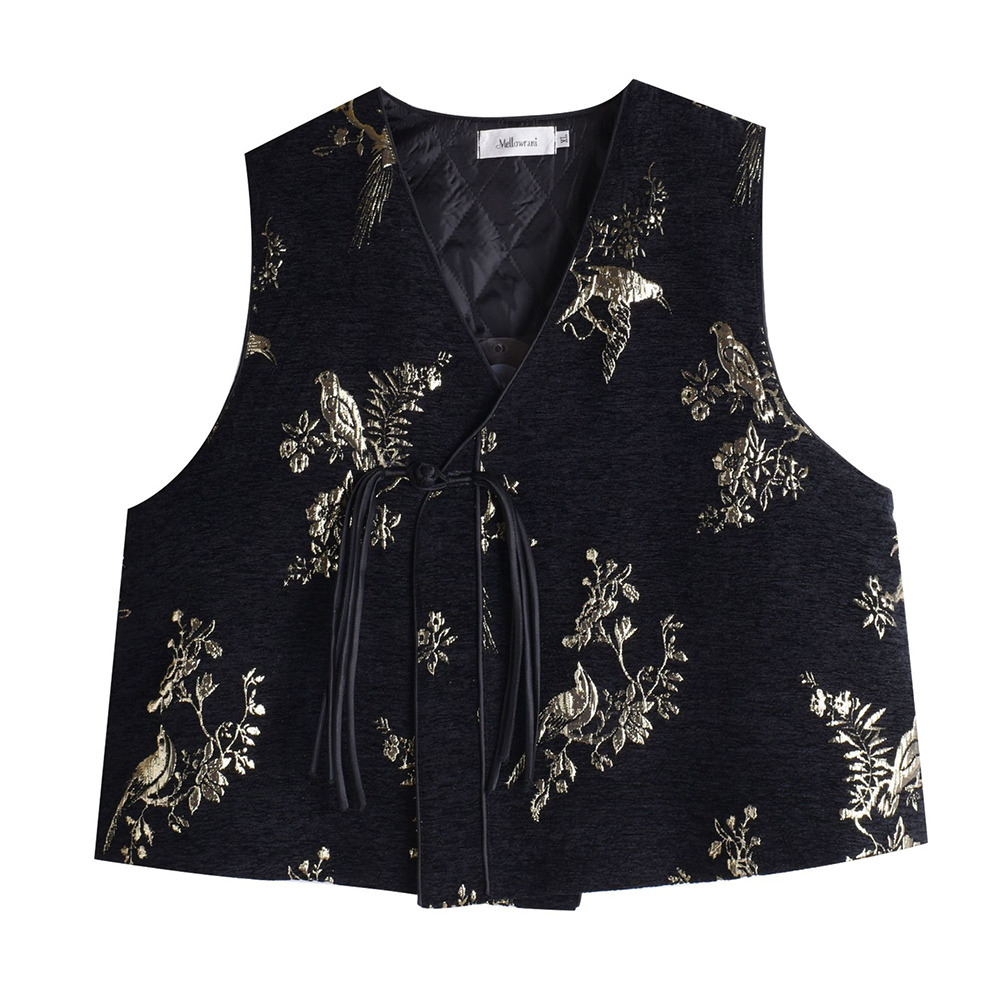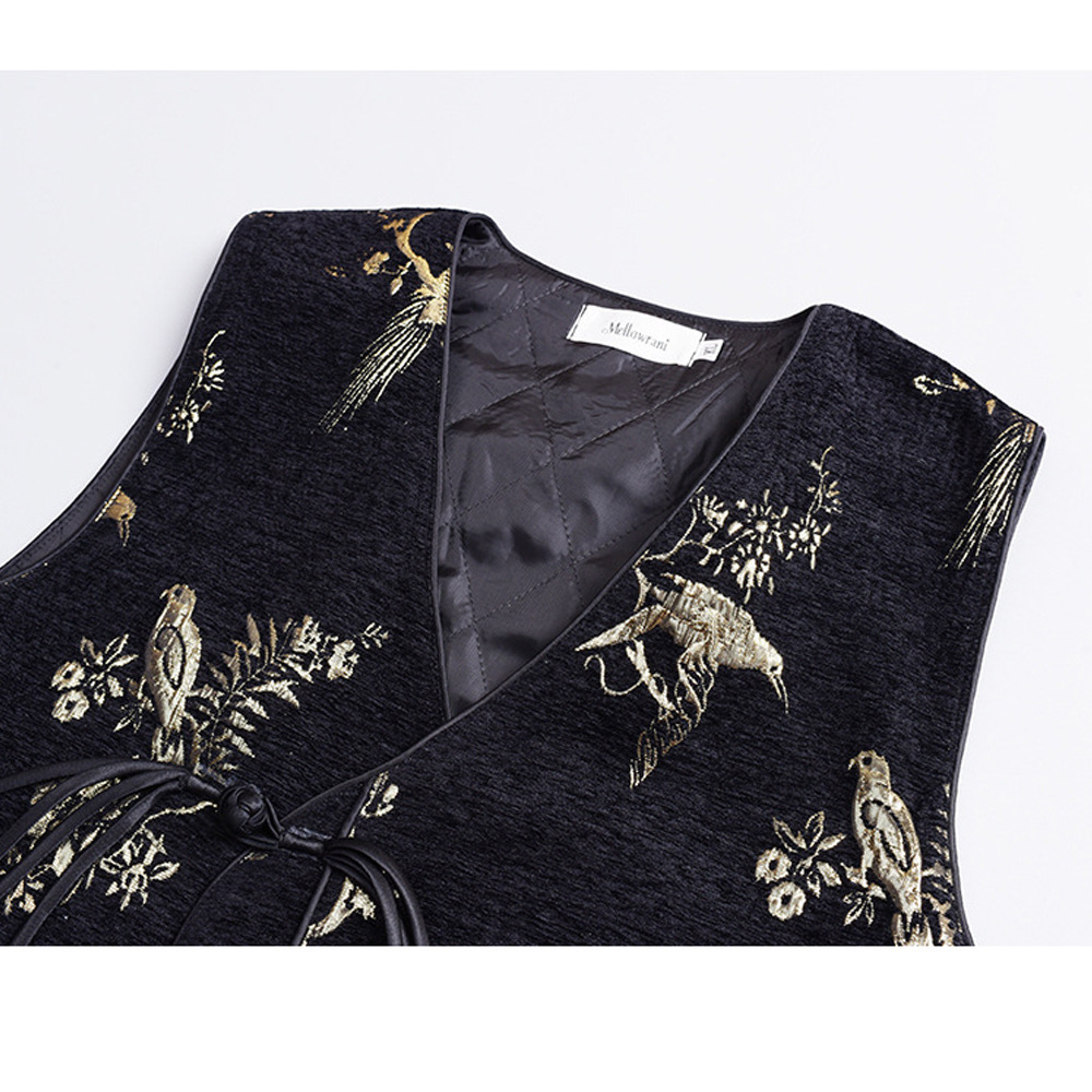 ベストはエスニックテイストの花鳥柄ジャガード織り!