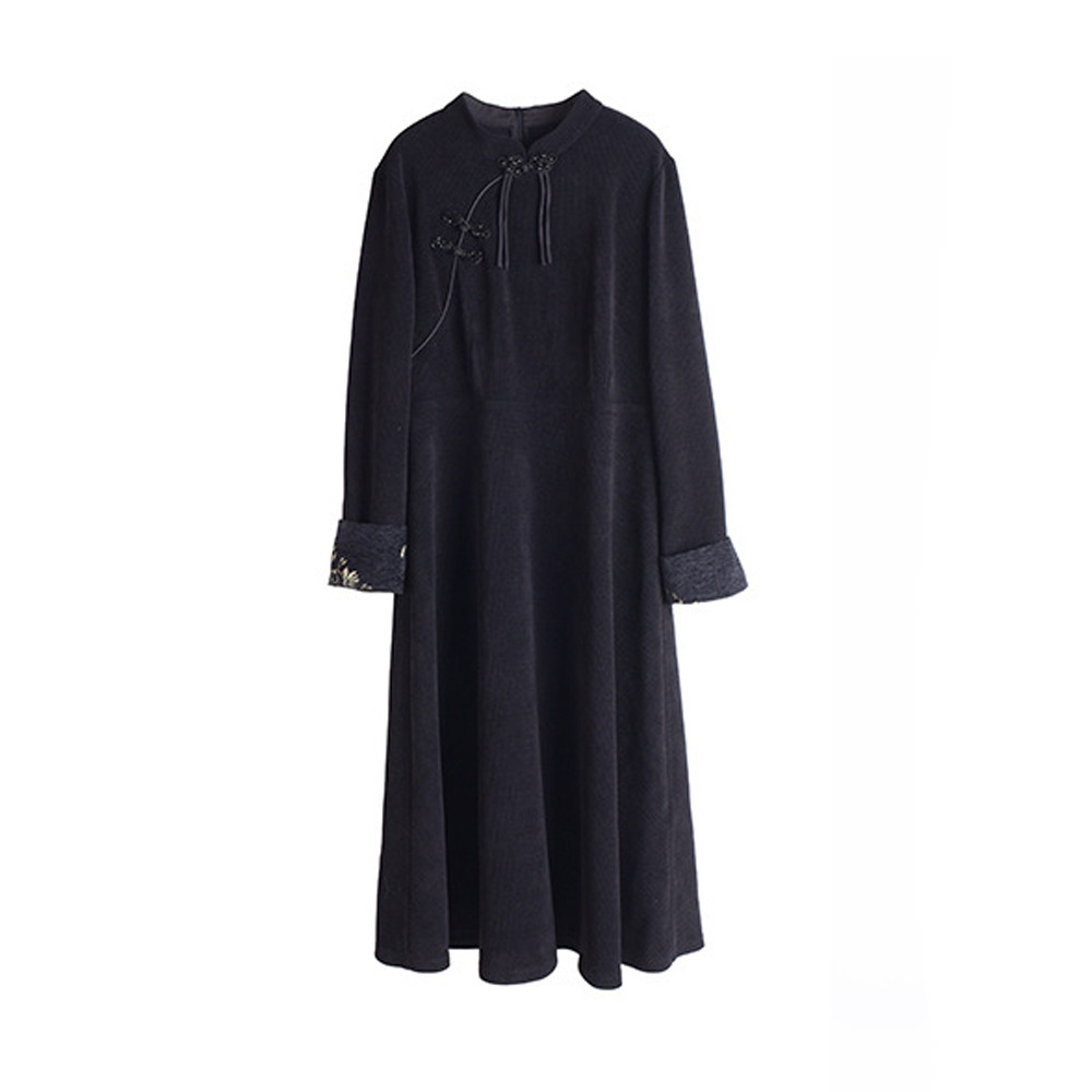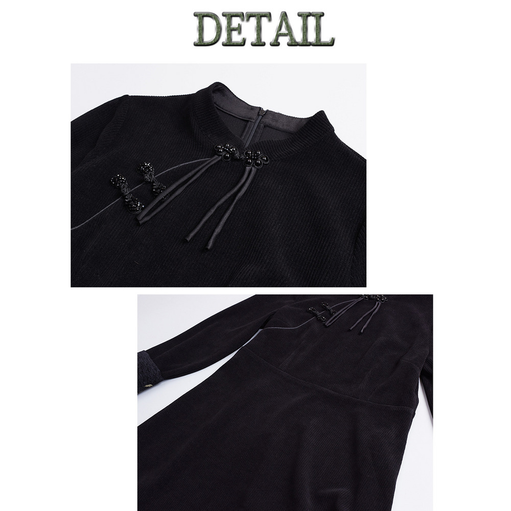 ワンピースはチャイナカラーで斜めの前たてにフロッグボタン。
