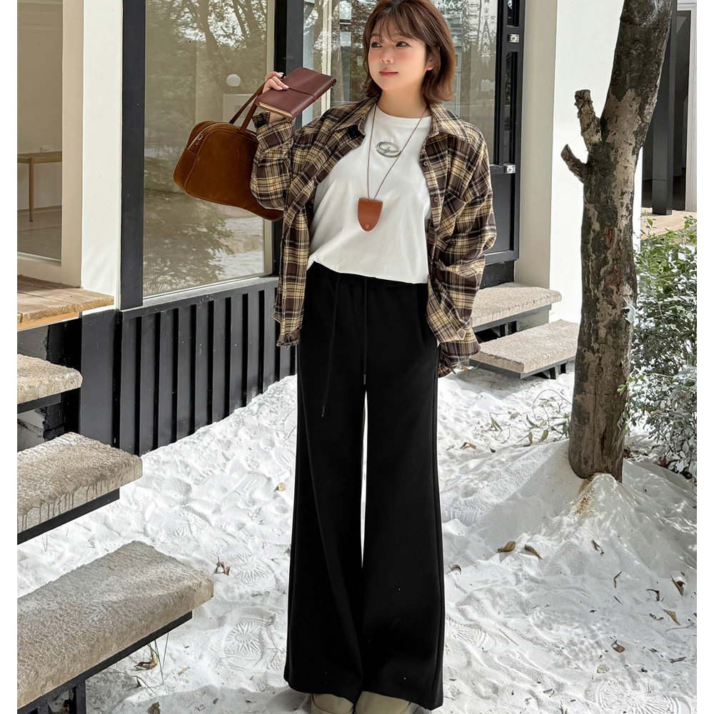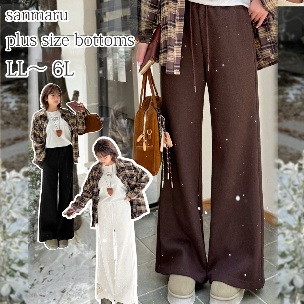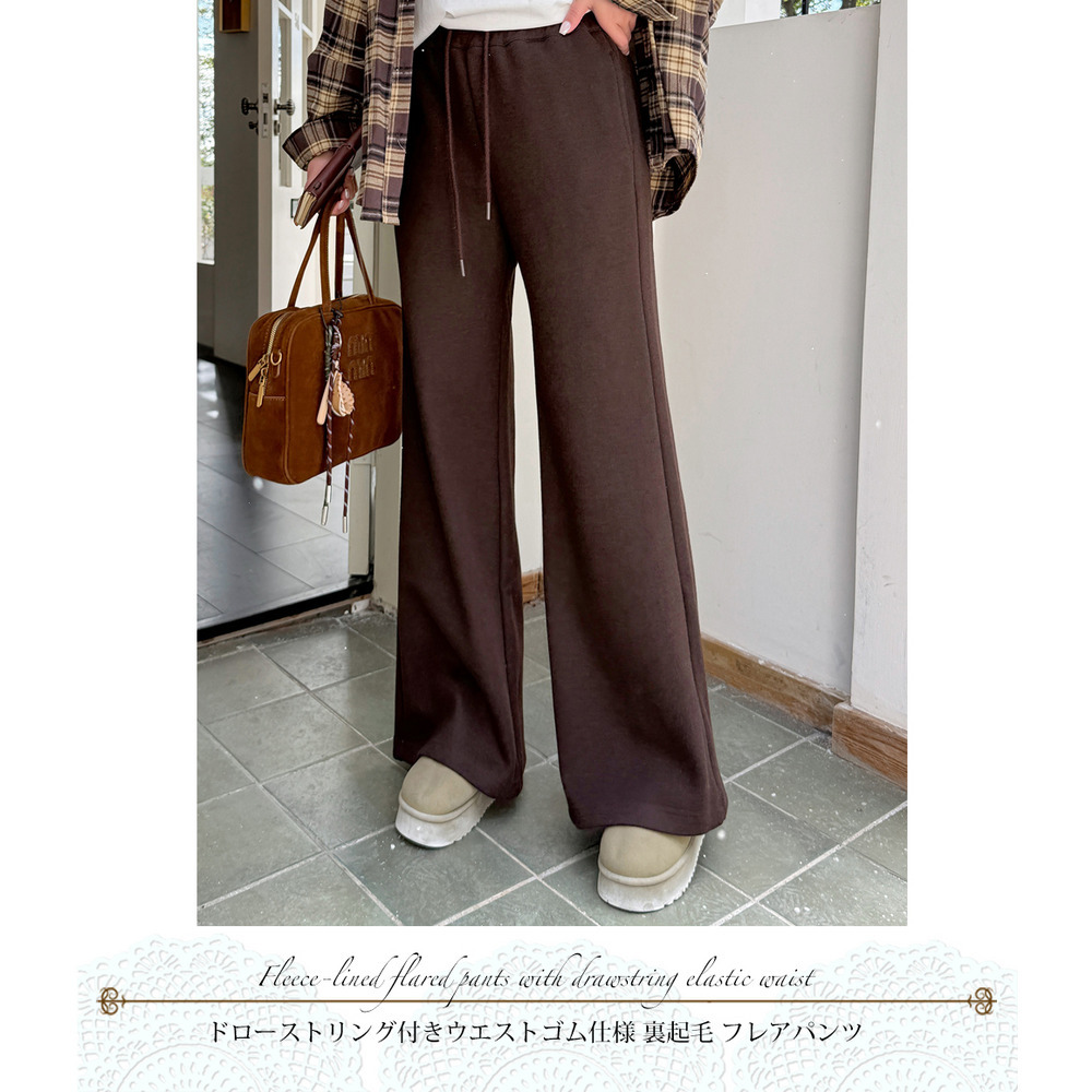 長さ6m違いの2タイプ 裏起毛のウエストゴム フレアパンツ