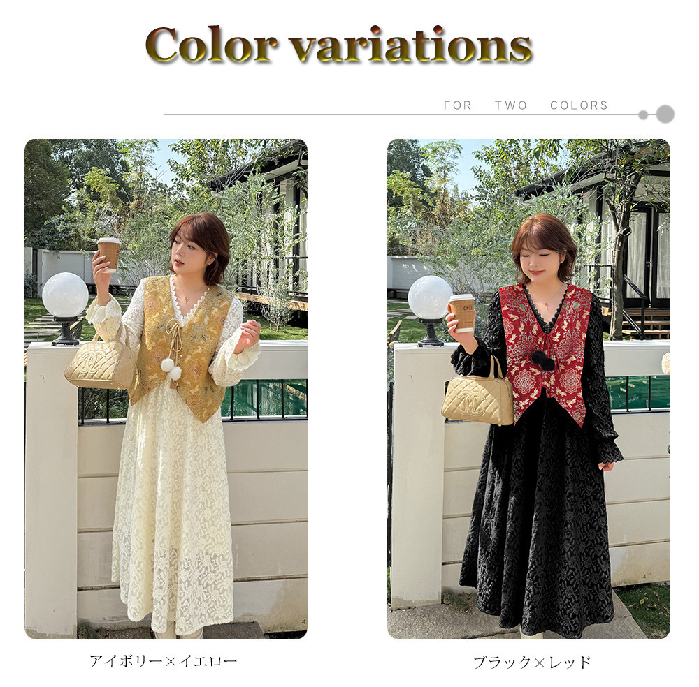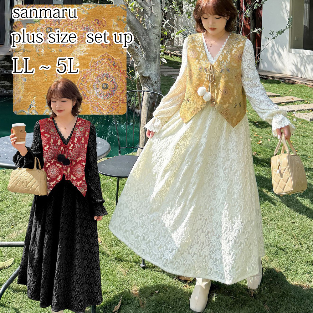 ◆大きいサイズのワンピースとベストのセットアップの詳細