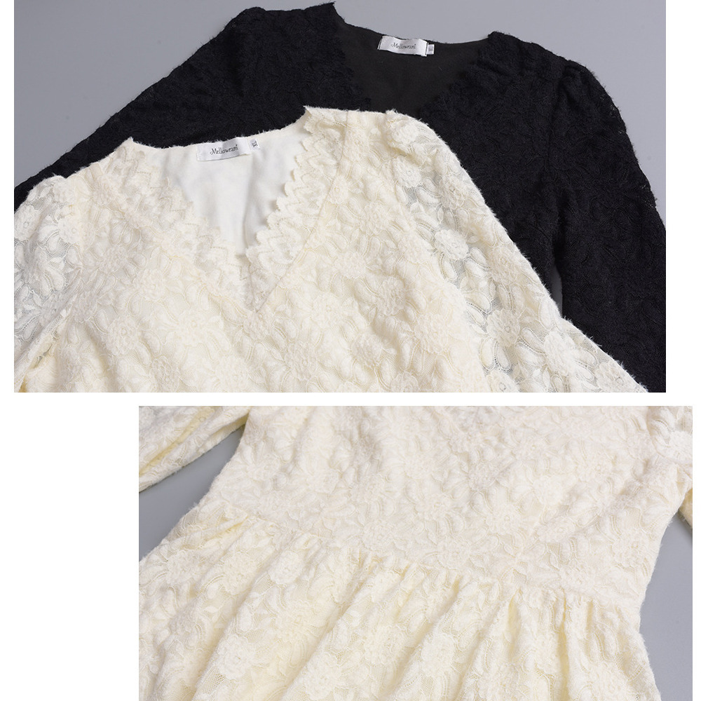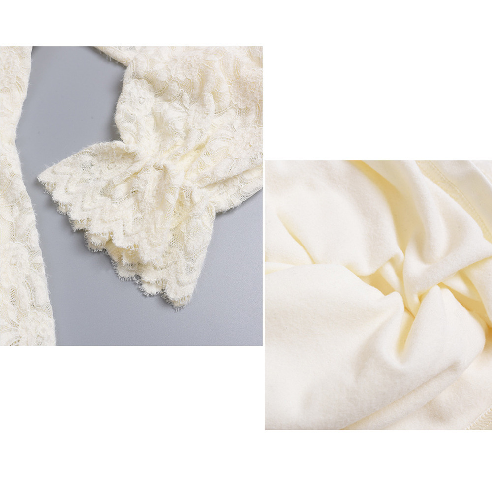 ワンピースは起毛レースで袖以外に薄手のフリース裏地付き。