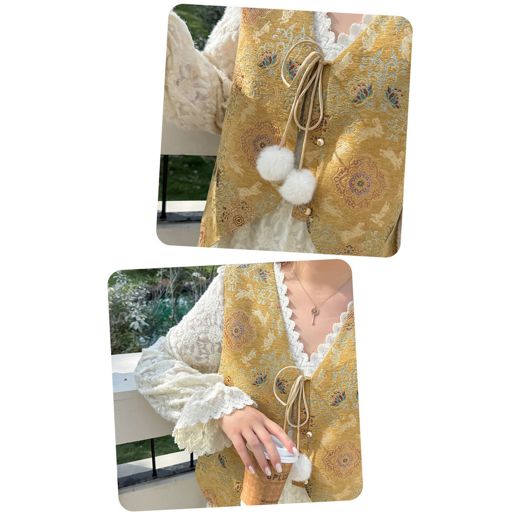 ベストはオリエンタルテイストの古典柄ジャガード織り。