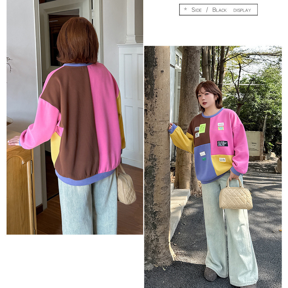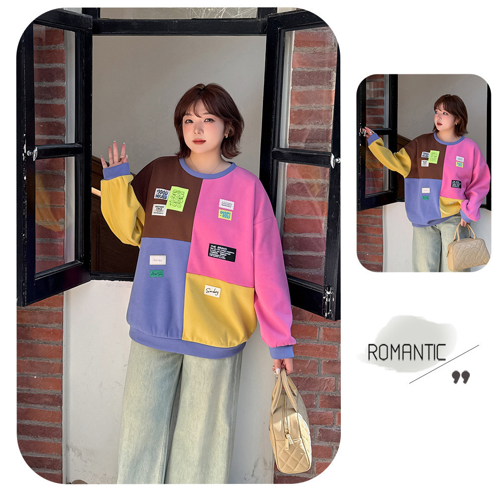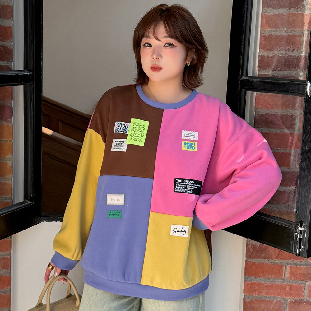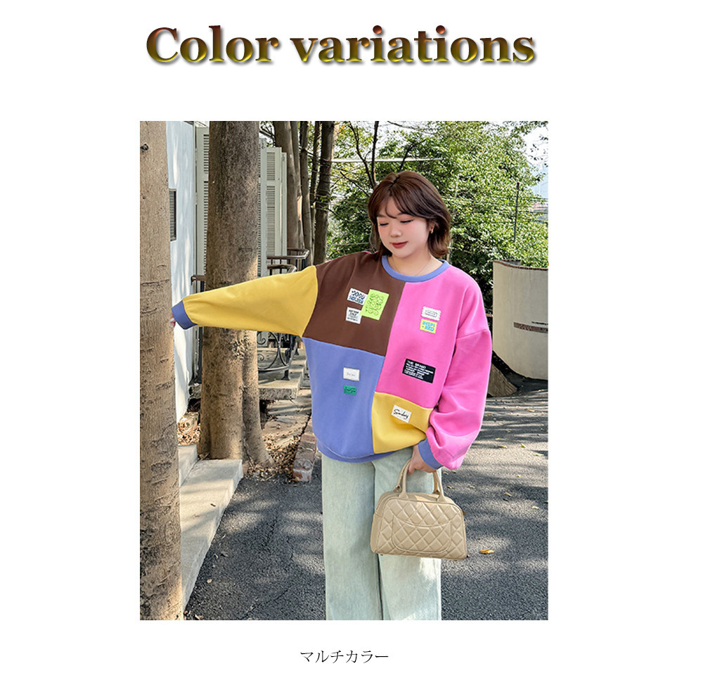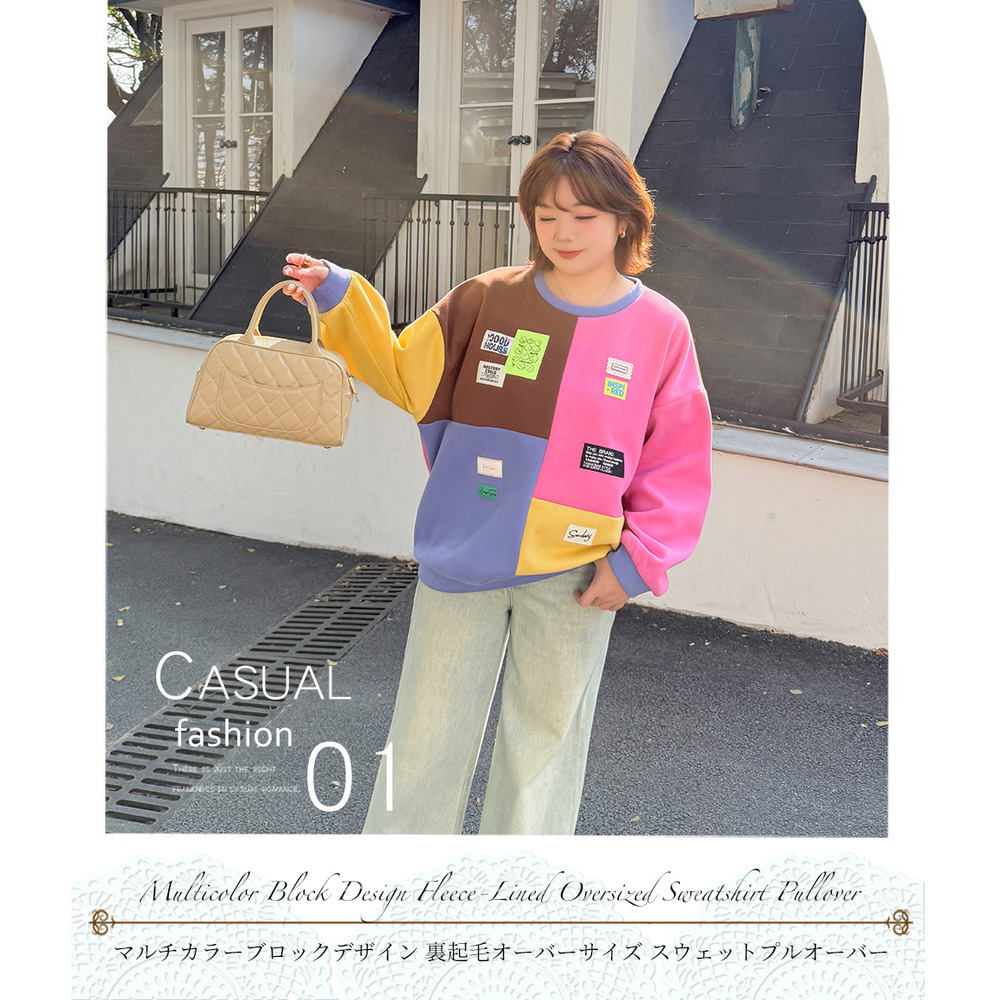 カラフルカラーのブロックデザイン 大人可愛い裏起毛トップス