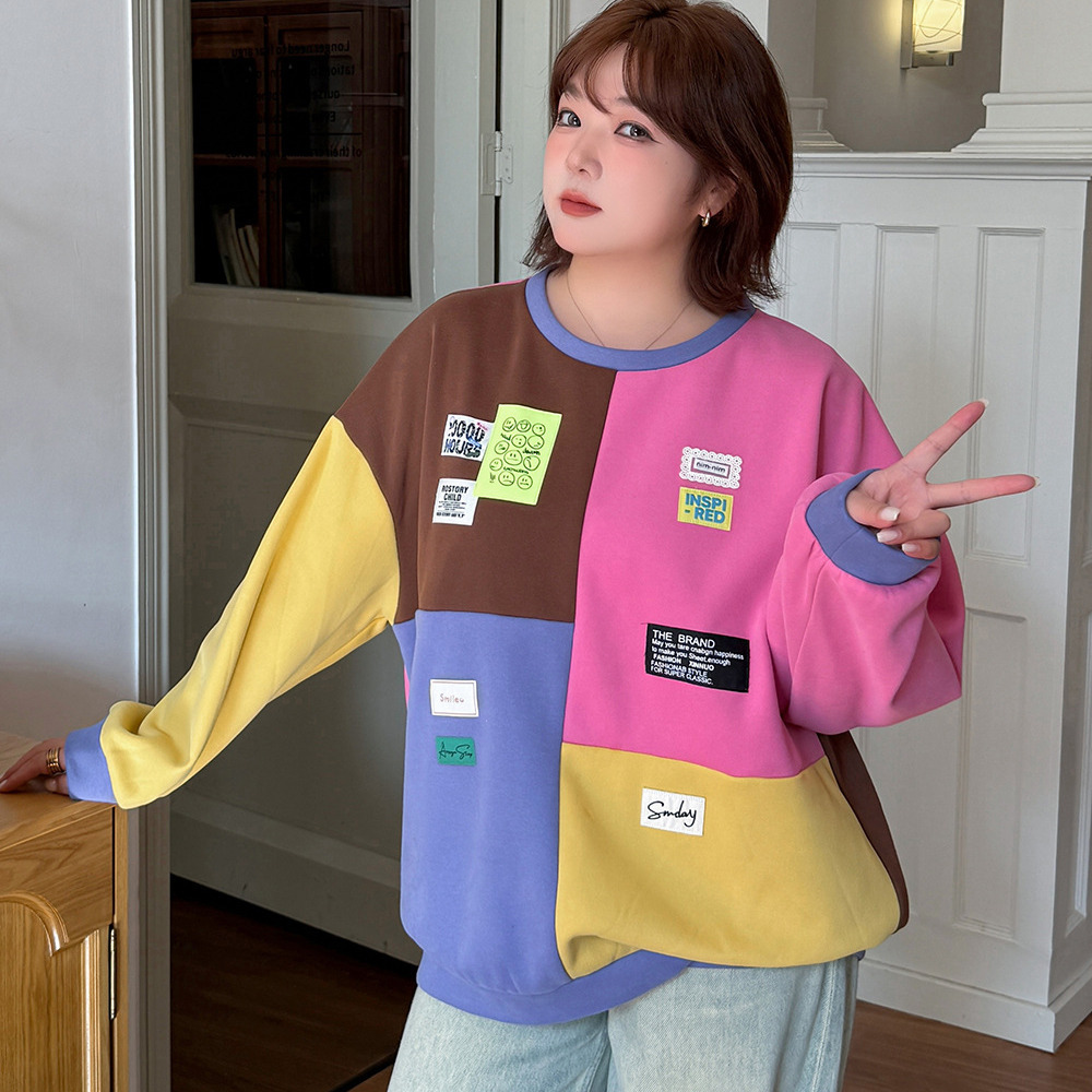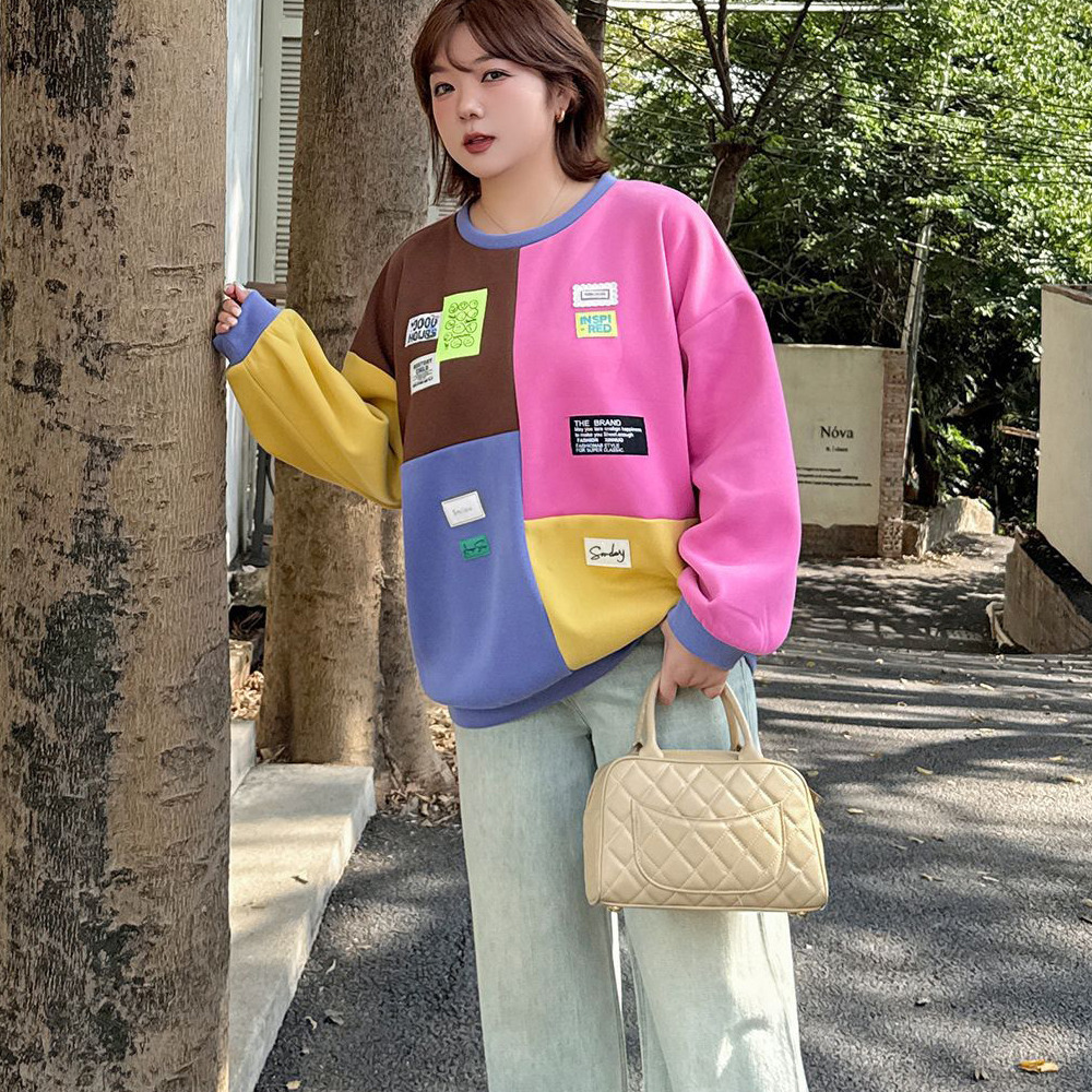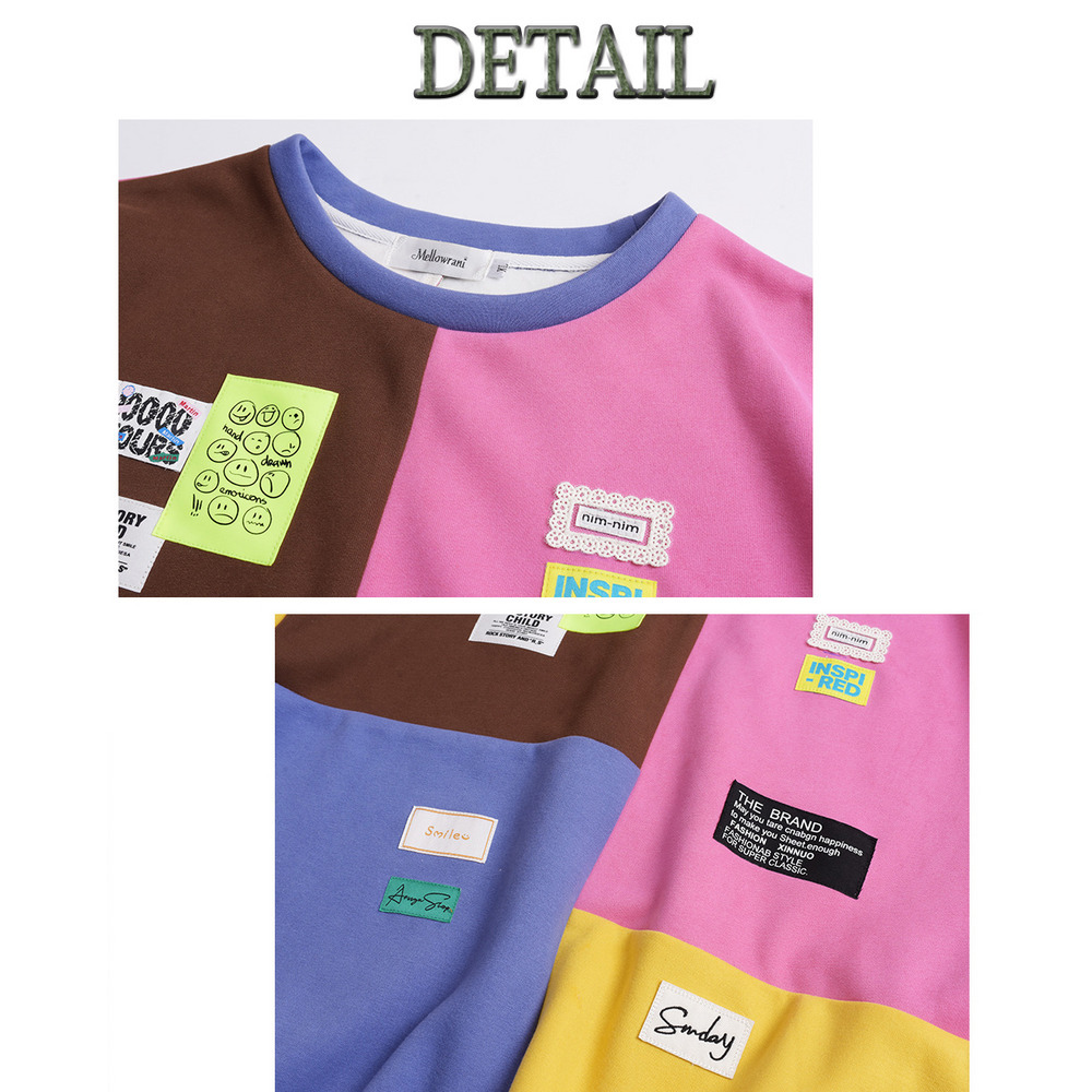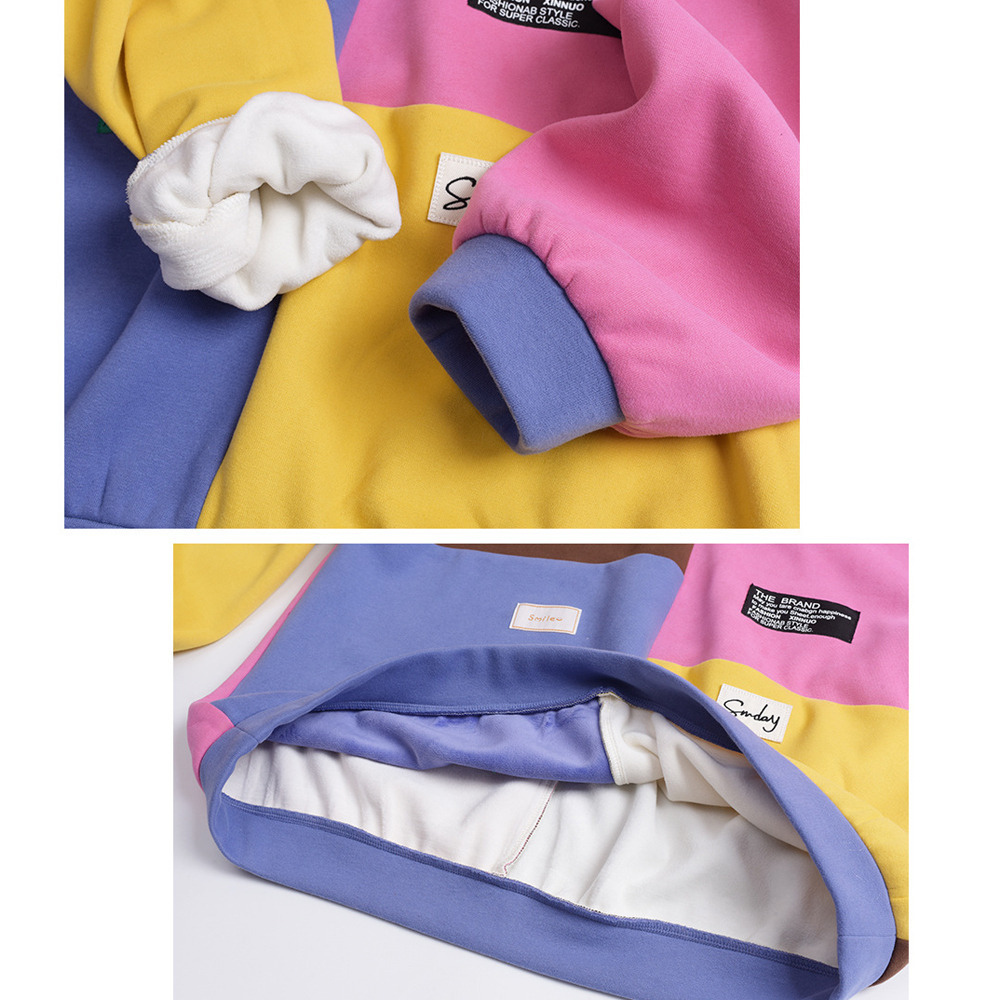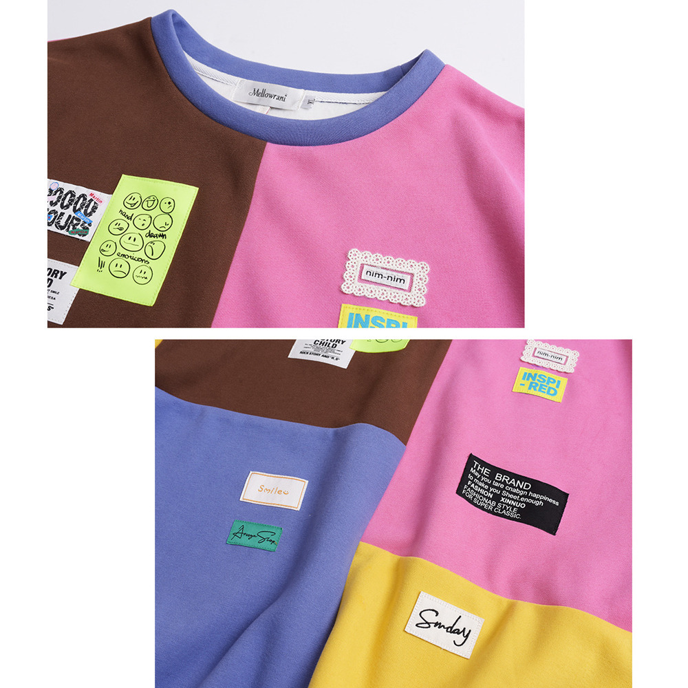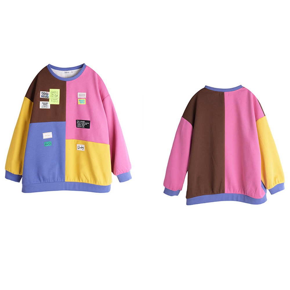 カラフルカラーのブロックデザイン 大人可愛い裏起毛トップス
