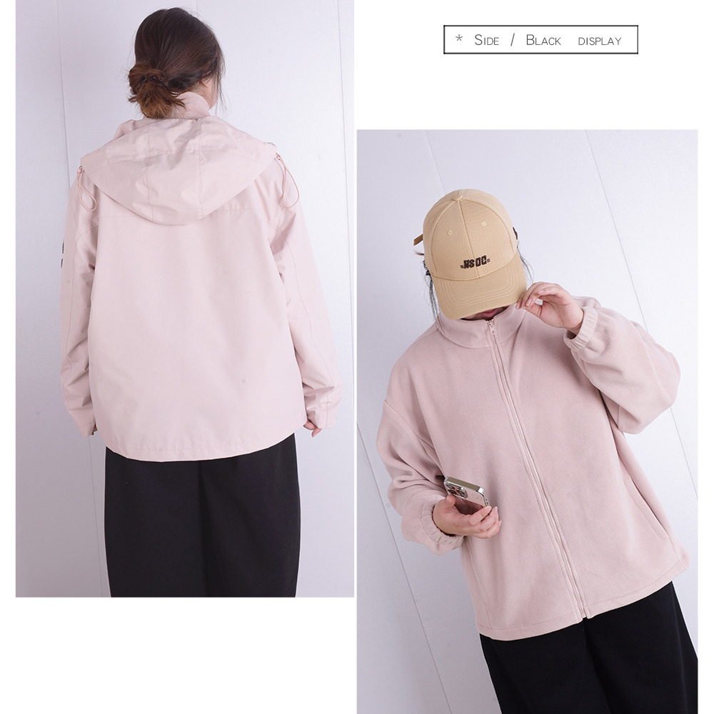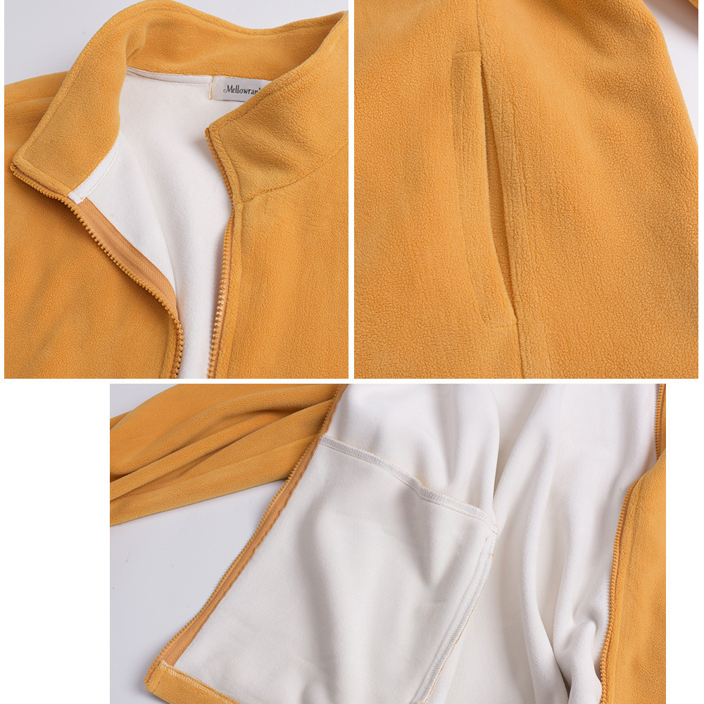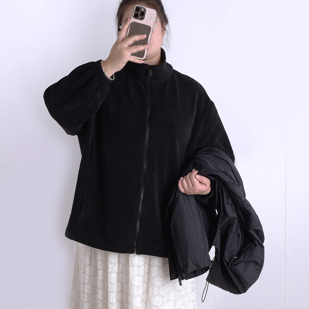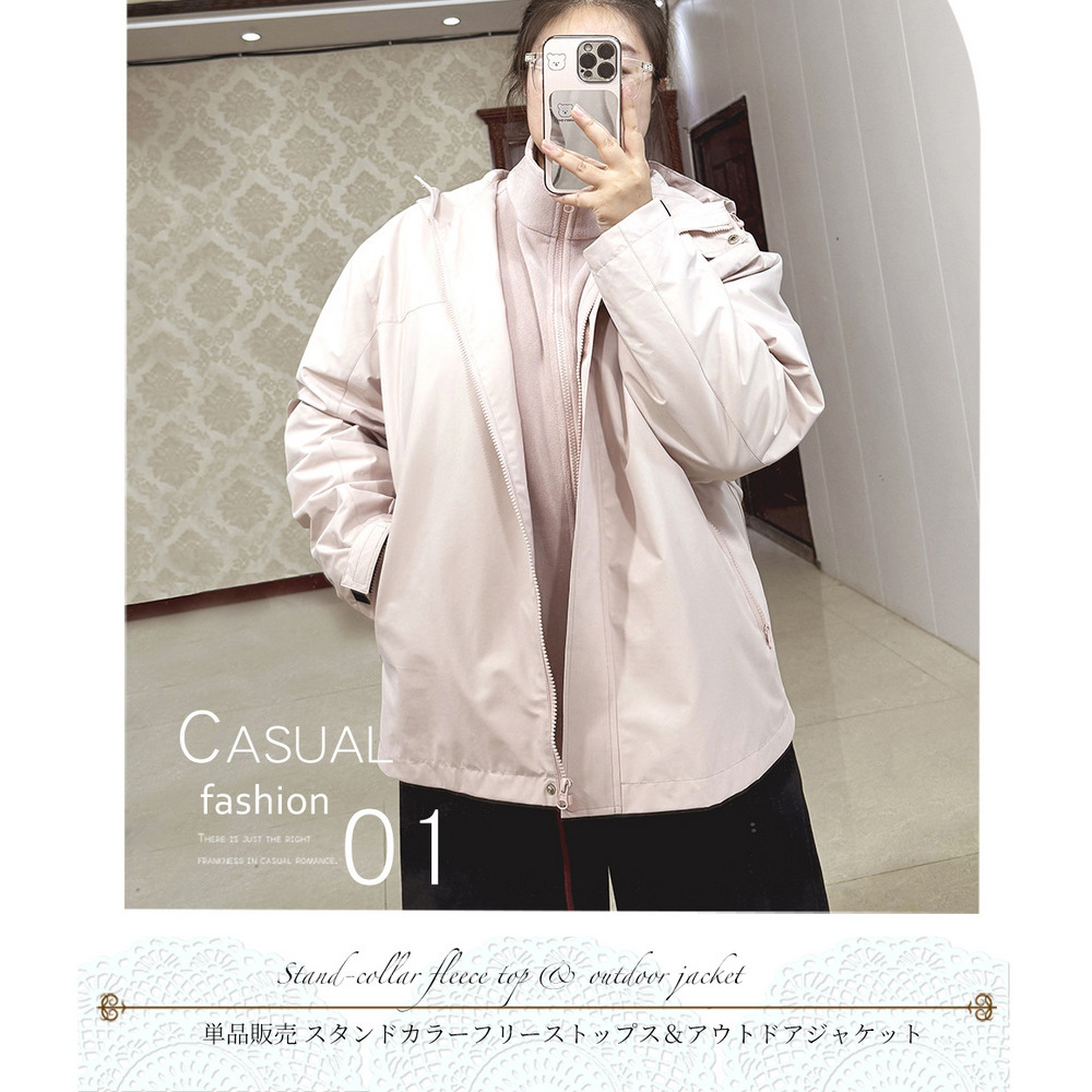 インナーはスタンドカラーのジップアップ裏起毛フリース。