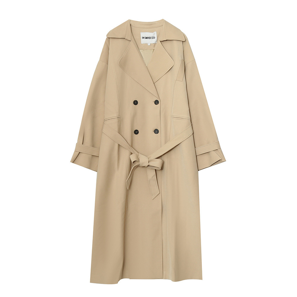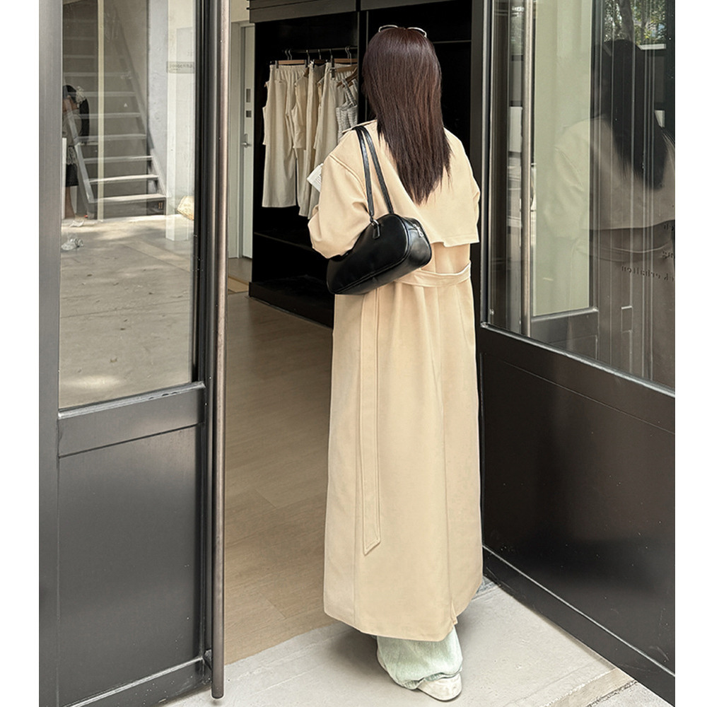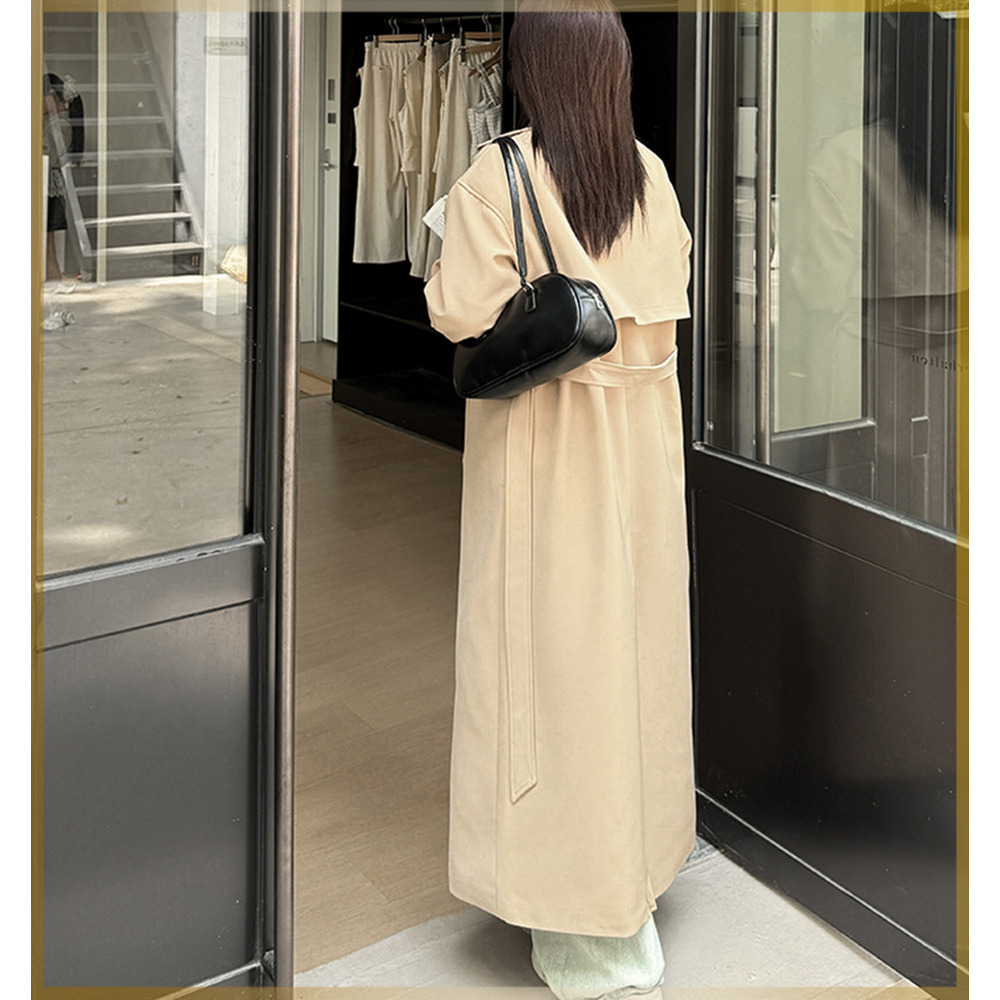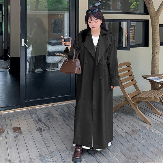 ゆったりなのにスッキリ見え ダブルブレスト ロング丈トレンチコート