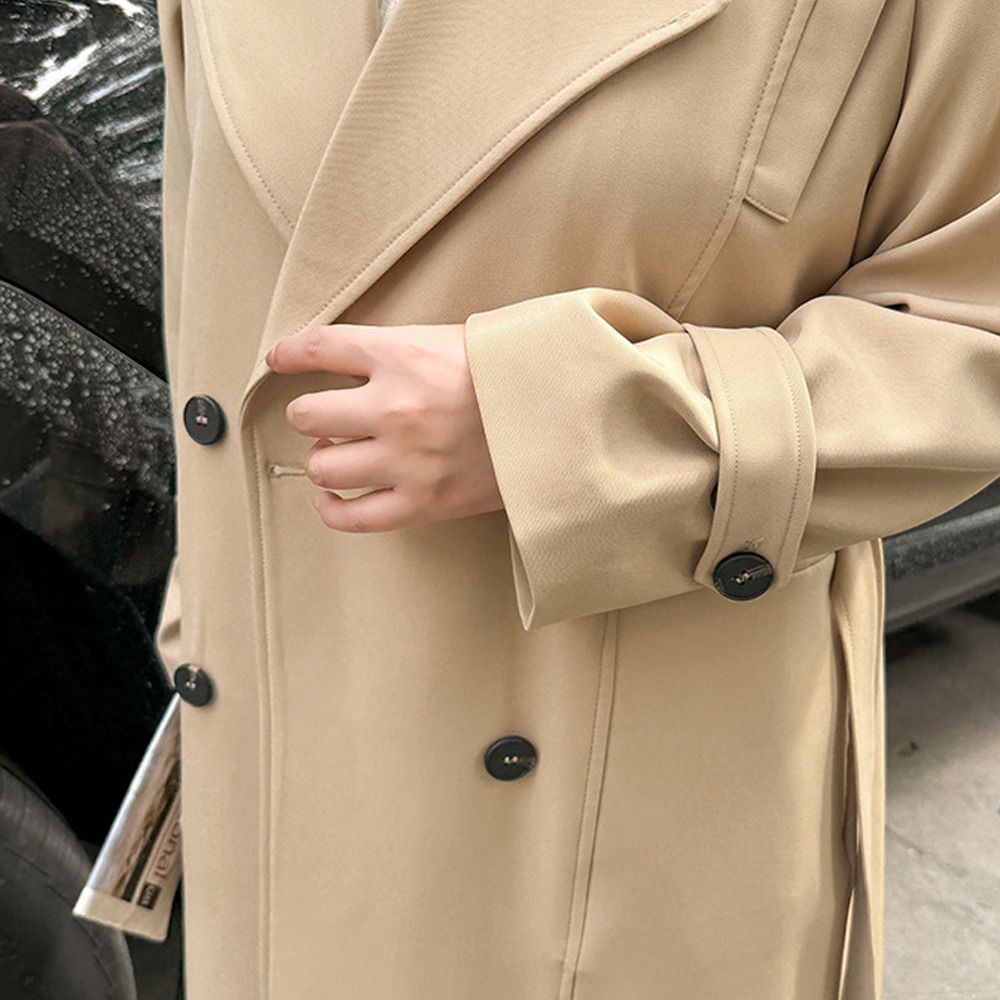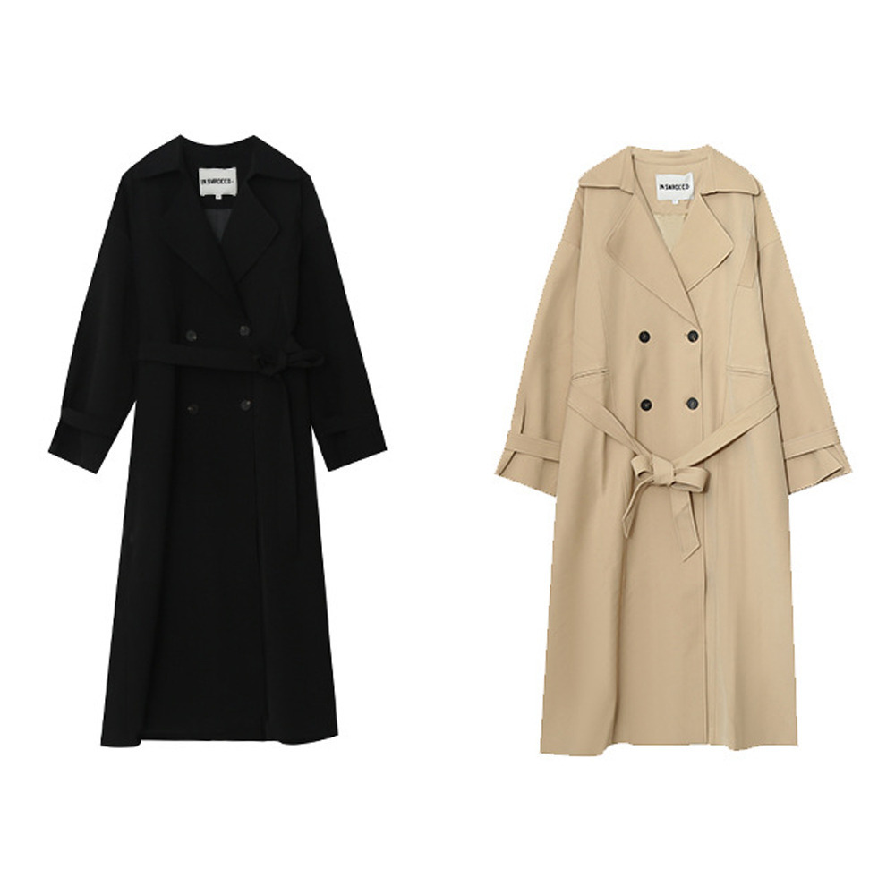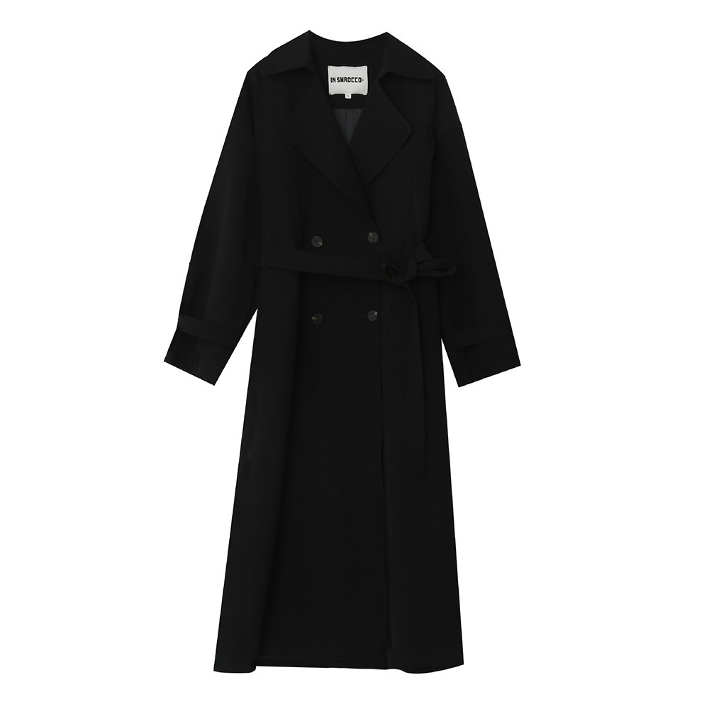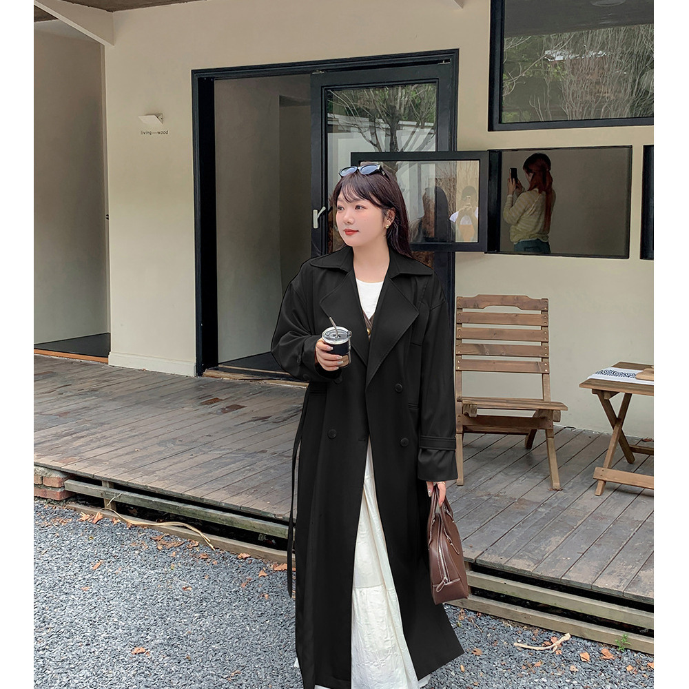 ゆったりなのにスッキリ見え ダブルブレスト ロング丈トレンチコート