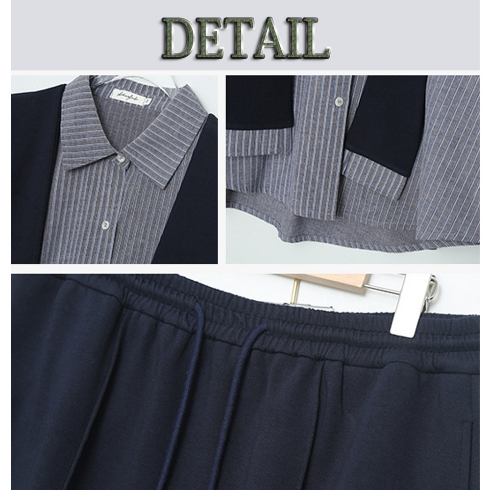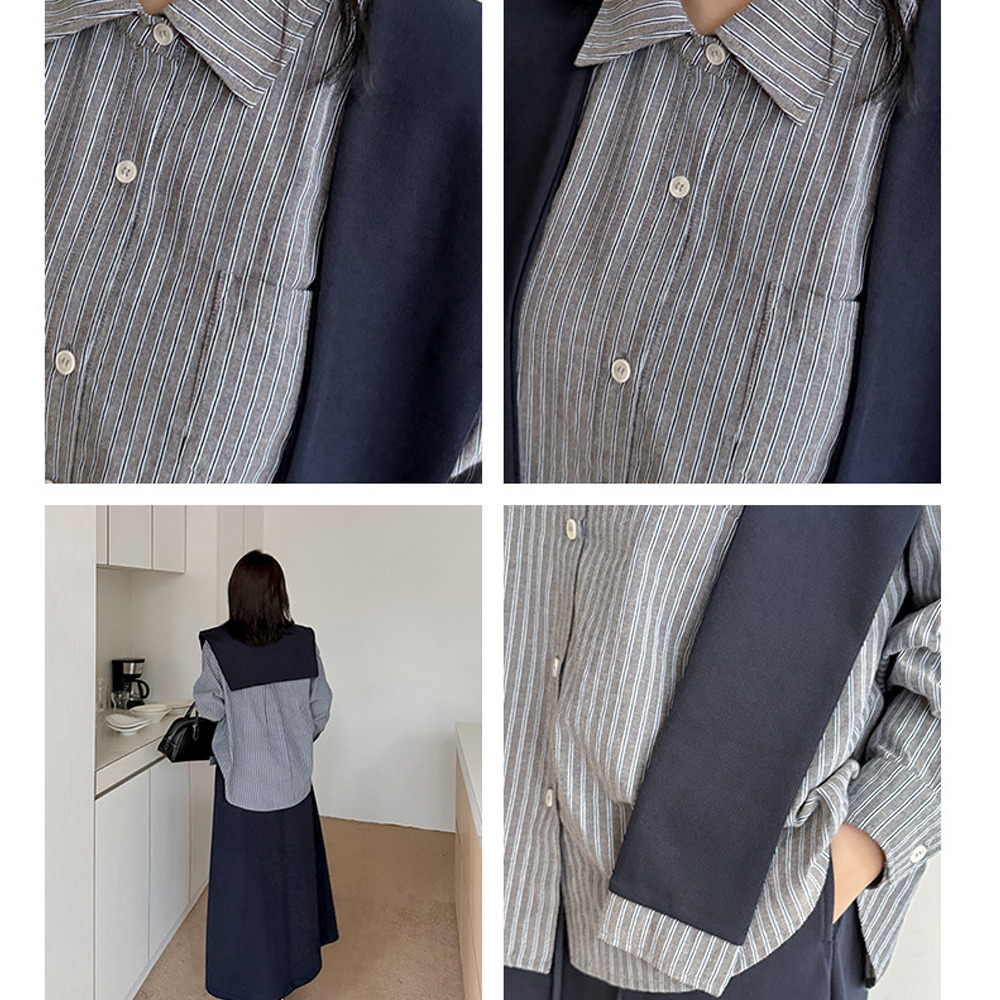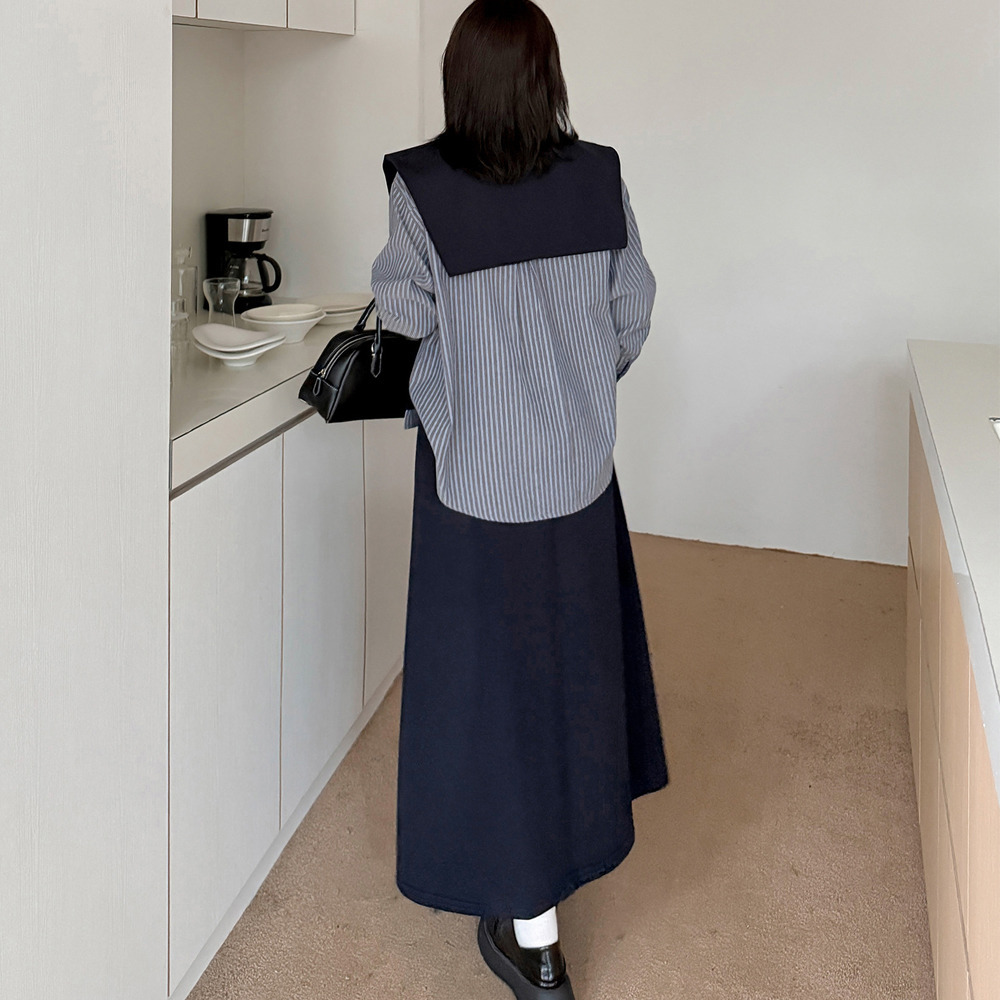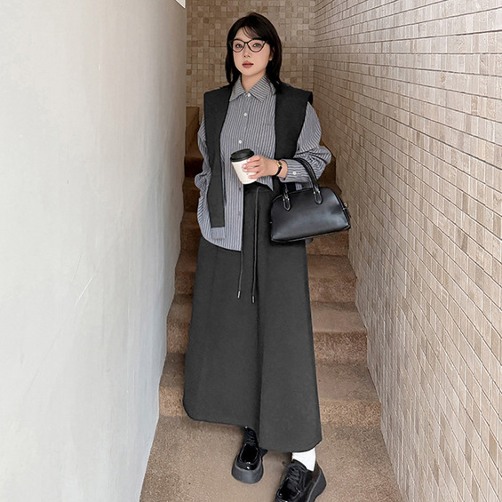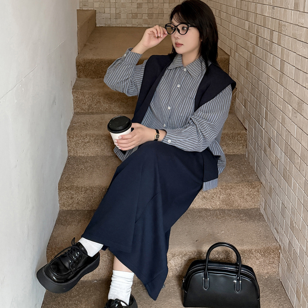 「ショール付きストライうシャツ+Aラインスカートセットアップ」