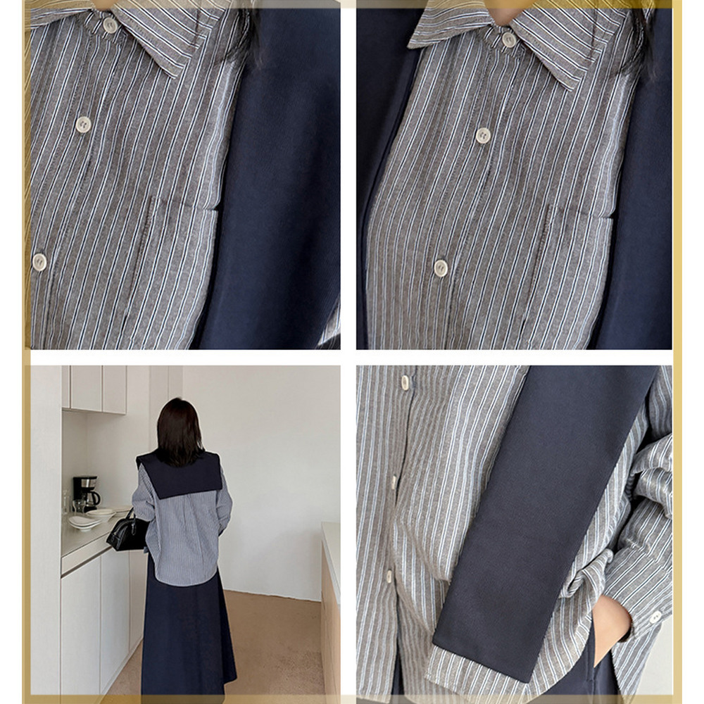 ストライプ柄のオーソドックスなオーバーサイズシャツと、