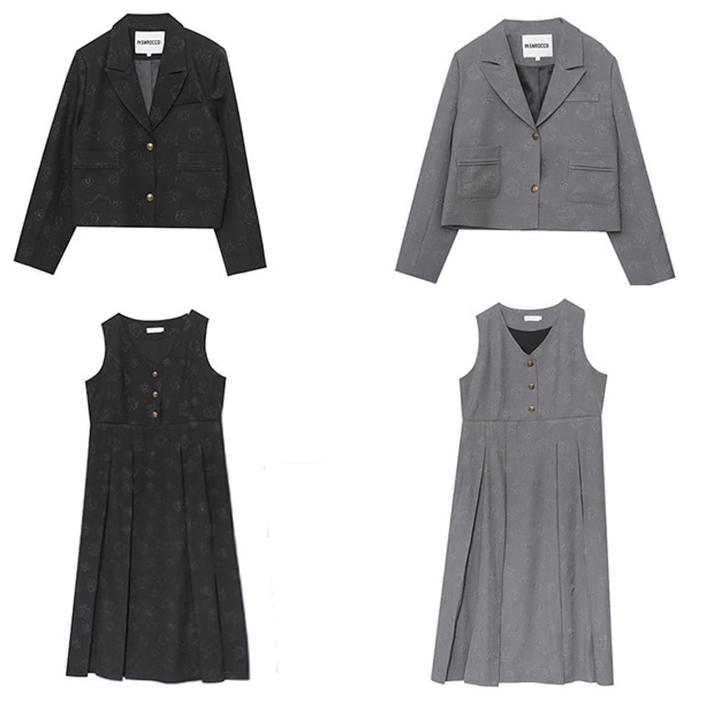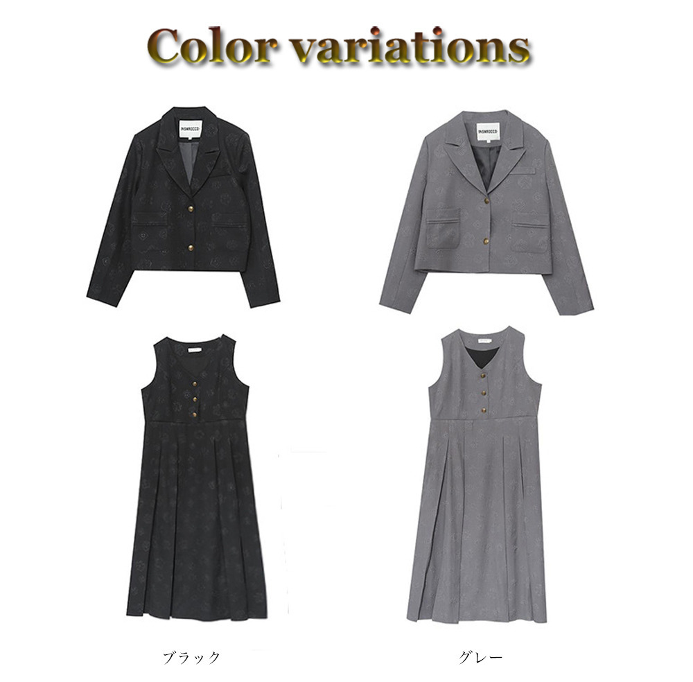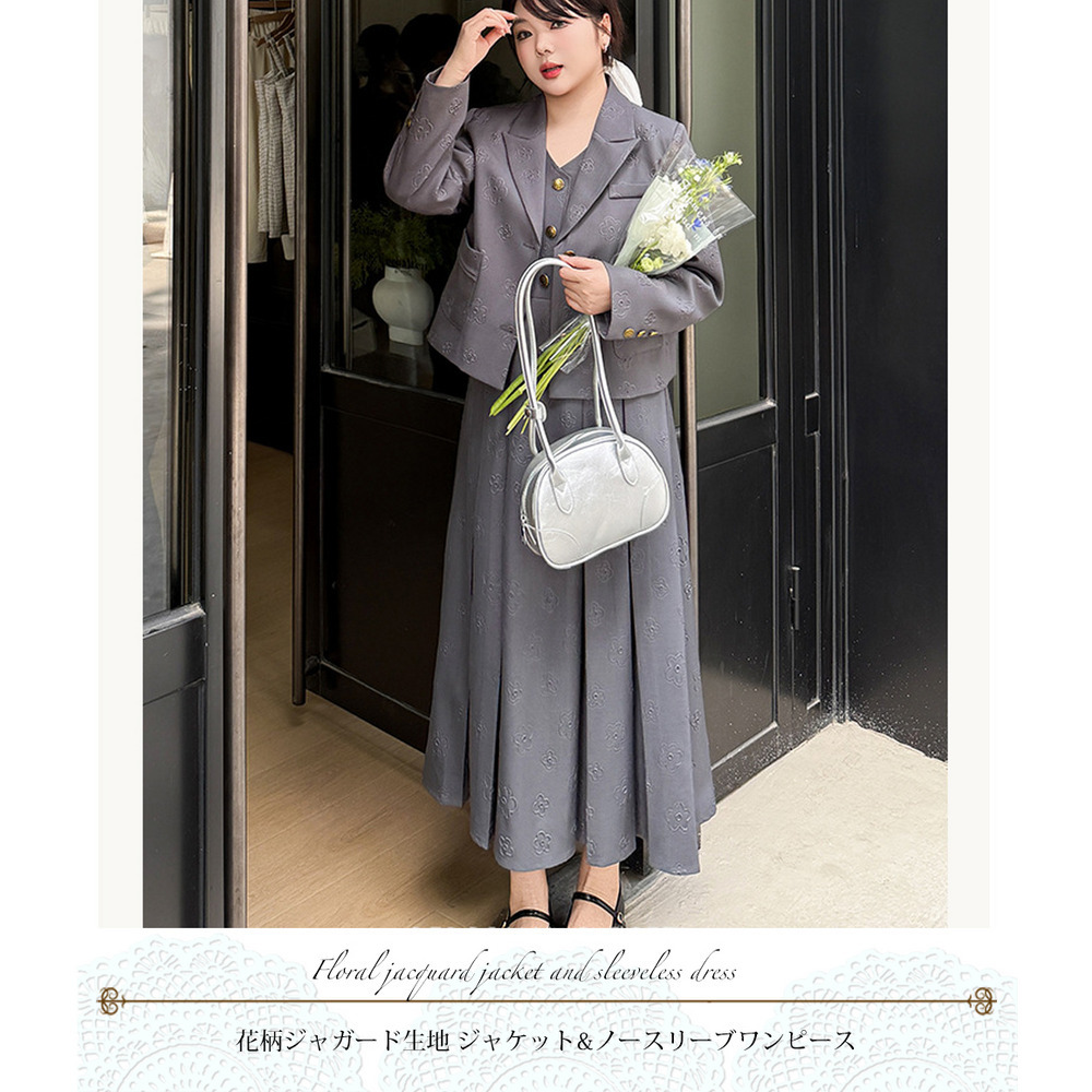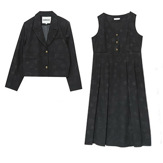「花柄ジャガード生地 ジャケット&ノースリーブワンピース」