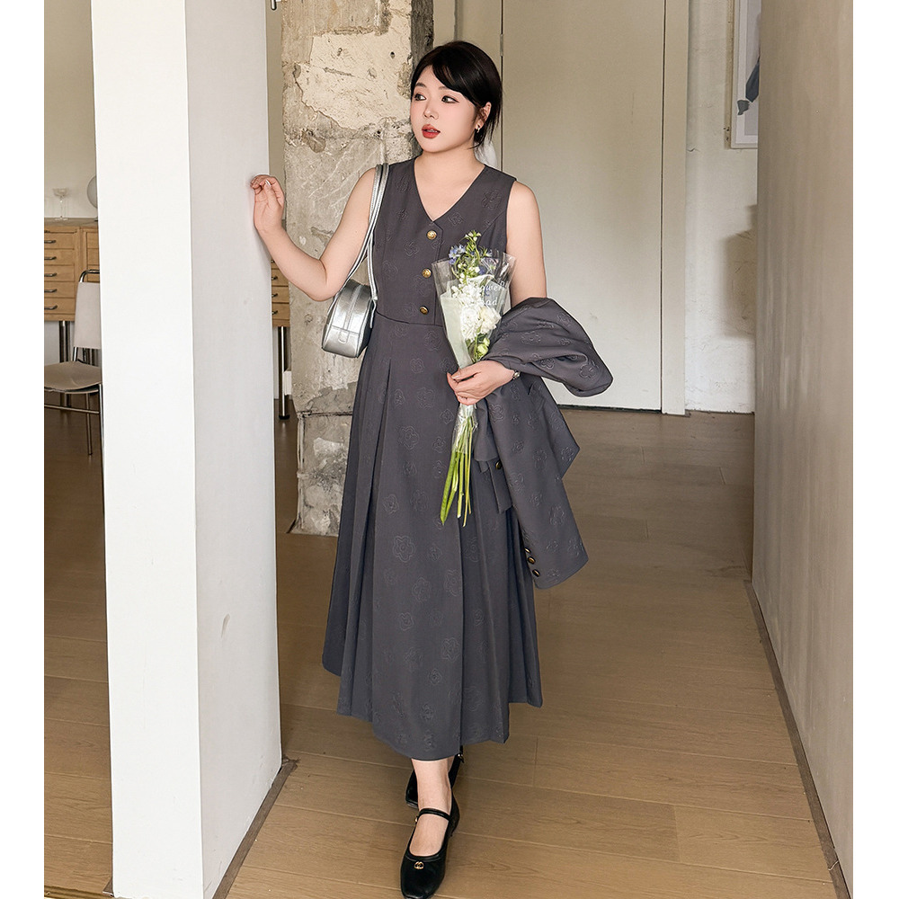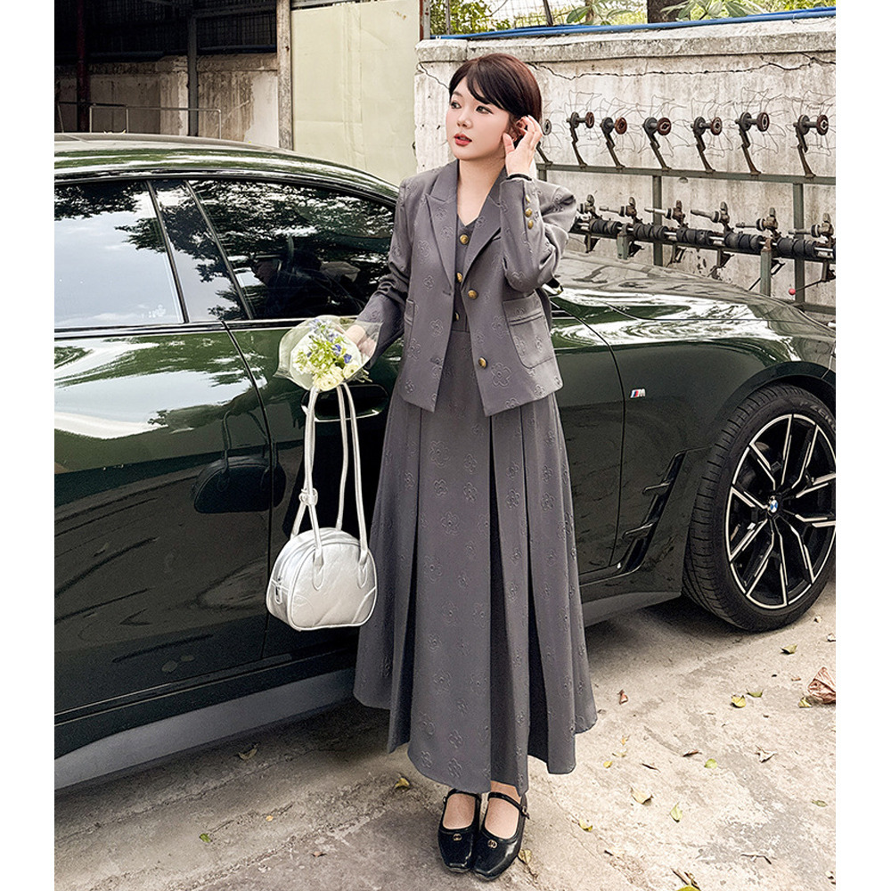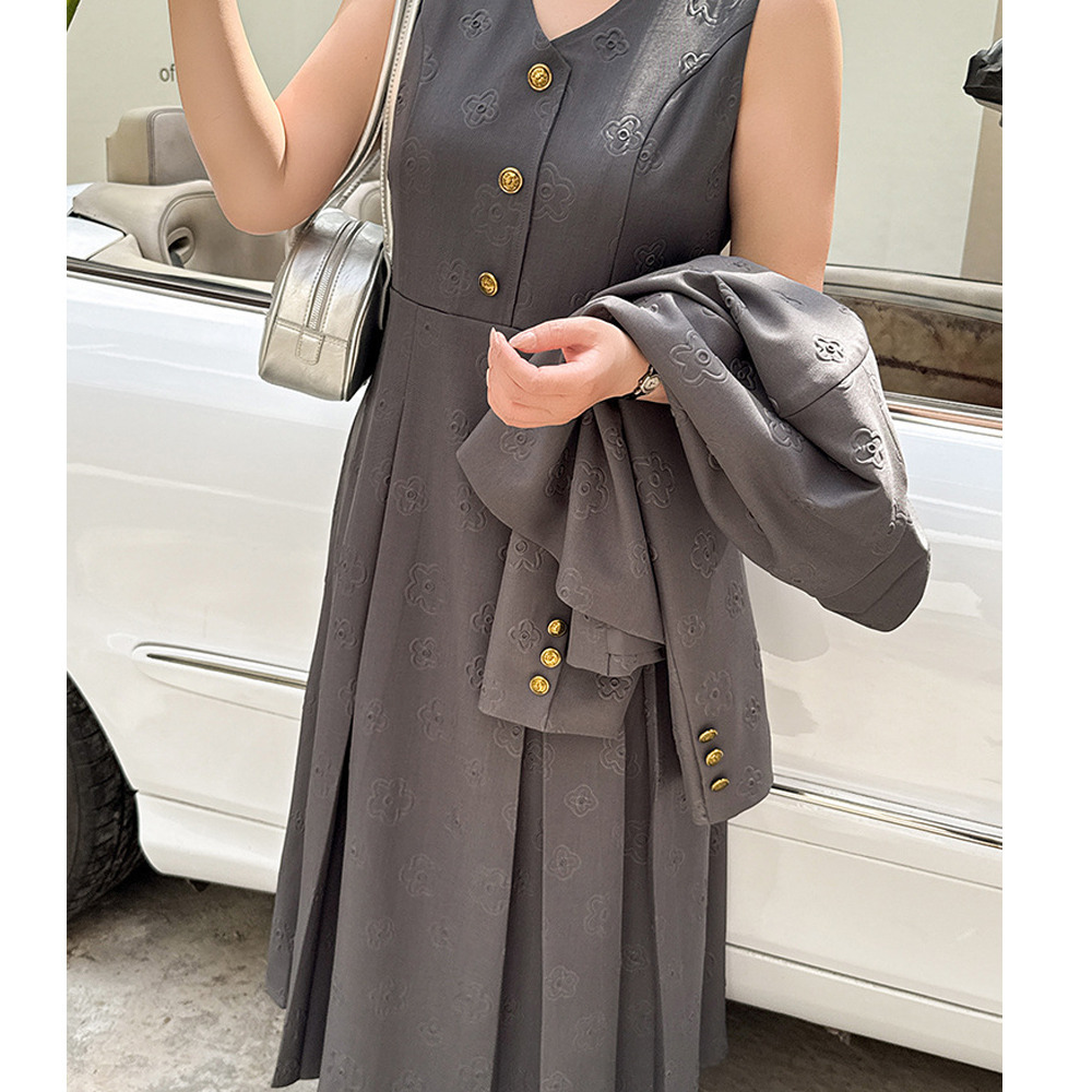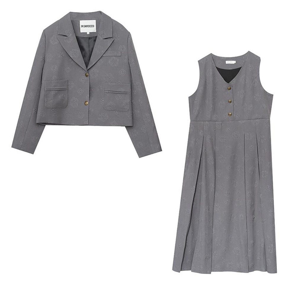 「花柄ジャガード生地 ジャケット&ノースリーブワンピース」
