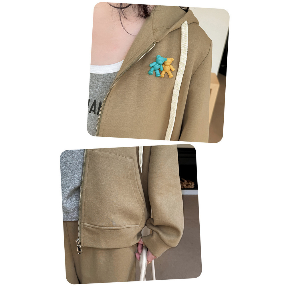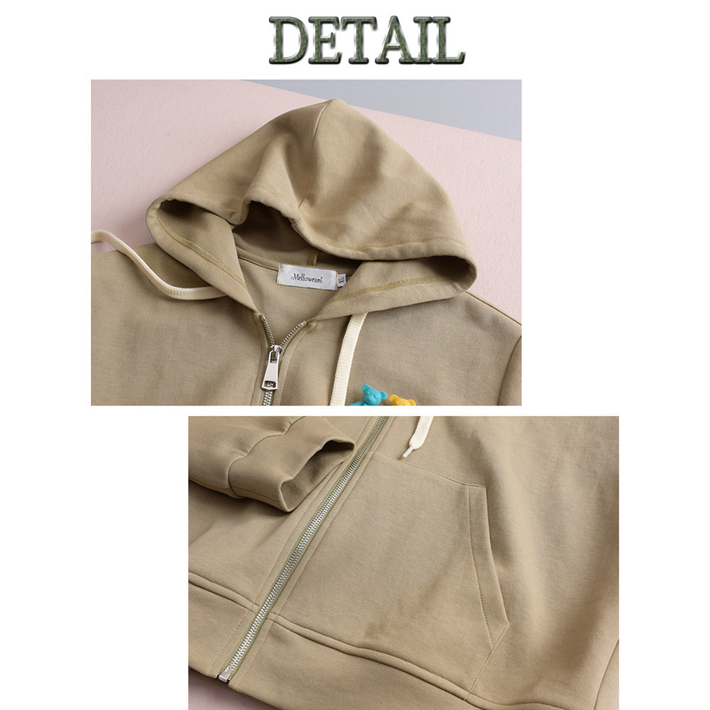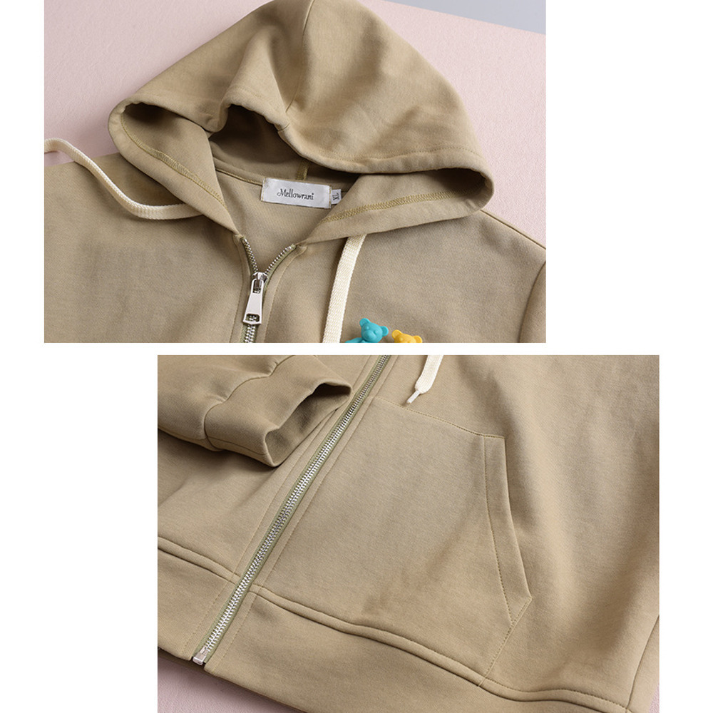 パーカーは胸に子熊モチーフ2個付き。(色はランダムなのでお選びいただけません)