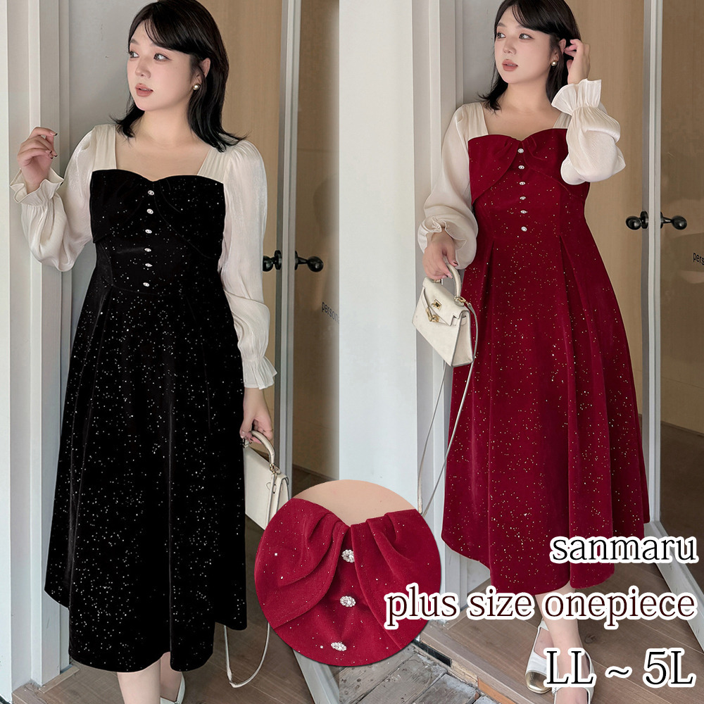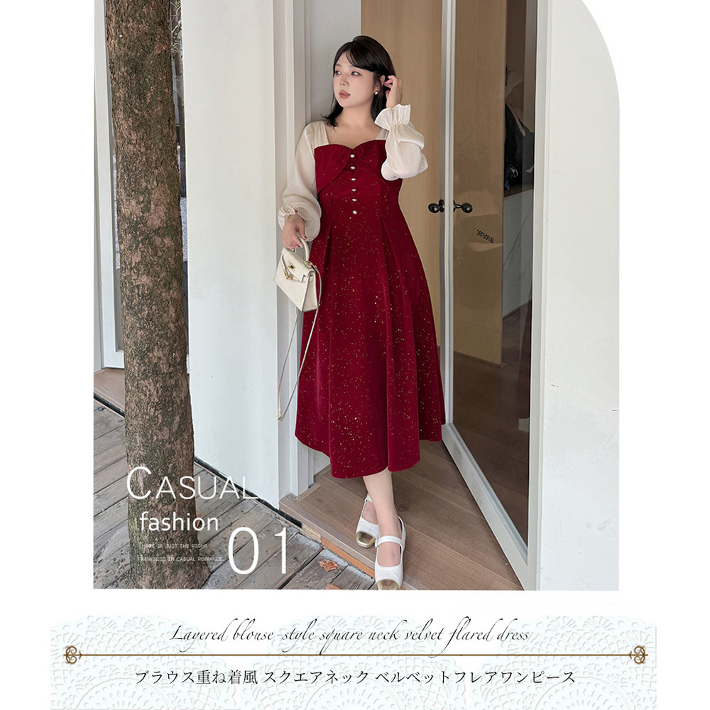 ◆大きいサイズのベルベットフレアワンピースの紹介