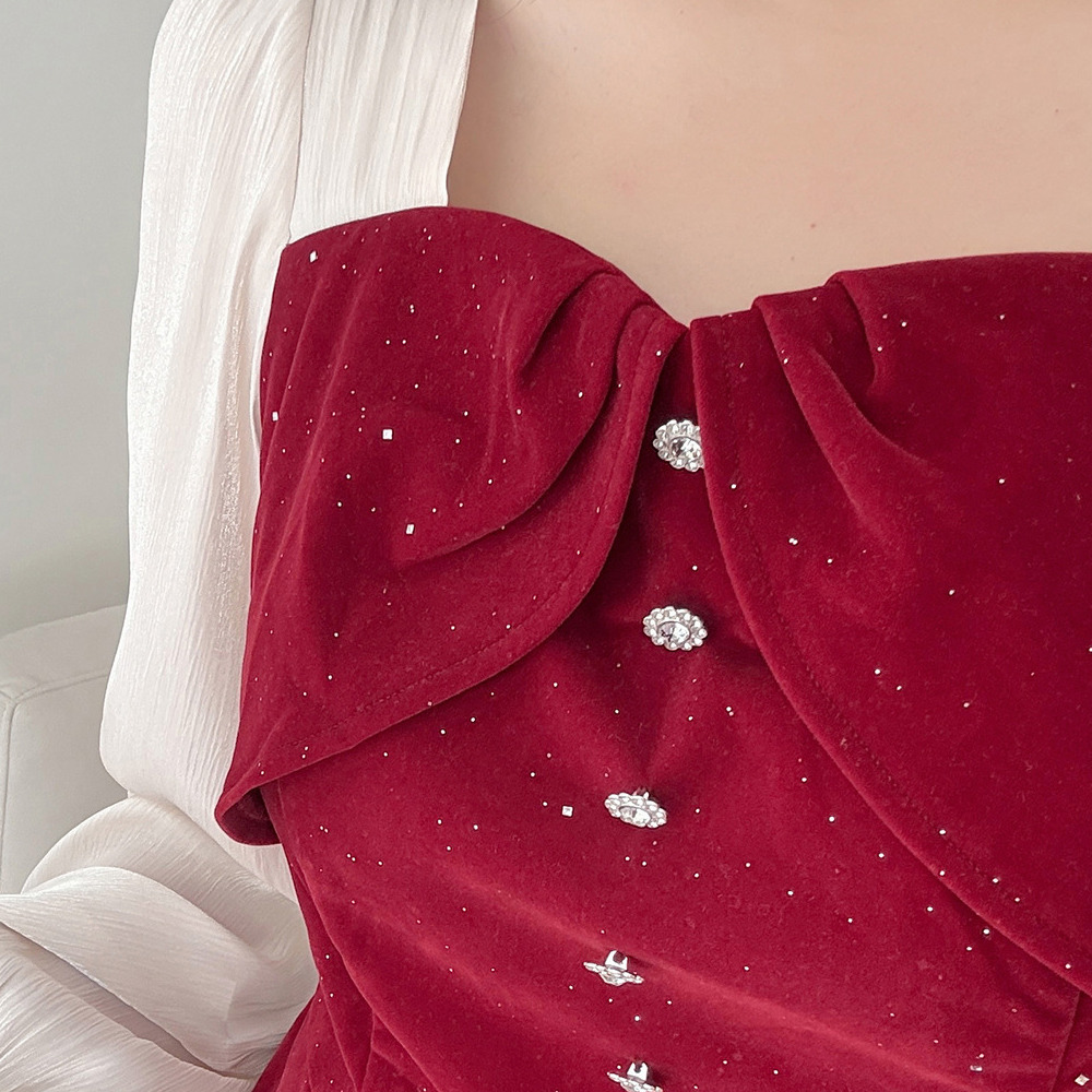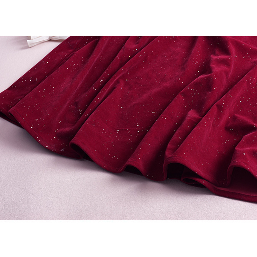 ビジューボタンにシルバーラメが煌めくベルベットフレアワンピース