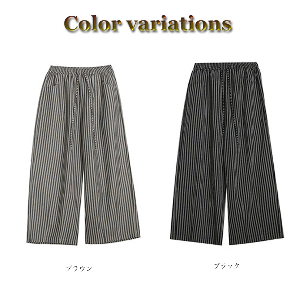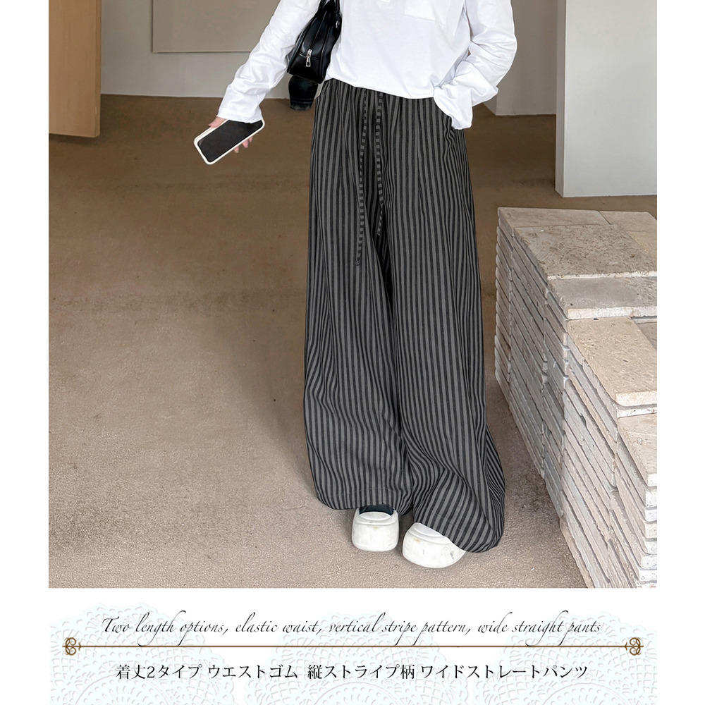 「着丈2タイプ 縦ストライプ柄ワイドパンツ」